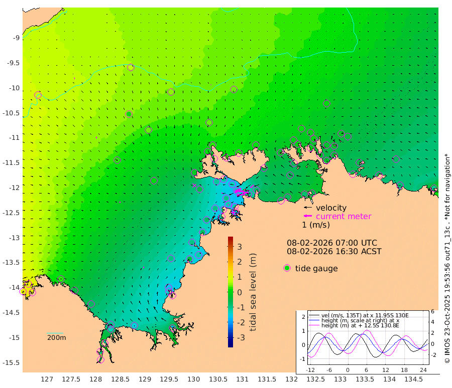 107cm/s -101T +4cm/s rms + 6cm/s 51T. Darwin_C1 52m 75cm/s -90T +4cm/s rms + 7cm/s -161T. Darwin_CW1 22m 72cm/s -106T +4cm/s rms + 8cm/s 61T. Darwin_CW2 34m 50cm/s -133T +3cm/s rms + 9cm/s 98T. Darwin_CW3 22m 118cm/s -91T +5cm/s rms + 7cm/s 88T. Darwin_C3 56m 59cm/s -115T +2cm/s rms + 9cm/s -126T. Darwin_CTbW 22m 2cm/s 135T +9cm/s rms + 2cm/s -110T. NWSLYN 196m 11cm/s -113T +1cm/s rms + 1cm/s -47T. DARBGF 30m 7cm/s 79T +7cm/s rms + 2cm/s -137T. ITFTIS 464m 9cm/s 106T +9cm/s rms + 1cm/s 74T. ITFMHB 146m 10cm/s 56T +4cm/s rms + 1cm/s -134T. ITFJBG 61m 16cm/s 95T +6cm/s rms + 4cm/s 121T. ITFFTB 108m 10cm/s -122T +4cm/s rms + 3cm/s 80T. NRSDAR 19m 109cm Carronade Island 110cm Guy Point 107cm Napier Broome Bay 29cm Lesueur Island -70cm Reveley Island -46cm Rocky Island -127cm Cape Domett -101cm Lacrosse Island -135cm Adolphus Island -94cm Pender Point -73cm Wyndham 28cm The Boxers 6cm Unnamed Shoal 68cm Loxton Shoal -155cm Pelican Island 44cm Calder Shoal 51cm Evans Shoal -186cm Quoin Island -137cm Port Keats -140cm Jones Point -160cm Catfish Island -93cm Cape Scott Offshore -43cm Cape Ford -113cm Anson Bay 35cm Goodrich Bank -91cm Peron Island North -77cm Point Jenny -77cm Native Point -90cm Fish Reef -102cm Tapa Bay -17cm Point Fawcett (Offshore) -104cm Burge Point -102cm Munkunuwa -47cm Beagle A -124cm Parsons Bank -94cm Fenton Patches 36cm Lynedoch Bank -120cm Hancox Shoal Area -116cm Nightcliff -138cm Darwin -115cm Charles Point Patches -96cm Glyde Point -80cm Chambers Bay -79cm Point Stuart -81cm Cape Hotham -63cm Christine Reef -85cm West Alligator Head -73cm East Field Island -69cm Two Hills Bay 1cm Newby Shoal -60cm Camp Point -105cm Medina Inlet South -15cm South Barlow Point 12cm St. Asaph Bay 32cm Cape Van Dieman 23cm Snake Bay 32cm Cache Point 89cm Echo Shoal 13cm Point Jahleel (Off) -29cm Cape Don -3cm Port Essington -2cm Smith Point - West -1cm NW Peacock Island 15cm North Of Jones Shoal 3cm Peacock Island -28cm Point David -7cm D'urville Point 3cm Money Shoal -30cm Copeland Island -34cm Cape Cockburn -24cm One Tree Point -35cm Hogmany Shoal -22cm New Year Island - West -28cm Grant Island -48cm Aurari Bay -64cm Cuthbert Point -46cm North Goulburn Island -71cm Paxie Shoal -85cm Entrance Island -103cm Yabooma Island
