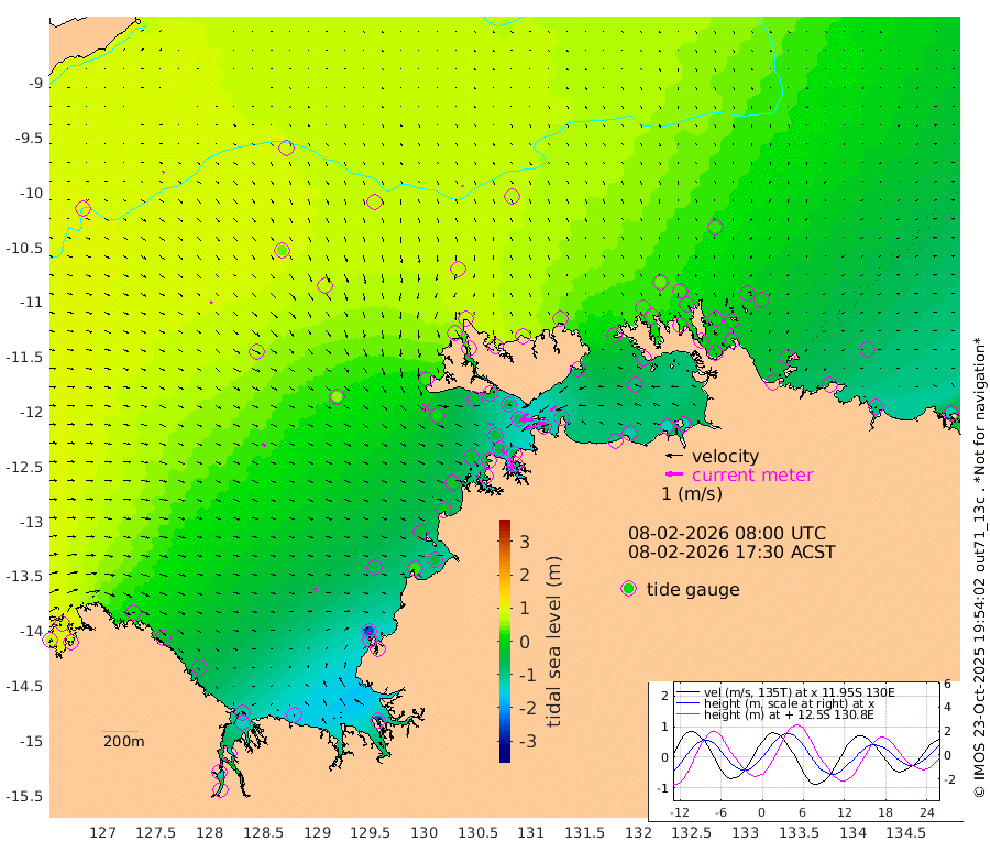 68cm/s -100T +4cm/s rms + 6cm/s 51T. Darwin_C1 52m 46cm/s -91T +4cm/s rms + 7cm/s -161T. Darwin_CW1 22m 39cm/s -106T +4cm/s rms + 8cm/s 61T. Darwin_CW2 34m 43cm/s -134T +3cm/s rms + 9cm/s 98T. Darwin_CW3 22m 82cm/s -91T +5cm/s rms + 7cm/s 88T. Darwin_C3 56m 34cm/s -116T +2cm/s rms + 9cm/s -126T. Darwin_CTbW 22m 4cm/s 133T +9cm/s rms + 2cm/s -110T. NWSLYN 196m 21cm/s 104T +1cm/s rms + 1cm/s -47T. DARBGF 30m 10cm/s 68T +7cm/s rms + 2cm/s -137T. ITFTIS 464m 13cm/s 113T +9cm/s rms + 1cm/s 74T. ITFMHB 146m 19cm/s 115T +4cm/s rms + 1cm/s -134T. ITFJBG 61m 29cm/s 110T +6cm/s rms + 4cm/s 121T. ITFFTB 108m 28cm/s 138T +4cm/s rms + 3cm/s 80T. NRSDAR 19m 75cm Carronade Island 75cm Guy Point 72cm Napier Broome Bay 21cm Lesueur Island -65cm Reveley Island -40cm Rocky Island -128cm Cape Domett -103cm Lacrosse Island -153cm Adolphus Island -155cm Pender Point -154cm Wyndham 58cm The Boxers 45cm Unnamed Shoal 89cm Loxton Shoal -147cm Pelican Island 78cm Calder Shoal 74cm Evans Shoal -225cm Quoin Island -98cm Port Keats -109cm Jones Point -248cm Catfish Island -47cm Cape Scott Offshore 32cm Cape Ford -56cm Anson Bay 69cm Goodrich Bank -38cm Peron Island North -19cm Point Jenny -17cm Native Point -33cm Fish Reef -40cm Tapa Bay 34cm Point Fawcett (Offshore) -43cm Burge Point -36cm Munkunuwa 11cm Beagle A -65cm Parsons Bank -34cm Fenton Patches 63cm Lynedoch Bank -69cm Hancox Shoal Area -56cm Nightcliff -78cm Darwin -52cm Charles Point Patches -77cm Glyde Point -103cm Chambers Bay -115cm Point Stuart -79cm Cape Hotham -82cm Christine Reef -130cm West Alligator Head -135cm East Field Island -83cm Two Hills Bay 49cm Newby Shoal -67cm Camp Point -42cm Medina Inlet South 42cm South Barlow Point 59cm St. Asaph Bay 69cm Cape Van Dieman 62cm Snake Bay 63cm Cache Point 97cm Echo Shoal 41cm Point Jahleel (Off) -8cm Cape Don 26cm Port Essington 28cm Smith Point - West 27cm NW Peacock Island 43cm North Of Jones Shoal 13cm Peacock Island -6cm Point David 22cm D'urville Point 26cm Money Shoal -11cm Copeland Island -10cm Cape Cockburn -2cm One Tree Point -19cm Hogmany Shoal -1cm New Year Island - West -8cm Grant Island -34cm Aurari Bay -58cm Cuthbert Point -31cm North Goulburn Island -71cm Paxie Shoal -90cm Entrance Island -124cm Yabooma Island