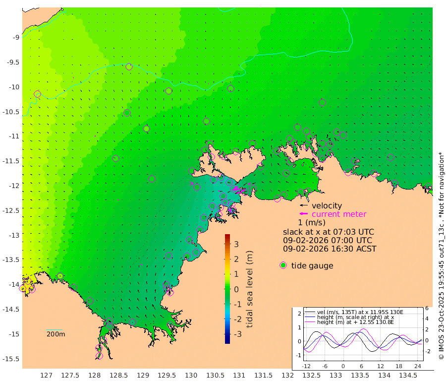 78cm/s -102T +4cm/s rms + 6cm/s 51T. Darwin_C1 52m 48cm/s -90T +4cm/s rms + 7cm/s -161T. Darwin_CW1 22m 61cm/s -107T +4cm/s rms + 8cm/s 61T. Darwin_CW2 34m 32cm/s -128T +3cm/s rms + 9cm/s 98T. Darwin_CW3 22m 89cm/s -91T +5cm/s rms + 7cm/s 88T. Darwin_C3 56m 46cm/s -115T +2cm/s rms + 9cm/s -126T. Darwin_CTbW 22m 2cm/s 108T +9cm/s rms + 2cm/s -110T. NWSLYN 196m 15cm/s -99T +1cm/s rms + 1cm/s -47T. DARBGF 30m 5cm/s 71T +7cm/s rms + 2cm/s -137T. ITFTIS 464m 7cm/s 98T +9cm/s rms + 1cm/s 74T. ITFMHB 146m 10cm/s 21T +4cm/s rms + 1cm/s -134T. ITFJBG 61m 9cm/s 74T +6cm/s rms + 4cm/s 121T. ITFFTB 108m 12cm/s -92T +4cm/s rms + 3cm/s 80T. NRSDAR 19m 112cm Carronade Island 114cm Guy Point 111cm Napier Broome Bay 53cm Lesueur Island -24cm Reveley Island -24cm Rocky Island -57cm Cape Domett -37cm Lacrosse Island -62cm Adolphus Island -15cm Pender Point 6cm Wyndham 28cm The Boxers 8cm Unnamed Shoal 53cm Loxton Shoal -83cm Pelican Island 37cm Calder Shoal 39cm Evans Shoal -88cm Quoin Island -82cm Port Keats -80cm Jones Point -50cm Catfish Island -58cm Cape Scott Offshore -12cm Cape Ford -76cm Anson Bay 23cm Goodrich Bank -58cm Peron Island North -51cm Point Jenny -52cm Native Point -58cm Fish Reef -69cm Tapa Bay -9cm Point Fawcett (Offshore) -67cm Burge Point -73cm Munkunuwa -29cm Beagle A -88cm Parsons Bank -61cm Fenton Patches 25cm Lynedoch Bank -82cm Hancox Shoal Area -79cm Nightcliff -94cm Darwin -78cm Charles Point Patches -53cm Glyde Point -30cm Chambers Bay -22cm Point Stuart -37cm Cape Hotham -21cm Christine Reef -23cm West Alligator Head -7cm East Field Island -26cm Two Hills Bay 7cm Newby Shoal -22cm Camp Point -72cm Medina Inlet South -16cm South Barlow Point 7cm St. Asaph Bay 20cm Cape Van Dieman 12cm Snake Bay 24cm Cache Point 73cm Echo Shoal 11cm Point Jahleel (Off) -16cm Cape Don -4cm Port Essington -5cm Smith Point - West -4cm NW Peacock Island 9cm North Of Jones Shoal 1cm Peacock Island -23cm Point David -11cm D'urville Point -2cm Money Shoal -25cm Copeland Island -27cm Cape Cockburn -20cm One Tree Point -24cm Hogmany Shoal -18cm New Year Island - West -23cm Grant Island -36cm Aurari Bay -46cm Cuthbert Point -35cm North Goulburn Island -46cm Paxie Shoal -57cm Entrance Island -67cm Yabooma Island