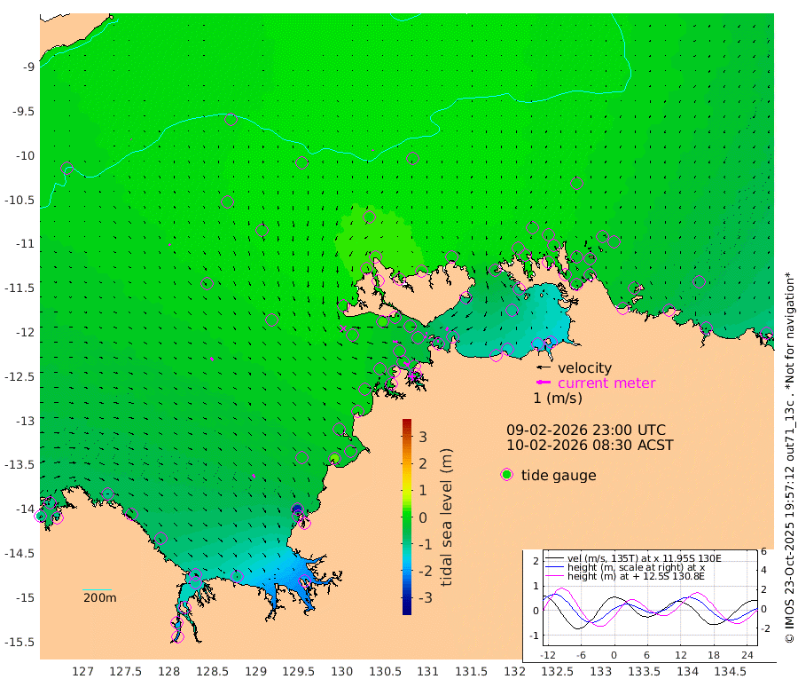 0cm/s 90T +4cm/s rms + 6cm/s 51T. Darwin_C1 52m 13cm/s -86T +4cm/s rms + 7cm/s -161T. Darwin_CW1 22m 15cm/s 68T +4cm/s rms + 8cm/s 61T. Darwin_CW2 34m 25cm/s -151T +3cm/s rms + 9cm/s 98T. Darwin_CW3 22m 8cm/s -67T +5cm/s rms + 7cm/s 88T. Darwin_C3 56m 8cm/s 56T +2cm/s rms + 9cm/s -126T. Darwin_CTbW 22m 6cm/s 173T +9cm/s rms + 2cm/s -110T. NWSLYN 196m 33cm/s 96T +1cm/s rms + 1cm/s -47T. DARBGF 30m 4cm/s 121T +7cm/s rms + 2cm/s -137T. ITFTIS 464m 11cm/s 166T +9cm/s rms + 1cm/s 74T. ITFMHB 146m 26cm/s 151T +4cm/s rms + 1cm/s -134T. ITFJBG 61m 25cm/s 136T +6cm/s rms + 4cm/s 121T. ITFFTB 108m 38cm/s 123T +4cm/s rms + 3cm/s 80T. NRSDAR 19m -96cm Carronade Island -92cm Guy Point -103cm Napier Broome Bay -91cm Lesueur Island -73cm Reveley Island -42cm Rocky Island -111cm Cape Domett -111cm Lacrosse Island -140cm Adolphus Island -184cm Pender Point -221cm Wyndham -11cm The Boxers -6cm Unnamed Shoal 4cm Loxton Shoal -91cm Pelican Island 3cm Calder Shoal 10cm Evans Shoal -188cm Quoin Island -50cm Port Keats -56cm Jones Point -285cm Catfish Island -18cm Cape Scott Offshore 37cm Cape Ford -9cm Anson Bay 19cm Goodrich Bank -13cm Peron Island North 3cm Point Jenny 8cm Native Point -9cm Fish Reef 5cm Tapa Bay 12cm Point Fawcett (Offshore) -10cm Burge Point 24cm Munkunuwa 1cm Beagle A -1cm Parsons Bank -10cm Fenton Patches 9cm Lynedoch Bank -11cm Hancox Shoal Area -11cm Nightcliff -17cm Darwin -6cm Charles Point Patches -61cm Glyde Point -113cm Chambers Bay -135cm Point Stuart -81cm Cape Hotham -101cm Christine Reef -151cm West Alligator Head -178cm East Field Island -97cm Two Hills Bay -18cm Newby Shoal -84cm Camp Point 2cm Medina Inlet South 29cm South Barlow Point 25cm St. Asaph Bay 23cm Cape Van Dieman 21cm Snake Bay 8cm Cache Point -12cm Echo Shoal 0cm Point Jahleel (Off) -27cm Cape Don -1cm Port Essington 3cm Smith Point - West -1cm NW Peacock Island -1cm North Of Jones Shoal -1cm Peacock Island -12cm Point David 1cm D'urville Point -7cm Money Shoal -14cm Copeland Island -30cm Cape Cockburn -17cm One Tree Point -26cm Hogmany Shoal -21cm New Year Island - West -19cm Grant Island -35cm Aurari Bay -49cm Cuthbert Point -32cm North Goulburn Island -59cm Paxie Shoal -65cm Entrance Island -90cm Yabooma Island