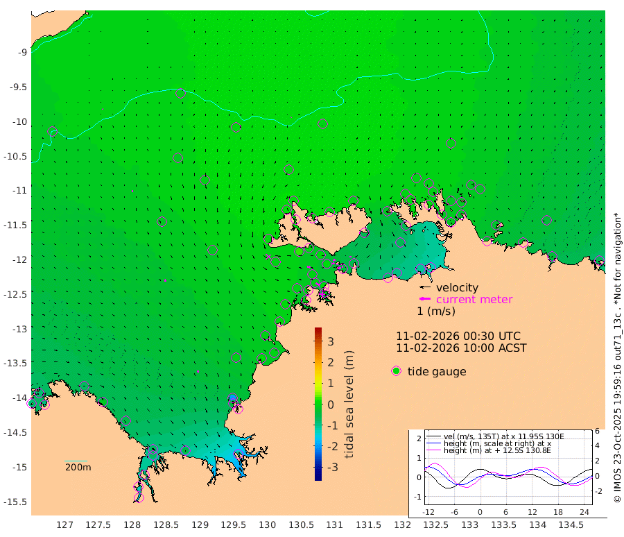 22cm/s 76T +4cm/s rms + 6cm/s 51T. Darwin_C1 52m 9cm/s -93T +4cm/s rms + 7cm/s -161T. Darwin_CW1 22m 25cm/s 71T +4cm/s rms + 8cm/s 61T. Darwin_CW2 34m 11cm/s -177T +3cm/s rms + 9cm/s 98T. Darwin_CW3 22m 14cm/s 77T +5cm/s rms + 7cm/s 88T. Darwin_C3 56m 20cm/s 62T +2cm/s rms + 9cm/s -126T. Darwin_CTbW 22m 4cm/s -173T +9cm/s rms + 2cm/s -110T. NWSLYN 196m 26cm/s 94T +1cm/s rms + 1cm/s -47T. DARBGF 30m 6cm/s 167T +7cm/s rms + 2cm/s -137T. ITFTIS 464m 14cm/s -178T +9cm/s rms + 1cm/s 74T. ITFMHB 146m 19cm/s 162T +4cm/s rms + 1cm/s -134T. ITFJBG 61m 19cm/s 150T +6cm/s rms + 4cm/s 121T. ITFFTB 108m 28cm/s 118T +4cm/s rms + 3cm/s 80T. NRSDAR 19m -86cm Carronade Island -80cm Guy Point -92cm Napier Broome Bay -79cm Lesueur Island -49cm Reveley Island -19cm Rocky Island -70cm Cape Domett -75cm Lacrosse Island -84cm Adolphus Island -126cm Pender Point -154cm Wyndham -19cm The Boxers -21cm Unnamed Shoal -7cm Loxton Shoal -51cm Pelican Island -7cm Calder Shoal 1cm Evans Shoal -114cm Quoin Island -28cm Port Keats -37cm Jones Point -196cm Catfish Island -8cm Cape Scott Offshore 11cm Cape Ford -1cm Anson Bay 6cm Goodrich Bank -5cm Peron Island North 5cm Point Jenny 8cm Native Point -6cm Fish Reef 8cm Tapa Bay 4cm Point Fawcett (Offshore) -6cm Burge Point 24cm Munkunuwa -2cm Beagle A 8cm Parsons Bank -5cm Fenton Patches -1cm Lynedoch Bank 2cm Hancox Shoal Area 1cm Nightcliff -6cm Darwin -1cm Charles Point Patches -42cm Glyde Point -77cm Chambers Bay -96cm Point Stuart -57cm Cape Hotham -66cm Christine Reef -105cm West Alligator Head -129cm East Field Island -67cm Two Hills Bay -20cm Newby Shoal -63cm Camp Point 5cm Medina Inlet South 18cm South Barlow Point 13cm St. Asaph Bay 8cm Cape Van Dieman 7cm Snake Bay -2cm Cache Point -21cm Echo Shoal -4cm Point Jahleel (Off) -21cm Cape Don -5cm Port Essington 1cm Smith Point - West -2cm NW Peacock Island -5cm North Of Jones Shoal -2cm Peacock Island -11cm Point David 0cm D'urville Point -11cm Money Shoal -12cm Copeland Island -24cm Cape Cockburn -15cm One Tree Point -21cm Hogmany Shoal -20cm New Year Island - West -15cm Grant Island -27cm Aurari Bay -32cm Cuthbert Point -24cm North Goulburn Island -44cm Paxie Shoal -43cm Entrance Island -59cm Yabooma Island