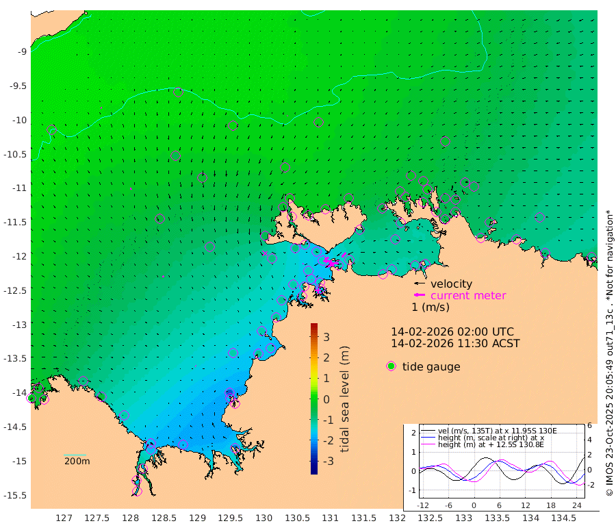 79cm/s -101T +4cm/s rms + 6cm/s 51T. Darwin_C1 52m 93cm/s -92T +4cm/s rms + 7cm/s -161T. Darwin_CW1 22m 37cm/s -104T +4cm/s rms + 8cm/s 61T. Darwin_CW2 34m 54cm/s -140T +3cm/s rms + 9cm/s 98T. Darwin_CW3 22m 74cm/s -89T +5cm/s rms + 7cm/s 88T. Darwin_C3 56m 41cm/s -115T +2cm/s rms + 9cm/s -126T. Darwin_CTbW 22m 4cm/s -130T +9cm/s rms + 2cm/s -110T. NWSLYN 196m 5cm/s -150T +1cm/s rms + 1cm/s -47T. DARBGF 30m 10cm/s 165T +7cm/s rms + 2cm/s -137T. ITFTIS 464m 15cm/s 177T +9cm/s rms + 1cm/s 74T. ITFMHB 146m 5cm/s 125T +4cm/s rms + 1cm/s -134T. ITFJBG 61m 13cm/s 146T +6cm/s rms + 4cm/s 121T. ITFFTB 108m 4cm/s 165T +4cm/s rms + 3cm/s 80T. NRSDAR 19m -25cm Carronade Island -22cm Guy Point -28cm Napier Broome Bay -92cm Lesueur Island -118cm Reveley Island -34cm Rocky Island -169cm Cape Domett -165cm Lacrosse Island -172cm Adolphus Island -162cm Pender Point -165cm Wyndham -42cm The Boxers -62cm Unnamed Shoal 4cm Loxton Shoal -177cm Pelican Island -23cm Calder Shoal 3cm Evans Shoal -218cm Quoin Island -163cm Port Keats -167cm Jones Point -245cm Catfish Island -122cm Cape Scott Offshore -105cm Cape Ford -135cm Anson Bay -9cm Goodrich Bank -113cm Peron Island North -105cm Point Jenny -104cm Native Point -118cm Fish Reef -123cm Tapa Bay -61cm Point Fawcett (Offshore) -130cm Burge Point -98cm Munkunuwa -94cm Beagle A -120cm Parsons Bank -127cm Fenton Patches -8cm Lynedoch Bank -127cm Hancox Shoal Area -135cm Nightcliff -150cm Darwin -139cm Charles Point Patches -128cm Glyde Point -124cm Chambers Bay -126cm Point Stuart -119cm Cape Hotham -103cm Christine Reef -133cm West Alligator Head -139cm East Field Island -106cm Two Hills Bay -71cm Newby Shoal -112cm Camp Point -119cm Medina Inlet South -42cm South Barlow Point -30cm St. Asaph Bay -11cm Cape Van Dieman -18cm Snake Bay -17cm Cache Point 7cm Echo Shoal -27cm Point Jahleel (Off) -59cm Cape Don -32cm Port Essington -26cm Smith Point - West -27cm NW Peacock Island -22cm North Of Jones Shoal -9cm Peacock Island -47cm Point David -28cm D'urville Point -33cm Money Shoal -47cm Copeland Island -61cm Cape Cockburn -47cm One Tree Point -62cm Hogmany Shoal -53cm New Year Island - West -50cm Grant Island -67cm Aurari Bay -72cm Cuthbert Point -63cm North Goulburn Island -91cm Paxie Shoal -88cm Entrance Island -104cm Yabooma Island