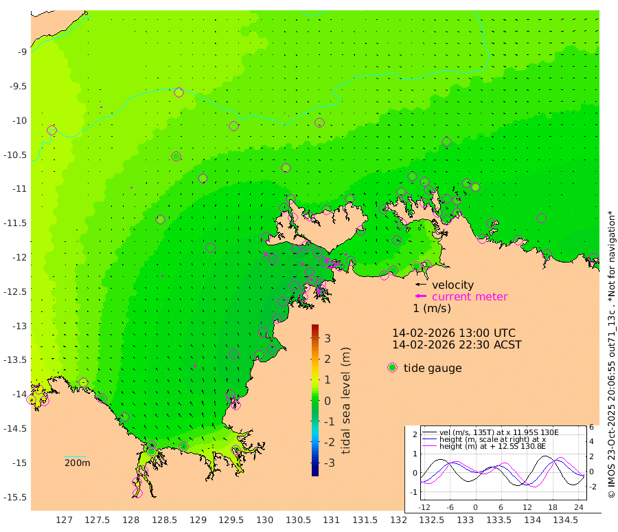 74cm/s -102T +4cm/s rms + 6cm/s 51T. Darwin_C1 52m 56cm/s -89T +4cm/s rms + 7cm/s -161T. Darwin_CW1 22m 31cm/s -110T +4cm/s rms + 8cm/s 61T. Darwin_CW2 34m 26cm/s -130T +3cm/s rms + 9cm/s 98T. Darwin_CW3 22m 24cm/s -92T +5cm/s rms + 7cm/s 88T. Darwin_C3 56m 49cm/s -114T +2cm/s rms + 9cm/s -126T. Darwin_CTbW 22m 4cm/s 114T +9cm/s rms + 2cm/s -110T. NWSLYN 196m 28cm/s -86T +1cm/s rms + 1cm/s -47T. DARBGF 30m 6cm/s 4T +7cm/s rms + 2cm/s -137T. ITFTIS 464m 12cm/s 7T +9cm/s rms + 1cm/s 74T. ITFMHB 146m 23cm/s -24T +4cm/s rms + 1cm/s -134T. ITFJBG 61m 18cm/s -29T +6cm/s rms + 4cm/s 121T. ITFFTB 108m 29cm/s -61T +4cm/s rms + 3cm/s 80T. NRSDAR 19m 84cm Carronade Island 88cm Guy Point 91cm Napier Broome Bay 61cm Lesueur Island 25cm Reveley Island 21cm Rocky Island 22cm Cape Domett 17cm Lacrosse Island 34cm Adolphus Island 83cm Pender Point 95cm Wyndham 38cm The Boxers 28cm Unnamed Shoal 59cm Loxton Shoal 0cm Pelican Island 38cm Calder Shoal 43cm Evans Shoal 30cm Quoin Island -19cm Port Keats -15cm Jones Point 5cm Catfish Island -24cm Cape Scott Offshore 17cm Cape Ford -38cm Anson Bay 35cm Goodrich Bank -21cm Peron Island North -31cm Point Jenny -28cm Native Point -33cm Fish Reef -32cm Tapa Bay -3cm Point Fawcett (Offshore) -31cm Burge Point -37cm Munkunuwa -25cm Beagle A -31cm Parsons Bank -36cm Fenton Patches 39cm Lynedoch Bank -30cm Hancox Shoal Area -46cm Nightcliff -28cm Darwin -21cm Charles Point Patches -6cm Glyde Point 11cm Chambers Bay 18cm Point Stuart 2cm Cape Hotham 11cm Christine Reef 19cm West Alligator Head 31cm East Field Island 14cm Two Hills Bay 13cm Newby Shoal 16cm Camp Point -30cm Medina Inlet South 3cm South Barlow Point 11cm St. Asaph Bay 31cm Cape Van Dieman 32cm Snake Bay 31cm Cache Point 60cm Echo Shoal 26cm Point Jahleel (Off) 15cm Cape Don 25cm Port Essington 20cm Smith Point - West 25cm NW Peacock Island 25cm North Of Jones Shoal 8cm Peacock Island 23cm Point David 20cm D'urville Point 28cm Money Shoal 19cm Copeland Island 24cm Cape Cockburn 22cm One Tree Point 39cm Hogmany Shoal 25cm New Year Island - West 27cm Grant Island 8cm Aurari Bay 15cm Cuthbert Point 18cm North Goulburn Island 16cm Paxie Shoal 16cm Entrance Island 6cm Yabooma Island