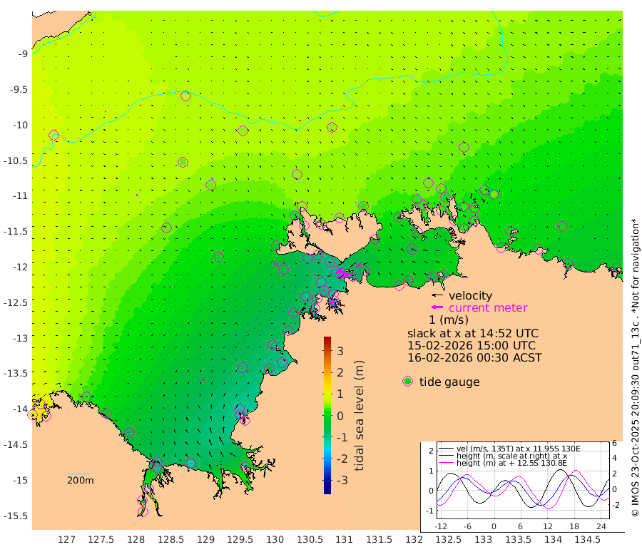 97cm/s -101T +4cm/s rms + 6cm/s 51T. Darwin_C1 52m 96cm/s -91T +4cm/s rms + 7cm/s -161T. Darwin_CW1 22m 51cm/s -107T +4cm/s rms + 8cm/s 61T. Darwin_CW2 34m 51cm/s -136T +3cm/s rms + 9cm/s 98T. Darwin_CW3 22m 74cm/s -92T +5cm/s rms + 7cm/s 88T. Darwin_C3 56m 52cm/s -115T +2cm/s rms + 9cm/s -126T. Darwin_CTbW 22m 8cm/s 147T +9cm/s rms + 2cm/s -110T. NWSLYN 196m 15cm/s -100T +1cm/s rms + 1cm/s -47T. DARBGF 30m 6cm/s 35T +7cm/s rms + 2cm/s -137T. ITFTIS 464m 9cm/s 37T +9cm/s rms + 1cm/s 74T. ITFMHB 146m 15cm/s 4T +4cm/s rms + 1cm/s -134T. ITFJBG 61m 8cm/s 38T +6cm/s rms + 4cm/s 121T. ITFFTB 108m 15cm/s -77T +4cm/s rms + 3cm/s 80T. NRSDAR 19m 88cm Carronade Island 90cm Guy Point 95cm Napier Broome Bay 27cm Lesueur Island -46cm Reveley Island -22cm Rocky Island -95cm Cape Domett -86cm Lacrosse Island -102cm Adolphus Island -50cm Pender Point -35cm Wyndham 39cm The Boxers 37cm Unnamed Shoal 71cm Loxton Shoal -114cm Pelican Island 42cm Calder Shoal 56cm Evans Shoal -137cm Quoin Island -116cm Port Keats -109cm Jones Point -107cm Catfish Island -76cm Cape Scott Offshore -45cm Cape Ford -91cm Anson Bay 48cm Goodrich Bank -69cm Peron Island North -68cm Point Jenny -65cm Native Point -81cm Fish Reef -82cm Tapa Bay -11cm Point Fawcett (Offshore) -94cm Burge Point -85cm Munkunuwa -56cm Beagle A -90cm Parsons Bank -93cm Fenton Patches 51cm Lynedoch Bank -90cm Hancox Shoal Area -107cm Nightcliff -103cm Darwin -84cm Charles Point Patches -68cm Glyde Point -55cm Chambers Bay -48cm Point Stuart -56cm Cape Hotham -45cm Christine Reef -56cm West Alligator Head -50cm East Field Island -37cm Two Hills Bay -3cm Newby Shoal -37cm Camp Point -84cm Medina Inlet South -2cm South Barlow Point 14cm St. Asaph Bay 46cm Cape Van Dieman 45cm Snake Bay 45cm Cache Point 76cm Echo Shoal 30cm Point Jahleel (Off) 2cm Cape Don 30cm Port Essington 28cm Smith Point - West 34cm NW Peacock Island 36cm North Of Jones Shoal 12cm Peacock Island 28cm Point David 30cm D'urville Point 37cm Money Shoal 24cm Copeland Island 27cm Cape Cockburn 25cm One Tree Point 43cm Hogmany Shoal 29cm New Year Island - West 29cm Grant Island 6cm Aurari Bay 8cm Cuthbert Point 14cm North Goulburn Island 1cm Paxie Shoal -5cm Entrance Island -24cm Yabooma Island