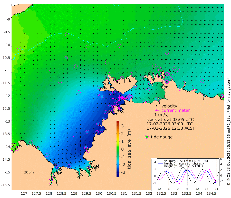 189cm/s -102T +4cm/s rms + 6cm/s 51T. Darwin_C1 52m 146cm/s -90T +4cm/s rms + 7cm/s -161T. Darwin_CW1 22m 105cm/s -107T +4cm/s rms + 8cm/s 61T. Darwin_CW2 34m 95cm/s -135T +3cm/s rms + 9cm/s 98T. Darwin_CW3 22m 153cm/s -90T +5cm/s rms + 7cm/s 88T. Darwin_C3 56m 109cm/s -115T +2cm/s rms + 9cm/s -126T. Darwin_CTbW 22m 5cm/s -98T +9cm/s rms + 2cm/s -110T. NWSLYN 196m 40cm/s -98T +1cm/s rms + 1cm/s -47T. DARBGF 30m 10cm/s 163T +7cm/s rms + 2cm/s -137T. ITFTIS 464m 8cm/s 165T +9cm/s rms + 1cm/s 74T. ITFMHB 146m 15cm/s 0T +4cm/s rms + 1cm/s -134T. ITFJBG 61m 2cm/s 83T +6cm/s rms + 4cm/s 121T. ITFFTB 108m 31cm/s -74T +4cm/s rms + 3cm/s 80T. NRSDAR 19m 38cm Carronade Island 36cm Guy Point 35cm Napier Broome Bay -82cm Lesueur Island -175cm Reveley Island -70cm Rocky Island -252cm Cape Domett -229cm Lacrosse Island -243cm Adolphus Island -170cm Pender Point -141cm Wyndham -63cm The Boxers -85cm Unnamed Shoal 14cm Loxton Shoal -281cm Pelican Island -40cm Calder Shoal 2cm Evans Shoal -275cm Quoin Island -291cm Port Keats -279cm Jones Point -207cm Catfish Island -225cm Cape Scott Offshore -248cm Cape Ford -257cm Anson Bay -27cm Goodrich Bank -216cm Peron Island North -226cm Point Jenny -227cm Native Point -232cm Fish Reef -256cm Tapa Bay -126cm Point Fawcett (Offshore) -266cm Burge Point -229cm Munkunuwa -197cm Beagle A -256cm Parsons Bank -258cm Fenton Patches -14cm Lynedoch Bank -258cm Hancox Shoal Area -273cm Nightcliff -289cm Darwin -272cm Charles Point Patches -205cm Glyde Point -153cm Chambers Bay -133cm Point Stuart -165cm Cape Hotham -140cm Christine Reef -136cm West Alligator Head -118cm East Field Island -128cm Two Hills Bay -139cm Newby Shoal -145cm Camp Point -245cm Medina Inlet South -109cm South Barlow Point -77cm St. Asaph Bay -32cm Cape Van Dieman -40cm Snake Bay -35cm Cache Point 40cm Echo Shoal -49cm Point Jahleel (Off) -97cm Cape Don -59cm Port Essington -57cm Smith Point - West -53cm NW Peacock Island -37cm North Of Jones Shoal -15cm Peacock Island -74cm Point David -60cm D'urville Point -53cm Money Shoal -75cm Copeland Island -92cm Cape Cockburn -71cm One Tree Point -92cm Hogmany Shoal -76cm New Year Island - West -79cm Grant Island -92cm Aurari Bay -106cm Cuthbert Point -93cm North Goulburn Island -120cm Paxie Shoal -125cm Entrance Island -134cm Yabooma Island