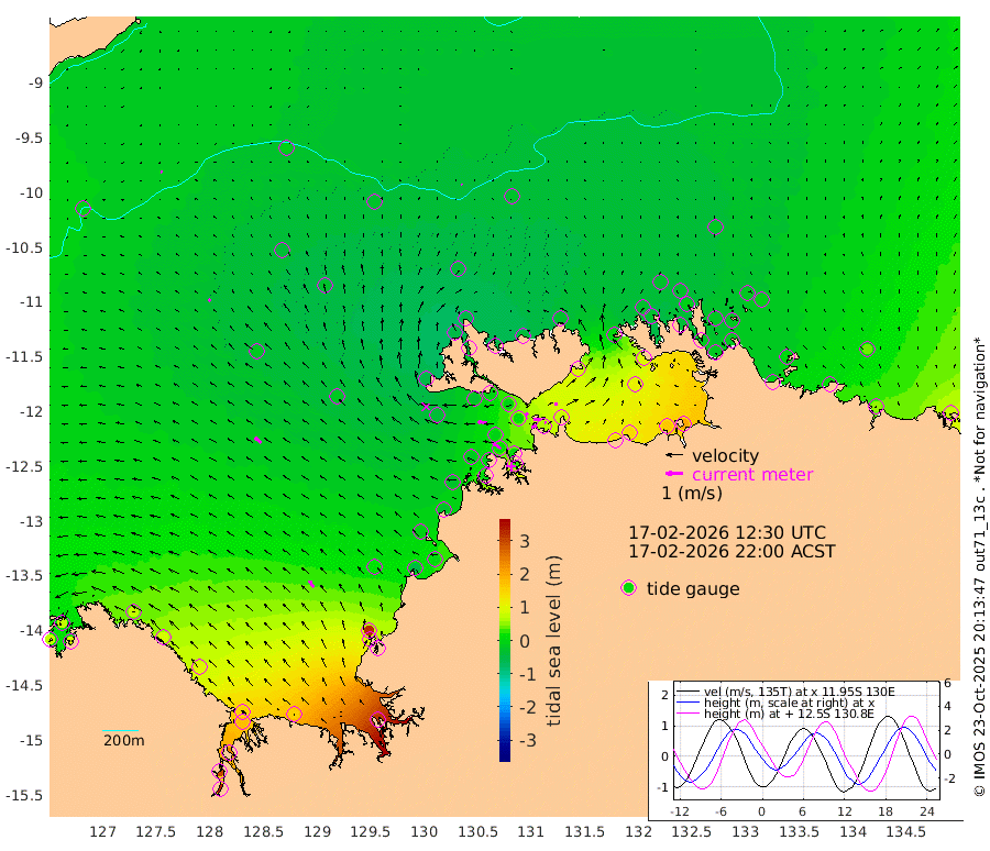 31cm/s -103T +4cm/s rms + 6cm/s 51T. Darwin_C1 52m 9cm/s 75T +4cm/s rms + 7cm/s -161T. Darwin_CW1 22m 3cm/s -165T +4cm/s rms + 8cm/s 61T. Darwin_CW2 34m 16cm/s 17T +3cm/s rms + 9cm/s 98T. Darwin_CW3 22m 37cm/s 94T +5cm/s rms + 7cm/s 88T. Darwin_C3 56m 23cm/s -120T +2cm/s rms + 9cm/s -126T. Darwin_CTbW 22m 6cm/s -11T +9cm/s rms + 2cm/s -110T. NWSLYN 196m 54cm/s -83T +1cm/s rms + 1cm/s -47T. DARBGF 30m 7cm/s -71T +7cm/s rms + 2cm/s -137T. ITFTIS 464m 18cm/s -26T +9cm/s rms + 1cm/s 74T. ITFMHB 146m 46cm/s -34T +4cm/s rms + 1cm/s -134T. ITFJBG 61m 46cm/s -50T +6cm/s rms + 4cm/s 121T. ITFFTB 108m 60cm/s -52T +4cm/s rms + 3cm/s 80T. NRSDAR 19m 70cm Carronade Island 77cm Guy Point 83cm Napier Broome Bay 78cm Lesueur Island 100cm Reveley Island 84cm Rocky Island 177cm Cape Domett 149cm Lacrosse Island 237cm Adolphus Island 303cm Pender Point 331cm Wyndham -12cm The Boxers -43cm Unnamed Shoal -10cm Loxton Shoal 153cm Pelican Island -29cm Calder Shoal -27cm Evans Shoal 314cm Quoin Island 86cm Port Keats 82cm Jones Point 318cm Catfish Island 15cm Cape Scott Offshore -51cm Cape Ford 3cm Anson Bay -41cm Goodrich Bank -5cm Peron Island North -26cm Point Jenny -28cm Native Point -15cm Fish Reef -15cm Tapa Bay -48cm Point Fawcett (Offshore) 1cm Burge Point -29cm Munkunuwa -37cm Beagle A -1cm Parsons Bank -7cm Fenton Patches -25cm Lynedoch Bank 14cm Hancox Shoal Area 3cm Nightcliff 27cm Darwin 11cm Charles Point Patches 64cm Glyde Point 129cm Chambers Bay 141cm Point Stuart 75cm Cape Hotham 111cm Christine Reef 162cm West Alligator Head 196cm East Field Island 93cm Two Hills Bay -20cm Newby Shoal 93cm Camp Point -7cm Medina Inlet South -54cm South Barlow Point -54cm St. Asaph Bay -50cm Cape Van Dieman -47cm Snake Bay -41cm Cache Point -3cm Echo Shoal -27cm Point Jahleel (Off) 7cm Cape Don -24cm Port Essington -33cm Smith Point - West -30cm NW Peacock Island -29cm North Of Jones Shoal -11cm Peacock Island -20cm Point David -34cm D'urville Point -19cm Money Shoal -18cm Copeland Island -18cm Cape Cockburn -14cm One Tree Point -9cm Hogmany Shoal -13cm New Year Island - West -12cm Grant Island -3cm Aurari Bay 21cm Cuthbert Point 0cm North Goulburn Island 40cm Paxie Shoal 48cm Entrance Island 74cm Yabooma Island