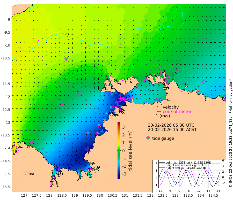 175cm/s -101T +4cm/s rms + 6cm/s 51T. Darwin_C1 52m 132cm/s -91T +4cm/s rms + 7cm/s -161T. Darwin_CW1 22m 103cm/s -106T +4cm/s rms + 8cm/s 61T. Darwin_CW2 34m 97cm/s -135T +3cm/s rms + 9cm/s 98T. Darwin_CW3 22m 172cm/s -91T +5cm/s rms + 7cm/s 88T. Darwin_C3 56m 93cm/s -115T +2cm/s rms + 9cm/s -126T. Darwin_CTbW 22m 4cm/s -174T +9cm/s rms + 2cm/s -110T. NWSLYN 196m 10cm/s -152T +1cm/s rms + 1cm/s -47T. DARBGF 30m 10cm/s 108T +7cm/s rms + 2cm/s -137T. ITFTIS 464m 15cm/s 128T +9cm/s rms + 1cm/s 74T. ITFMHB 146m 17cm/s 86T +4cm/s rms + 1cm/s -134T. ITFJBG 61m 29cm/s 111T +6cm/s rms + 4cm/s 121T. ITFFTB 108m 14cm/s -174T +4cm/s rms + 3cm/s 80T. NRSDAR 19m 85cm Carronade Island 79cm Guy Point 83cm Napier Broome Bay -35cm Lesueur Island -184cm Reveley Island -81cm Rocky Island -294cm Cape Domett -252cm Lacrosse Island -315cm Adolphus Island -264cm Pender Point -241cm Wyndham 12cm The Boxers -2cm Unnamed Shoal 82cm Loxton Shoal -320cm Pelican Island 36cm Calder Shoal 64cm Evans Shoal -386cm Quoin Island -296cm Port Keats -283cm Jones Point -278cm Catfish Island -191cm Cape Scott Offshore -170cm Cape Ford -220cm Anson Bay 41cm Goodrich Bank -178cm Peron Island North -177cm Point Jenny -175cm Native Point -185cm Fish Reef -213cm Tapa Bay -53cm Point Fawcett (Offshore) -235cm Burge Point -196cm Munkunuwa -131cm Beagle A -240cm Parsons Bank -215cm Fenton Patches 46cm Lynedoch Bank -243cm Hancox Shoal Area -247cm Nightcliff -270cm Darwin -233cm Charles Point Patches -205cm Glyde Point -189cm Chambers Bay -179cm Point Stuart -177cm Cape Hotham -172cm Christine Reef -194cm West Alligator Head -186cm East Field Island -150cm Two Hills Bay -63cm Newby Shoal -156cm Camp Point -208cm Medina Inlet South -41cm South Barlow Point -2cm St. Asaph Bay 38cm Cape Van Dieman 29cm Snake Bay 34cm Cache Point 111cm Echo Shoal 4cm Point Jahleel (Off) -69cm Cape Don -13cm Port Essington -10cm Smith Point - West -9cm NW Peacock Island 16cm North Of Jones Shoal 3cm Peacock Island -47cm Point David -16cm D'urville Point -10cm Money Shoal -52cm Copeland Island -64cm Cape Cockburn -42cm One Tree Point -67cm Hogmany Shoal -43cm New Year Island - West -53cm Grant Island -77cm Aurari Bay -111cm Cuthbert Point -82cm North Goulburn Island -133cm Paxie Shoal -156cm Entrance Island -192cm Yabooma Island