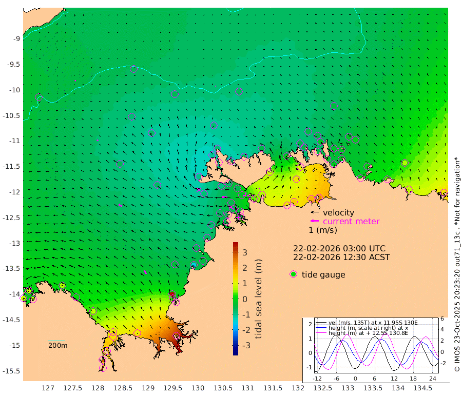 24cm/s -105T +4cm/s rms + 6cm/s 51T. Darwin_C1 52m 13cm/s -81T +4cm/s rms + 7cm/s -161T. Darwin_CW1 22m 35cm/s -108T +4cm/s rms + 8cm/s 61T. Darwin_CW2 34m 14cm/s 19T +3cm/s rms + 9cm/s 98T. Darwin_CW3 22m 24cm/s -99T +5cm/s rms + 7cm/s 88T. Darwin_C3 56m 15cm/s -120T +2cm/s rms + 9cm/s -126T. Darwin_CTbW 22m 7cm/s -24T +9cm/s rms + 2cm/s -110T. NWSLYN 196m 71cm/s -87T +1cm/s rms + 1cm/s -47T. DARBGF 30m 11cm/s -117T +7cm/s rms + 2cm/s -137T. ITFTIS 464m 15cm/s -46T +9cm/s rms + 1cm/s 74T. ITFMHB 146m 48cm/s -33T +4cm/s rms + 1cm/s -134T. ITFJBG 61m 48cm/s -53T +6cm/s rms + 4cm/s 121T. ITFFTB 108m 80cm/s -56T +4cm/s rms + 3cm/s 80T. NRSDAR 19m 79cm Carronade Island 90cm Guy Point 77cm Napier Broome Bay 66cm Lesueur Island 69cm Reveley Island 16cm Rocky Island 129cm Cape Domett 117cm Lacrosse Island 204cm Adolphus Island 272cm Pender Point 325cm Wyndham -60cm The Boxers -86cm Unnamed Shoal -56cm Loxton Shoal 116cm Pelican Island -78cm Calder Shoal -64cm Evans Shoal 279cm Quoin Island 28cm Port Keats 24cm Jones Point 342cm Catfish Island -35cm Cape Scott Offshore -155cm Cape Ford -51cm Anson Bay -80cm Goodrich Bank -62cm Peron Island North -75cm Point Jenny -80cm Native Point -79cm Fish Reef -69cm Tapa Bay -101cm Point Fawcett (Offshore) -68cm Burge Point -100cm Munkunuwa -88cm Beagle A -61cm Parsons Bank -61cm Fenton Patches -63cm Lynedoch Bank -27cm Hancox Shoal Area -41cm Nightcliff -44cm Darwin -62cm Charles Point Patches 35cm Glyde Point 140cm Chambers Bay 158cm Point Stuart 67cm Cape Hotham 129cm Christine Reef 185cm West Alligator Head 231cm East Field Island 95cm Two Hills Bay -74cm Newby Shoal 88cm Camp Point -80cm Medina Inlet South -112cm South Barlow Point -101cm St. Asaph Bay -89cm Cape Van Dieman -91cm Snake Bay -73cm Cache Point -33cm Echo Shoal -54cm Point Jahleel (Off) -16cm Cape Don -53cm Port Essington -52cm Smith Point - West -46cm NW Peacock Island -53cm North Of Jones Shoal -18cm Peacock Island -22cm Point David -49cm D'urville Point -37cm Money Shoal -15cm Copeland Island -21cm Cape Cockburn -25cm One Tree Point -1cm Hogmany Shoal -18cm New Year Island - West -16cm Grant Island 11cm Aurari Bay 39cm Cuthbert Point 4cm North Goulburn Island 57cm Paxie Shoal 78cm Entrance Island 129cm Yabooma Island