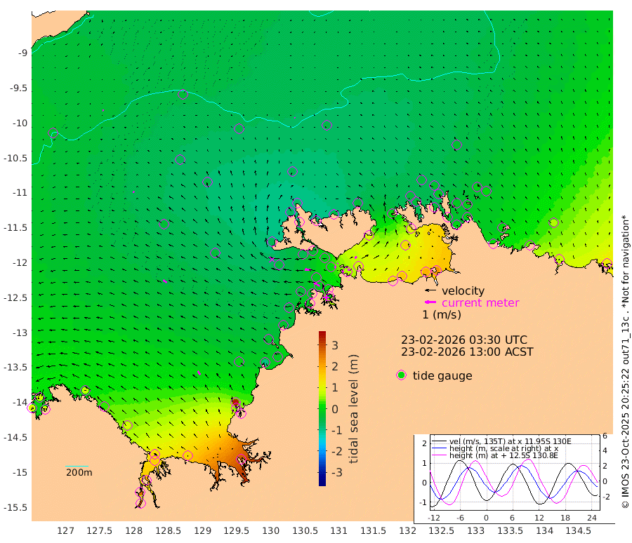 11cm/s 84T +4cm/s rms + 6cm/s 51T. Darwin_C1 52m 15cm/s 86T +4cm/s rms + 7cm/s -161T. Darwin_CW1 22m 17cm/s -108T +4cm/s rms + 8cm/s 61T. Darwin_CW2 34m 27cm/s 37T +3cm/s rms + 9cm/s 98T. Darwin_CW3 22m 3cm/s 157T +5cm/s rms + 7cm/s 88T. Darwin_C3 56m 6cm/s 77T +2cm/s rms + 9cm/s -126T. Darwin_CTbW 22m 6cm/s -18T +9cm/s rms + 2cm/s -110T. NWSLYN 196m 57cm/s -85T +1cm/s rms + 1cm/s -47T. DARBGF 30m 9cm/s -116T +7cm/s rms + 2cm/s -137T. ITFTIS 464m 11cm/s -56T +9cm/s rms + 1cm/s 74T. ITFMHB 146m 39cm/s -34T +4cm/s rms + 1cm/s -134T. ITFJBG 61m 39cm/s -54T +6cm/s rms + 4cm/s 121T. ITFFTB 108m 67cm/s -55T +4cm/s rms + 3cm/s 80T. NRSDAR 19m 88cm Carronade Island 99cm Guy Point 88cm Napier Broome Bay 79cm Lesueur Island 88cm Reveley Island 31cm Rocky Island 147cm Cape Domett 135cm Lacrosse Island 210cm Adolphus Island 264cm Pender Point 310cm Wyndham -37cm The Boxers -65cm Unnamed Shoal -43cm Loxton Shoal 136cm Pelican Island -55cm Calder Shoal -49cm Evans Shoal 275cm Quoin Island 61cm Port Keats 53cm Jones Point 333cm Catfish Island 1cm Cape Scott Offshore -97cm Cape Ford -12cm Anson Bay -63cm Goodrich Bank -26cm Peron Island North -30cm Point Jenny -35cm Native Point -36cm Fish Reef -26cm Tapa Bay -66cm Point Fawcett (Offshore) -22cm Burge Point -58cm Munkunuwa -45cm Beagle A -21cm Parsons Bank -18cm Fenton Patches -51cm Lynedoch Bank 9cm Hancox Shoal Area 1cm Nightcliff -6cm Darwin -22cm Charles Point Patches 57cm Glyde Point 146cm Chambers Bay 159cm Point Stuart 80cm Cape Hotham 138cm Christine Reef 184cm West Alligator Head 222cm East Field Island 103cm Two Hills Bay -36cm Newby Shoal 97cm Camp Point -39cm Medina Inlet South -81cm South Barlow Point -74cm St. Asaph Bay -70cm Cape Van Dieman -74cm Snake Bay -54cm Cache Point -24cm Echo Shoal -38cm Point Jahleel (Off) 1cm Cape Don -38cm Port Essington -36cm Smith Point - West -32cm NW Peacock Island -40cm North Of Jones Shoal -14cm Peacock Island -14cm Point David -35cm D'urville Point -26cm Money Shoal -8cm Copeland Island -10cm Cape Cockburn -15cm One Tree Point 7cm Hogmany Shoal -9cm New Year Island - West -7cm Grant Island 15cm Aurari Bay 44cm Cuthbert Point 12cm North Goulburn Island 60cm Paxie Shoal 78cm Entrance Island 121cm Yabooma Island