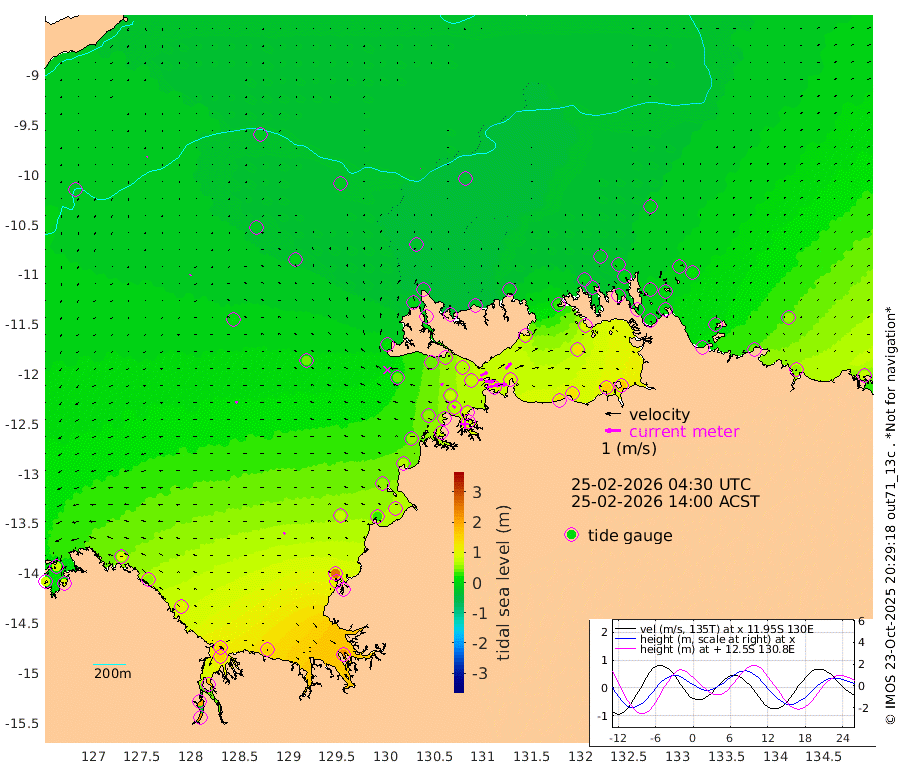 85cm/s 78T +4cm/s rms + 6cm/s 51T. Darwin_C1 52m 73cm/s 91T +4cm/s rms + 7cm/s -161T. Darwin_CW1 22m 26cm/s 73T +4cm/s rms + 8cm/s 61T. Darwin_CW2 34m 51cm/s 46T +3cm/s rms + 9cm/s 98T. Darwin_CW3 22m 53cm/s 91T +5cm/s rms + 7cm/s 88T. Darwin_C3 56m 49cm/s 66T +2cm/s rms + 9cm/s -126T. Darwin_CTbW 22m 3cm/s 4T +9cm/s rms + 2cm/s -110T. NWSLYN 196m 16cm/s -74T +1cm/s rms + 1cm/s -47T. DARBGF 30m 5cm/s -124T +7cm/s rms + 2cm/s -137T. ITFTIS 464m 7cm/s -133T +9cm/s rms + 1cm/s 74T. ITFMHB 146m 14cm/s -47T +4cm/s rms + 1cm/s -134T. ITFJBG 61m 15cm/s -66T +6cm/s rms + 4cm/s 121T. ITFFTB 108m 25cm/s -49T +4cm/s rms + 3cm/s 80T. NRSDAR 19m 77cm Carronade Island 84cm Guy Point 80cm Napier Broome Bay 83cm Lesueur Island 108cm Reveley Island 56cm Rocky Island 157cm Cape Domett 148cm Lacrosse Island 179cm Adolphus Island 198cm Pender Point 218cm Wyndham 8cm The Boxers -14cm Unnamed Shoal -17cm Loxton Shoal 150cm Pelican Island -5cm Calder Shoal -17cm Evans Shoal 217cm Quoin Island 115cm Port Keats 103cm Jones Point 258cm Catfish Island 70cm Cape Scott Offshore 29cm Cape Ford 67cm Anson Bay -25cm Goodrich Bank 53cm Peron Island North 61cm Point Jenny 56cm Native Point 55cm Fish Reef 63cm Tapa Bay 12cm Point Fawcett (Offshore) 70cm Burge Point 40cm Munkunuwa 45cm Beagle A 60cm Parsons Bank 70cm Fenton Patches -24cm Lynedoch Bank 76cm Hancox Shoal Area 82cm Nightcliff 71cm Darwin 58cm Charles Point Patches 89cm Glyde Point 129cm Chambers Bay 132cm Point Stuart 93cm Cape Hotham 128cm Christine Reef 150cm West Alligator Head 165cm East Field Island 98cm Two Hills Bay 38cm Newby Shoal 92cm Camp Point 50cm Medina Inlet South -11cm South Barlow Point -11cm St. Asaph Bay -27cm Cape Van Dieman -32cm Snake Bay -14cm Cache Point -12cm Echo Shoal -3cm Point Jahleel (Off) 30cm Cape Don -8cm Port Essington -4cm Smith Point - West -7cm NW Peacock Island -12cm North Of Jones Shoal -4cm Peacock Island -2cm Point David -7cm D'urville Point -9cm Money Shoal 2cm Copeland Island 7cm Cape Cockburn 0cm One Tree Point 14cm Hogmany Shoal 2cm New Year Island - West 5cm Grant Island 16cm Aurari Bay 37cm Cuthbert Point 17cm North Goulburn Island 48cm Paxie Shoal 56cm Entrance Island 77cm Yabooma Island