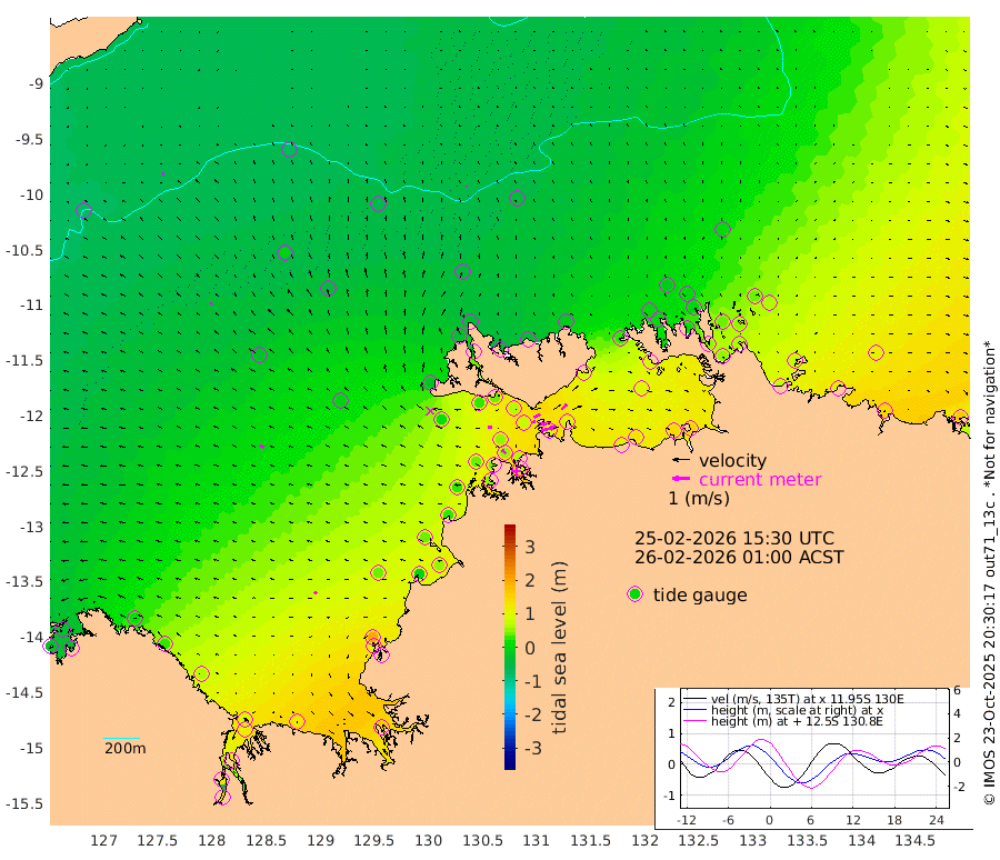 69cm/s 78T +4cm/s rms + 6cm/s 51T. Darwin_C1 52m 36cm/s 87T +4cm/s rms + 7cm/s -161T. Darwin_CW1 22m 21cm/s 71T +4cm/s rms + 8cm/s 61T. Darwin_CW2 34m 44cm/s 43T +3cm/s rms + 9cm/s 98T. Darwin_CW3 22m 40cm/s 91T +5cm/s rms + 7cm/s 88T. Darwin_C3 56m 41cm/s 63T +2cm/s rms + 9cm/s -126T. Darwin_CTbW 22m 7cm/s -28T +9cm/s rms + 2cm/s -110T. NWSLYN 196m 23cm/s -81T +1cm/s rms + 1cm/s -47T. DARBGF 30m 8cm/s -86T +7cm/s rms + 2cm/s -137T. ITFTIS 464m 15cm/s -34T +9cm/s rms + 1cm/s 74T. ITFMHB 146m 14cm/s -53T +4cm/s rms + 1cm/s -134T. ITFJBG 61m 25cm/s -61T +6cm/s rms + 4cm/s 121T. ITFFTB 108m 30cm/s -50T +4cm/s rms + 3cm/s 80T. NRSDAR 19m -27cm Carronade Island -34cm Guy Point -27cm Napier Broome Bay 15cm Lesueur Island 65cm Reveley Island 25cm Rocky Island 108cm Cape Domett 94cm Lacrosse Island 131cm Adolphus Island 126cm Pender Point 138cm Wyndham -33cm The Boxers -3cm Unnamed Shoal -73cm Loxton Shoal 119cm Pelican Island -54cm Calder Shoal -60cm Evans Shoal 165cm Quoin Island 85cm Port Keats 98cm Jones Point 196cm Catfish Island 37cm Cape Scott Offshore -5cm Cape Ford 45cm Anson Bay -45cm Goodrich Bank 38cm Peron Island North 31cm Point Jenny 29cm Native Point 38cm Fish Reef 43cm Tapa Bay -23cm Point Fawcett (Offshore) 55cm Burge Point 27cm Munkunuwa 15cm Beagle A 67cm Parsons Bank 53cm Fenton Patches -42cm Lynedoch Bank 71cm Hancox Shoal Area 61cm Nightcliff 73cm Darwin 48cm Charles Point Patches 88cm Glyde Point 111cm Chambers Bay 129cm Point Stuart 94cm Cape Hotham 101cm Christine Reef 142cm West Alligator Head 151cm East Field Island 98cm Two Hills Bay -5cm Newby Shoal 85cm Camp Point 37cm Medina Inlet South -26cm South Barlow Point -44cm St. Asaph Bay -44cm Cape Van Dieman -37cm Snake Bay -35cm Cache Point -79cm Echo Shoal -16cm Point Jahleel (Off) 30cm Cape Don 0cm Port Essington 0cm Smith Point - West 6cm NW Peacock Island -19cm North Of Jones Shoal -3cm Peacock Island 45cm Point David 12cm D'urville Point 8cm Money Shoal 50cm Copeland Island 63cm Cape Cockburn 36cm One Tree Point 67cm Hogmany Shoal 44cm New Year Island - West 50cm Grant Island 76cm Aurari Bay 103cm Cuthbert Point 71cm North Goulburn Island 106cm Paxie Shoal 135cm Entrance Island 166cm Yabooma Island