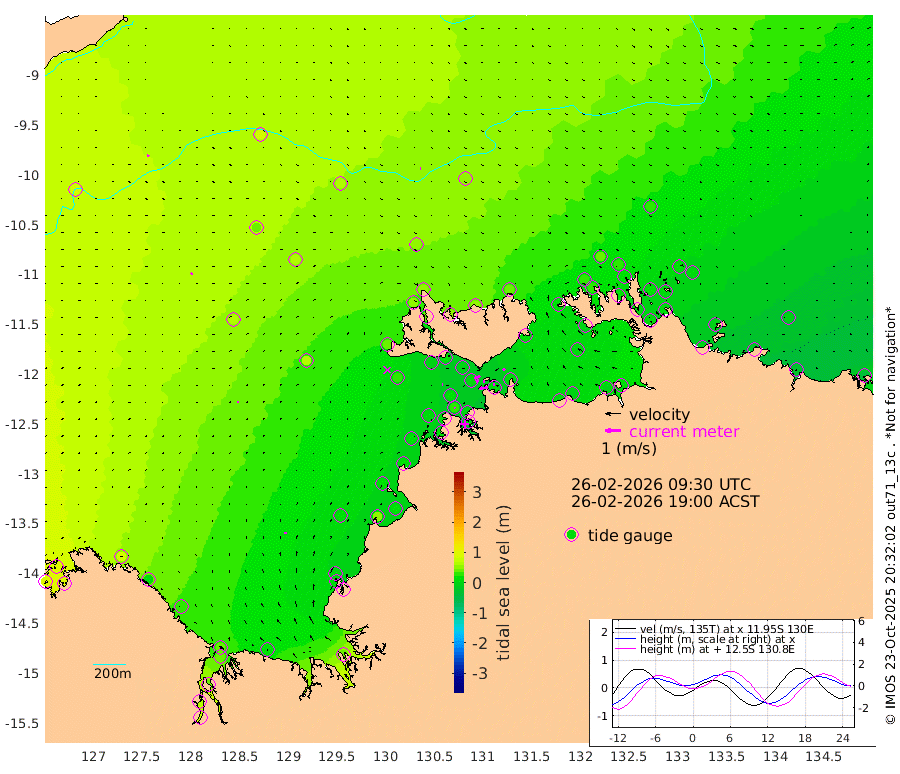 56cm/s -101T +4cm/s rms + 6cm/s 51T. Darwin_C1 52m 14cm/s -86T +4cm/s rms + 7cm/s -161T. Darwin_CW1 22m 18cm/s -111T +4cm/s rms + 8cm/s 61T. Darwin_CW2 34m 15cm/s -120T +3cm/s rms + 9cm/s 98T. Darwin_CW3 22m 15cm/s -95T +5cm/s rms + 7cm/s 88T. Darwin_C3 56m 39cm/s -116T +2cm/s rms + 9cm/s -126T. Darwin_CTbW 22m 6cm/s 104T +9cm/s rms + 2cm/s -110T. NWSLYN 196m 6cm/s -83T +1cm/s rms + 1cm/s -47T. DARBGF 30m 9cm/s 28T +7cm/s rms + 2cm/s -137T. ITFTIS 464m 11cm/s 35T +9cm/s rms + 1cm/s 74T. ITFMHB 146m 13cm/s -2T +4cm/s rms + 1cm/s -134T. ITFJBG 61m 11cm/s 21T +6cm/s rms + 4cm/s 121T. ITFFTB 108m 7cm/s -76T +4cm/s rms + 3cm/s 80T. NRSDAR 19m 92cm Carronade Island 98cm Guy Point 97cm Napier Broome Bay 80cm Lesueur Island 29cm Reveley Island 9cm Rocky Island 34cm Cape Domett 36cm Lacrosse Island 42cm Adolphus Island 62cm Pender Point 70cm Wyndham 64cm The Boxers 40cm Unnamed Shoal 80cm Loxton Shoal 15cm Pelican Island 67cm Calder Shoal 60cm Evans Shoal 34cm Quoin Island 21cm Port Keats 6cm Jones Point 1cm Catfish Island 19cm Cape Scott Offshore 53cm Cape Ford 12cm Anson Bay 53cm Goodrich Bank 12cm Peron Island North 14cm Point Jenny 15cm Native Point 10cm Fish Reef 12cm Tapa Bay 37cm Point Fawcett (Offshore) 13cm Burge Point -1cm Munkunuwa 26cm Beagle A -6cm Parsons Bank 14cm Fenton Patches 54cm Lynedoch Bank 1cm Hancox Shoal Area 6cm Nightcliff 9cm Darwin 25cm Charles Point Patches 7cm Glyde Point 7cm Chambers Bay -5cm Point Stuart 2cm Cape Hotham 8cm Christine Reef -9cm West Alligator Head 1cm East Field Island -1cm Two Hills Bay 57cm Newby Shoal 20cm Camp Point 13cm Medina Inlet South 37cm South Barlow Point 47cm St. Asaph Bay 49cm Cape Van Dieman 48cm Snake Bay 49cm Cache Point 85cm Echo Shoal 38cm Point Jahleel (Off) 20cm Cape Don 30cm Port Essington 25cm Smith Point - West 26cm NW Peacock Island 40cm North Of Jones Shoal 12cm Peacock Island 7cm Point David 20cm D'urville Point 34cm Money Shoal 3cm Copeland Island 8cm Cape Cockburn 14cm One Tree Point 8cm Hogmany Shoal 16cm New Year Island - West 10cm Grant Island -7cm Aurari Bay -14cm Cuthbert Point -1cm North Goulburn Island -8cm Paxie Shoal -25cm Entrance Island -38cm Yabooma Island