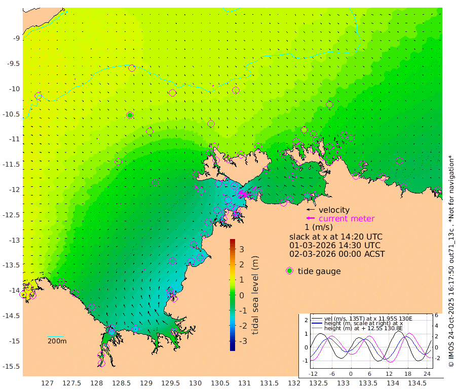 114cm/s -101T +4cm/s rms + 6cm/s 51T. Darwin_C1 52m 101cm/s -91T +4cm/s rms + 7cm/s -161T. Darwin_CW1 22m 61cm/s -108T +4cm/s rms + 8cm/s 61T. Darwin_CW2 34m 61cm/s -136T +3cm/s rms + 9cm/s 98T. Darwin_CW3 22m 85cm/s -91T +5cm/s rms + 7cm/s 88T. Darwin_C3 56m 61cm/s -116T +2cm/s rms + 9cm/s -126T. Darwin_CTbW 22m 10cm/s 148T +9cm/s rms + 2cm/s -110T. NWSLYN 196m 16cm/s -103T +1cm/s rms + 1cm/s -47T. DARBGF 30m 7cm/s 51T +7cm/s rms + 2cm/s -137T. ITFTIS 464m 9cm/s 52T +9cm/s rms + 1cm/s 74T. ITFMHB 146m 18cm/s 8T +4cm/s rms + 1cm/s -134T. ITFJBG 61m 10cm/s 51T +6cm/s rms + 4cm/s 121T. ITFFTB 108m 15cm/s -78T +4cm/s rms + 3cm/s 80T. NRSDAR 19m 94cm Carronade Island 99cm Guy Point 105cm Napier Broome Bay 12cm Lesueur Island -83cm Reveley Island -45cm Rocky Island -139cm Cape Domett -124cm Lacrosse Island -138cm Adolphus Island -79cm Pender Point -57cm Wyndham 36cm The Boxers 20cm Unnamed Shoal 89cm Loxton Shoal -162cm Pelican Island 45cm Calder Shoal 68cm Evans Shoal -157cm Quoin Island -163cm Port Keats -167cm Jones Point -95cm Catfish Island -100cm Cape Scott Offshore -142cm Cape Ford -118cm Anson Bay 49cm Goodrich Bank -101cm Peron Island North -109cm Point Jenny -108cm Native Point -122cm Fish Reef -127cm Tapa Bay -23cm Point Fawcett (Offshore) -147cm Burge Point -126cm Munkunuwa -95cm Beagle A -138cm Parsons Bank -146cm Fenton Patches 60cm Lynedoch Bank -135cm Hancox Shoal Area -146cm Nightcliff -150cm Darwin -124cm Charles Point Patches -109cm Glyde Point -85cm Chambers Bay -85cm Point Stuart -92cm Cape Hotham -77cm Christine Reef -94cm West Alligator Head -87cm East Field Island -65cm Two Hills Bay -27cm Newby Shoal -66cm Camp Point -121cm Medina Inlet South -11cm South Barlow Point 11cm St. Asaph Bay 46cm Cape Van Dieman 46cm Snake Bay 44cm Cache Point 100cm Echo Shoal 25cm Point Jahleel (Off) -11cm Cape Don 25cm Port Essington 22cm Smith Point - West 27cm NW Peacock Island 45cm North Of Jones Shoal 14cm Peacock Island 13cm Point David 22cm D'urville Point 36cm Money Shoal 9cm Copeland Island 12cm Cape Cockburn 19cm One Tree Point 16cm Hogmany Shoal 17cm New Year Island - West 13cm Grant Island -10cm Aurari Bay -18cm Cuthbert Point -3cm North Goulburn Island -18cm Paxie Shoal -41cm Entrance Island -57cm Yabooma Island