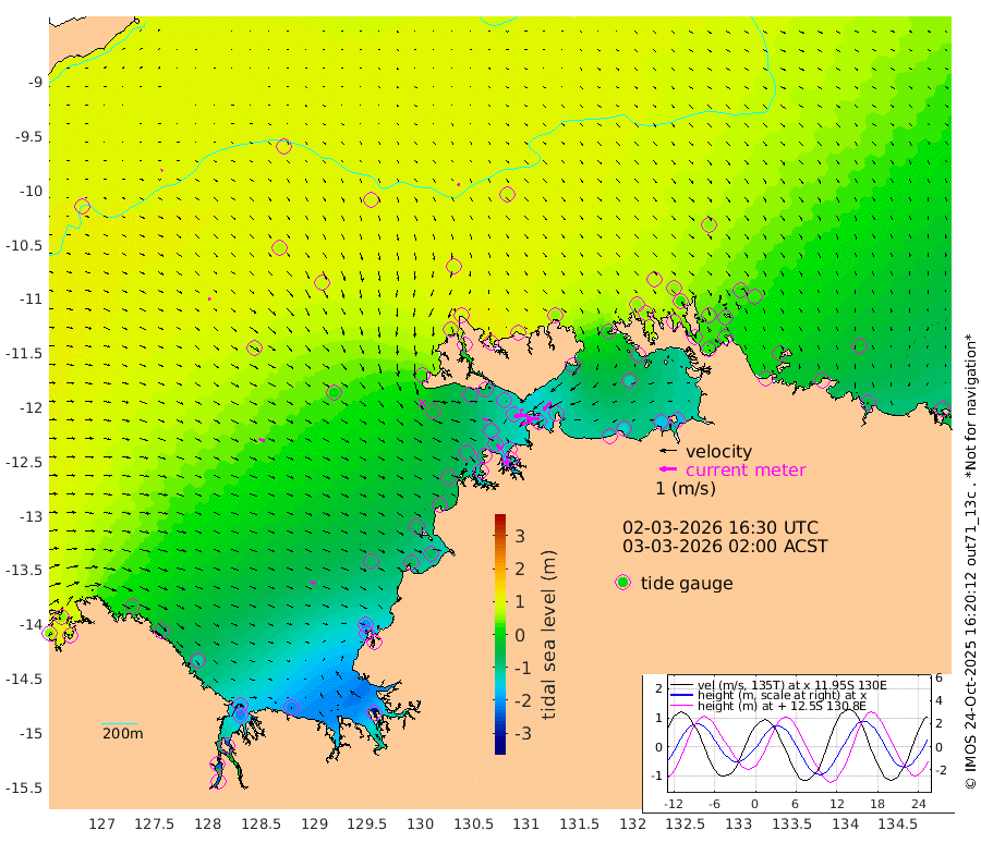 67cm/s -101T +4cm/s rms + 6cm/s 51T. Darwin_C1 52m 74cm/s -91T +4cm/s rms + 7cm/s -161T. Darwin_CW1 22m 45cm/s -108T +4cm/s rms + 8cm/s 61T. Darwin_CW2 34m 66cm/s -139T +3cm/s rms + 9cm/s 98T. Darwin_CW3 22m 85cm/s -91T +5cm/s rms + 7cm/s 88T. Darwin_C3 56m 22cm/s -114T +2cm/s rms + 9cm/s -126T. Darwin_CTbW 22m 15cm/s 153T +9cm/s rms + 2cm/s -110T. NWSLYN 196m 31cm/s 104T +1cm/s rms + 1cm/s -47T. DARBGF 30m 10cm/s 64T +7cm/s rms + 2cm/s -137T. ITFTIS 464m 13cm/s 109T +9cm/s rms + 1cm/s 74T. ITFMHB 146m 24cm/s 111T +4cm/s rms + 1cm/s -134T. ITFJBG 61m 35cm/s 114T +6cm/s rms + 4cm/s 121T. ITFFTB 108m 35cm/s 135T +4cm/s rms + 3cm/s 80T. NRSDAR 19m 54cm Carronade Island 53cm Guy Point 60cm Napier Broome Bay -19cm Lesueur Island -116cm Reveley Island -75cm Rocky Island -205cm Cape Domett -176cm Lacrosse Island -246cm Adolphus Island -232cm Pender Point -229cm Wyndham 57cm The Boxers 59cm Unnamed Shoal 93cm Loxton Shoal -209cm Pelican Island 71cm Calder Shoal 85cm Evans Shoal -298cm Quoin Island -171cm Port Keats -170cm Jones Point -202cm Catfish Island -69cm Cape Scott Offshore -77cm Cape Ford -75cm Anson Bay 77cm Goodrich Bank -61cm Peron Island North -55cm Point Jenny -54cm Native Point -70cm Fish Reef -78cm Tapa Bay 33cm Point Fawcett (Offshore) -106cm Burge Point -73cm Munkunuwa -40cm Beagle A -101cm Parsons Bank -103cm Fenton Patches 76cm Lynedoch Bank -108cm Hancox Shoal Area -109cm Nightcliff -123cm Darwin -88cm Charles Point Patches -114cm Glyde Point -133cm Chambers Bay -142cm Point Stuart -109cm Cape Hotham -121cm Christine Reef -162cm West Alligator Head -177cm East Field Island -96cm Two Hills Bay 7cm Newby Shoal -98cm Camp Point -76cm Medina Inlet South 38cm South Barlow Point 57cm St. Asaph Bay 79cm Cape Van Dieman 77cm Snake Bay 74cm Cache Point 100cm Echo Shoal 49cm Point Jahleel (Off) 1cm Cape Don 48cm Port Essington 49cm Smith Point - West 50cm NW Peacock Island 69cm North Of Jones Shoal 23cm Peacock Island 30cm Point David 48cm D'urville Point 53cm Money Shoal 24cm Copeland Island 31cm Cape Cockburn 34cm One Tree Point 28cm Hogmany Shoal 30cm New Year Island - West 25cm Grant Island 1cm Aurari Bay -19cm Cuthbert Point 6cm North Goulburn Island -27cm Paxie Shoal -59cm Entrance Island -89cm Yabooma Island