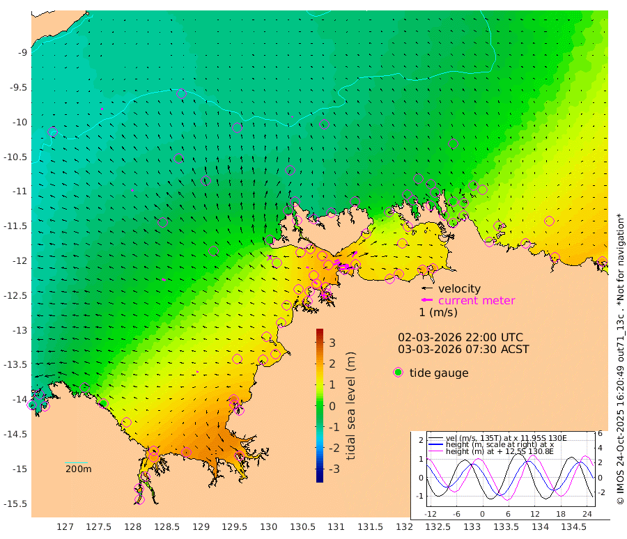91cm/s 80T +4cm/s rms + 6cm/s 51T. Darwin_C1 52m 80cm/s 91T +4cm/s rms + 7cm/s -161T. Darwin_CW1 22m 64cm/s 69T +4cm/s rms + 8cm/s 61T. Darwin_CW2 34m 67cm/s 42T +3cm/s rms + 9cm/s 98T. Darwin_CW3 22m 98cm/s 89T +5cm/s rms + 7cm/s 88T. Darwin_C3 56m 40cm/s 65T +2cm/s rms + 9cm/s -126T. Darwin_CTbW 22m 9cm/s -17T +9cm/s rms + 2cm/s -110T. NWSLYN 196m 20cm/s -69T +1cm/s rms + 1cm/s -47T. DARBGF 30m 12cm/s -90T +7cm/s rms + 2cm/s -137T. ITFTIS 464m 18cm/s -48T +9cm/s rms + 1cm/s 74T. ITFMHB 146m 17cm/s -81T +4cm/s rms + 1cm/s -134T. ITFJBG 61m 33cm/s -64T +6cm/s rms + 4cm/s 121T. ITFFTB 108m 34cm/s -49T +4cm/s rms + 3cm/s 80T. NRSDAR 19m -91cm Carronade Island -90cm Guy Point -104cm Napier Broome Bay 7cm Lesueur Island 123cm Reveley Island 14cm Rocky Island 214cm Cape Domett 185cm Lacrosse Island 245cm Adolphus Island 205cm Pender Point 200cm Wyndham -59cm The Boxers -42cm Unnamed Shoal -114cm Loxton Shoal 238cm Pelican Island -78cm Calder Shoal -90cm Evans Shoal 306cm Quoin Island 204cm Port Keats 210cm Jones Point 240cm Catfish Island 107cm Cape Scott Offshore 123cm Cape Ford 126cm Anson Bay -71cm Goodrich Bank 106cm Peron Island North 94cm Point Jenny 91cm Native Point 113cm Fish Reef 123cm Tapa Bay -4cm Point Fawcett (Offshore) 151cm Burge Point 109cm Munkunuwa 66cm Beagle A 154cm Parsons Bank 139cm Fenton Patches -73cm Lynedoch Bank 160cm Hancox Shoal Area 154cm Nightcliff 178cm Darwin 143cm Charles Point Patches 152cm Glyde Point 162cm Chambers Bay 171cm Point Stuart 148cm Cape Hotham 142cm Christine Reef 186cm West Alligator Head 194cm East Field Island 128cm Two Hills Bay 1cm Newby Shoal 127cm Camp Point 119cm Medina Inlet South -16cm South Barlow Point -44cm St. Asaph Bay -69cm Cape Van Dieman -65cm Snake Bay -60cm Cache Point -126cm Echo Shoal -32cm Point Jahleel (Off) 34cm Cape Don -14cm Port Essington -17cm Smith Point - West -14cm NW Peacock Island -40cm North Of Jones Shoal -10cm Peacock Island 29cm Point David -8cm D'urville Point -9cm Money Shoal 37cm Copeland Island 47cm Cape Cockburn 22cm One Tree Point 51cm Hogmany Shoal 23cm New Year Island - West 32cm Grant Island 67cm Aurari Bay 97cm Cuthbert Point 65cm North Goulburn Island 114cm Paxie Shoal 148cm Entrance Island 201cm Yabooma Island