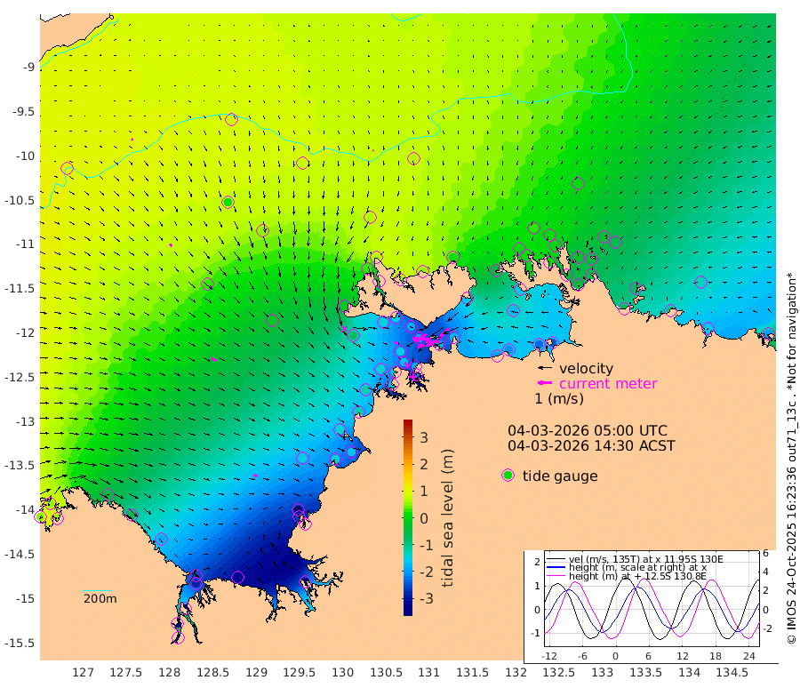 117cm/s -101T +4cm/s rms + 6cm/s 51T. Darwin_C1 52m 101cm/s -92T +4cm/s rms + 7cm/s -161T. Darwin_CW1 22m 71cm/s -106T +4cm/s rms + 8cm/s 61T. Darwin_CW2 34m 90cm/s -137T +3cm/s rms + 9cm/s 98T. Darwin_CW3 22m 136cm/s -91T +5cm/s rms + 7cm/s 88T. Darwin_C3 56m 49cm/s -116T +2cm/s rms + 9cm/s -126T. Darwin_CTbW 22m 6cm/s -177T +9cm/s rms + 2cm/s -110T. NWSLYN 196m 28cm/s 112T +1cm/s rms + 1cm/s -47T. DARBGF 30m 12cm/s 106T +7cm/s rms + 2cm/s -137T. ITFTIS 464m 20cm/s 137T +9cm/s rms + 1cm/s 74T. ITFMHB 146m 28cm/s 115T +4cm/s rms + 1cm/s -134T. ITFJBG 61m 42cm/s 119T +6cm/s rms + 4cm/s 121T. ITFFTB 108m 38cm/s 139T +4cm/s rms + 3cm/s 80T. NRSDAR 19m 52cm Carronade Island 47cm Guy Point 51cm Napier Broome Bay -51cm Lesueur Island -182cm Reveley Island -62cm Rocky Island -292cm Cape Domett -254cm Lacrosse Island -319cm Adolphus Island -315cm Pender Point -306cm Wyndham 32cm The Boxers 17cm Unnamed Shoal 90cm Loxton Shoal -305cm Pelican Island 55cm Calder Shoal 75cm Evans Shoal -409cm Quoin Island -254cm Port Keats -261cm Jones Point -336cm Catfish Island -147cm Cape Scott Offshore -140cm Cape Ford -164cm Anson Bay 62cm Goodrich Bank -137cm Peron Island North -119cm Point Jenny -116cm Native Point -137cm Fish Reef -154cm Tapa Bay -16cm Point Fawcett (Offshore) -180cm Burge Point -140cm Munkunuwa -77cm Beagle A -184cm Parsons Bank -157cm Fenton Patches 61cm Lynedoch Bank -190cm Hancox Shoal Area -182cm Nightcliff -217cm Darwin -178cm Charles Point Patches -186cm Glyde Point -201cm Chambers Bay -211cm Point Stuart -178cm Cape Hotham -174cm Christine Reef -232cm West Alligator Head -239cm East Field Island -162cm Two Hills Bay -19cm Newby Shoal -160cm Camp Point -152cm Medina Inlet South 3cm South Barlow Point 32cm St. Asaph Bay 61cm Cape Van Dieman 53cm Snake Bay 52cm Cache Point 107cm Echo Shoal 22cm Point Jahleel (Off) -51cm Cape Don 6cm Port Essington 15cm Smith Point - West 12cm NW Peacock Island 33cm North Of Jones Shoal 9cm Peacock Island -34cm Point David 8cm D'urville Point 7cm Money Shoal -38cm Copeland Island -48cm Cape Cockburn -28cm One Tree Point -60cm Hogmany Shoal -28cm New Year Island - West -38cm Grant Island -65cm Aurari Bay -100cm Cuthbert Point -70cm North Goulburn Island -131cm Paxie Shoal -155cm Entrance Island -202cm Yabooma Island