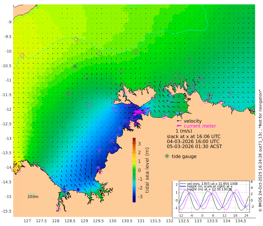 210cm/s -101T +4cm/s rms + 6cm/s 51T. Darwin_C1 52m 164cm/s -91T +4cm/s rms + 7cm/s -161T. Darwin_CW1 22m 115cm/s -106T +4cm/s rms + 8cm/s 61T. Darwin_CW2 34m 99cm/s -135T +3cm/s rms + 9cm/s 98T. Darwin_CW3 22m 173cm/s -91T +5cm/s rms + 7cm/s 88T. Darwin_C3 56m 115cm/s -115T +2cm/s rms + 9cm/s -126T. Darwin_CTbW 22m 9cm/s 169T +9cm/s rms + 2cm/s -110T. NWSLYN 196m 41cm/s -99T +1cm/s rms + 1cm/s -47T. DARBGF 30m 7cm/s 84T +7cm/s rms + 2cm/s -137T. ITFTIS 464m 9cm/s 66T +9cm/s rms + 1cm/s 74T. ITFMHB 146m 25cm/s 8T +4cm/s rms + 1cm/s -134T. ITFJBG 61m 11cm/s 51T +6cm/s rms + 4cm/s 121T. ITFFTB 108m 33cm/s -75T +4cm/s rms + 3cm/s 80T. NRSDAR 19m 113cm Carronade Island 119cm Guy Point 122cm Napier Broome Bay -29cm Lesueur Island -160cm Reveley Island -79cm Rocky Island -253cm Cape Domett -227cm Lacrosse Island -253cm Adolphus Island -141cm Pender Point -108cm Wyndham -12cm The Boxers -34cm Unnamed Shoal 67cm Loxton Shoal -289cm Pelican Island 2cm Calder Shoal 37cm Evans Shoal -293cm Quoin Island -298cm Port Keats -293cm Jones Point -210cm Catfish Island -216cm Cape Scott Offshore -266cm Cape Ford -247cm Anson Bay 10cm Goodrich Bank -228cm Peron Island North -218cm Point Jenny -215cm Native Point -246cm Fish Reef -249cm Tapa Bay -108cm Point Fawcett (Offshore) -276cm Burge Point -242cm Munkunuwa -194cm Beagle A -273cm Parsons Bank -266cm Fenton Patches 25cm Lynedoch Bank -262cm Hancox Shoal Area -276cm Nightcliff -300cm Darwin -268cm Charles Point Patches -211cm Glyde Point -153cm Chambers Bay -148cm Point Stuart -178cm Cape Hotham -137cm Christine Reef -156cm West Alligator Head -134cm East Field Island -138cm Two Hills Bay -110cm Newby Shoal -132cm Camp Point -251cm Medina Inlet South -91cm South Barlow Point -50cm St. Asaph Bay 4cm Cape Van Dieman -5cm Snake Bay -2cm Cache Point 96cm Echo Shoal -25cm Point Jahleel (Off) -83cm Cape Don -38cm Port Essington -40cm Smith Point - West -33cm NW Peacock Island -12cm North Of Jones Shoal -7cm Peacock Island -54cm Point David -43cm D'urville Point -23cm Money Shoal -59cm Copeland Island -82cm Cape Cockburn -53cm One Tree Point -65cm Hogmany Shoal -52cm New Year Island - West -58cm Grant Island -84cm Aurari Bay -99cm Cuthbert Point -82cm North Goulburn Island -97cm Paxie Shoal -121cm Entrance Island -141cm Yabooma Island