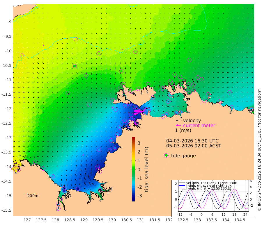 192cm/s -101T +4cm/s rms + 6cm/s 51T. Darwin_C1 52m 152cm/s -91T +4cm/s rms + 7cm/s -161T. Darwin_CW1 22m 101cm/s -106T +4cm/s rms + 8cm/s 61T. Darwin_CW2 34m 102cm/s -136T +3cm/s rms + 9cm/s 98T. Darwin_CW3 22m 163cm/s -91T +5cm/s rms + 7cm/s 88T. Darwin_C3 56m 101cm/s -116T +2cm/s rms + 9cm/s -126T. Darwin_CTbW 22m 12cm/s 165T +9cm/s rms + 2cm/s -110T. NWSLYN 196m 18cm/s -116T +1cm/s rms + 1cm/s -47T. DARBGF 30m 9cm/s 81T +7cm/s rms + 2cm/s -137T. ITFTIS 464m 11cm/s 93T +9cm/s rms + 1cm/s 74T. ITFMHB 146m 18cm/s 42T +4cm/s rms + 1cm/s -134T. ITFJBG 61m 20cm/s 96T +6cm/s rms + 4cm/s 121T. ITFFTB 108m 13cm/s -115T +4cm/s rms + 3cm/s 80T. NRSDAR 19m 97cm Carronade Island 101cm Guy Point 105cm Napier Broome Bay -39cm Lesueur Island -173cm Reveley Island -91cm Rocky Island -280cm Cape Domett -248cm Lacrosse Island -299cm Adolphus Island -211cm Pender Point -188cm Wyndham 7cm The Boxers -9cm Unnamed Shoal 82cm Loxton Shoal -308cm Pelican Island 25cm Calder Shoal 55cm Evans Shoal -355cm Quoin Island -297cm Port Keats -293cm Jones Point -269cm Catfish Island -196cm Cape Scott Offshore -228cm Cape Ford -221cm Anson Bay 33cm Goodrich Bank -203cm Peron Island North -189cm Point Jenny -186cm Native Point -217cm Fish Reef -221cm Tapa Bay -74cm Point Fawcett (Offshore) -253cm Burge Point -212cm Munkunuwa -163cm Beagle A -251cm Parsons Bank -242cm Fenton Patches 43cm Lynedoch Bank -245cm Hancox Shoal Area -254cm Nightcliff -280cm Darwin -243cm Charles Point Patches -212cm Glyde Point -178cm Chambers Bay -180cm Point Stuart -187cm Cape Hotham -161cm Christine Reef -195cm West Alligator Head -185cm East Field Island -154cm Two Hills Bay -86cm Newby Shoal -147cm Camp Point -223cm Medina Inlet South -58cm South Barlow Point -19cm St. Asaph Bay 29cm Cape Van Dieman 21cm Snake Bay 21cm Cache Point 107cm Echo Shoal -7cm Point Jahleel (Off) -72cm Cape Don -20cm Port Essington -20cm Smith Point - West -15cm NW Peacock Island 8cm North Of Jones Shoal 0cm Peacock Island -42cm Point David -24cm D'urville Point -7cm Money Shoal -47cm Copeland Island -68cm Cape Cockburn -40cm One Tree Point -55cm Hogmany Shoal -40cm New Year Island - West -48cm Grant Island -76cm Aurari Bay -99cm Cuthbert Point -74cm North Goulburn Island -101cm Paxie Shoal -131cm Entrance Island -161cm Yabooma Island