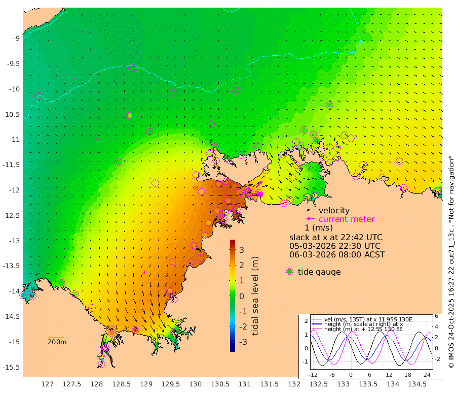 203cm/s 78T +4cm/s rms + 6cm/s 51T. Darwin_C1 52m 150cm/s 93T +4cm/s rms + 7cm/s -161T. Darwin_CW1 22m 130cm/s 73T +4cm/s rms + 8cm/s 61T. Darwin_CW2 34m 107cm/s 45T +3cm/s rms + 9cm/s 98T. Darwin_CW3 22m 201cm/s 89T +5cm/s rms + 7cm/s 88T. Darwin_C3 56m 95cm/s 66T +2cm/s rms + 9cm/s -126T. Darwin_CTbW 22m 3cm/s 68T +9cm/s rms + 2cm/s -110T. NWSLYN 196m 45cm/s 81T +1cm/s rms + 1cm/s -47T. DARBGF 30m 6cm/s -87T +7cm/s rms + 2cm/s -137T. ITFTIS 464m 10cm/s -122T +9cm/s rms + 1cm/s 74T. ITFMHB 146m 24cm/s -167T +4cm/s rms + 1cm/s -134T. ITFJBG 61m 11cm/s -140T +6cm/s rms + 4cm/s 121T. ITFFTB 108m 35cm/s 106T +4cm/s rms + 3cm/s 80T. NRSDAR 19m -123cm Carronade Island -122cm Guy Point -132cm Napier Broome Bay 16cm Lesueur Island 154cm Reveley Island 35cm Rocky Island 230cm Cape Domett 209cm Lacrosse Island 213cm Adolphus Island 116cm Pender Point 76cm Wyndham 12cm The Boxers 41cm Unnamed Shoal -59cm Loxton Shoal 274cm Pelican Island 3cm Calder Shoal -27cm Evans Shoal 271cm Quoin Island 278cm Port Keats 276cm Jones Point 202cm Catfish Island 223cm Cape Scott Offshore 243cm Cape Ford 256cm Anson Bay -3cm Goodrich Bank 228cm Peron Island North 212cm Point Jenny 210cm Native Point 235cm Fish Reef 248cm Tapa Bay 118cm Point Fawcett (Offshore) 259cm Burge Point 243cm Munkunuwa 173cm Beagle A 267cm Parsons Bank 240cm Fenton Patches -18cm Lynedoch Bank 258cm Hancox Shoal Area 267cm Nightcliff 292cm Darwin 266cm Charles Point Patches 194cm Glyde Point 136cm Chambers Bay 127cm Point Stuart 165cm Cape Hotham 114cm Christine Reef 132cm West Alligator Head 101cm East Field Island 125cm Two Hills Bay 86cm Newby Shoal 117cm Camp Point 249cm Medina Inlet South 95cm South Barlow Point 58cm St. Asaph Bay 5cm Cape Van Dieman 15cm Snake Bay 8cm Cache Point -89cm Echo Shoal 30cm Point Jahleel (Off) 84cm Cape Don 46cm Port Essington 44cm Smith Point - West 39cm NW Peacock Island 25cm North Of Jones Shoal 12cm Peacock Island 68cm Point David 48cm D'urville Point 32cm Money Shoal 71cm Copeland Island 92cm Cape Cockburn 66cm One Tree Point 85cm Hogmany Shoal 60cm New Year Island - West 68cm Grant Island 89cm Aurari Bay 102cm Cuthbert Point 92cm North Goulburn Island 116cm Paxie Shoal 125cm Entrance Island 150cm Yabooma Island