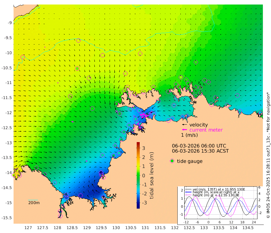 119cm/s -101T +4cm/s rms + 6cm/s 51T. Darwin_C1 52m 94cm/s -92T +4cm/s rms + 7cm/s -161T. Darwin_CW1 22m 67cm/s -106T +4cm/s rms + 8cm/s 61T. Darwin_CW2 34m 81cm/s -135T +3cm/s rms + 9cm/s 98T. Darwin_CW3 22m 133cm/s -91T +5cm/s rms + 7cm/s 88T. Darwin_C3 56m 53cm/s -116T +2cm/s rms + 9cm/s -126T. Darwin_CTbW 22m 6cm/s 160T +9cm/s rms + 2cm/s -110T. NWSLYN 196m 26cm/s 111T +1cm/s rms + 1cm/s -47T. DARBGF 30m 12cm/s 84T +7cm/s rms + 2cm/s -137T. ITFTIS 464m 17cm/s 121T +9cm/s rms + 1cm/s 74T. ITFMHB 146m 27cm/s 112T +4cm/s rms + 1cm/s -134T. ITFJBG 61m 40cm/s 114T +6cm/s rms + 4cm/s 121T. ITFFTB 108m 36cm/s 140T +4cm/s rms + 3cm/s 80T. NRSDAR 19m 80cm Carronade Island 76cm Guy Point 79cm Napier Broome Bay -17cm Lesueur Island -151cm Reveley Island -66cm Rocky Island -250cm Cape Domett -214cm Lacrosse Island -279cm Adolphus Island -274cm Pender Point -265cm Wyndham 52cm The Boxers 37cm Unnamed Shoal 103cm Loxton Shoal -270cm Pelican Island 75cm Calder Shoal 85cm Evans Shoal -375cm Quoin Island -211cm Port Keats -223cm Jones Point -333cm Catfish Island -119cm Cape Scott Offshore -79cm Cape Ford -134cm Anson Bay 75cm Goodrich Bank -109cm Peron Island North -86cm Point Jenny -84cm Native Point -106cm Fish Reef -121cm Tapa Bay 6cm Point Fawcett (Offshore) -137cm Burge Point -113cm Munkunuwa -44cm Beagle A -152cm Parsons Bank -118cm Fenton Patches 73cm Lynedoch Bank -156cm Hancox Shoal Area -145cm Nightcliff -179cm Darwin -140cm Charles Point Patches -155cm Glyde Point -174cm Chambers Bay -188cm Point Stuart -151cm Cape Hotham -146cm Christine Reef -209cm West Alligator Head -214cm East Field Island -141cm Two Hills Bay 16cm Newby Shoal -130cm Camp Point -121cm Medina Inlet South 22cm South Barlow Point 49cm St. Asaph Bay 74cm Cape Van Dieman 66cm Snake Bay 67cm Cache Point 119cm Echo Shoal 36cm Point Jahleel (Off) -33cm Cape Don 20cm Port Essington 26cm Smith Point - West 25cm NW Peacock Island 46cm North Of Jones Shoal 13cm Peacock Island -18cm Point David 20cm D'urville Point 24cm Money Shoal -23cm Copeland Island -27cm Cape Cockburn -13cm One Tree Point -39cm Hogmany Shoal -11cm New Year Island - West -22cm Grant Island -51cm Aurari Bay -83cm Cuthbert Point -51cm North Goulburn Island -107cm Paxie Shoal -132cm Entrance Island -175cm Yabooma Island