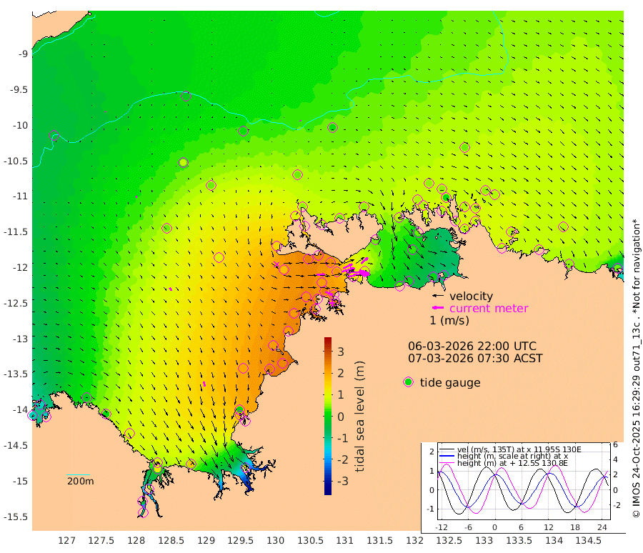 179cm/s 78T +4cm/s rms + 6cm/s 51T. Darwin_C1 52m 138cm/s 90T +4cm/s rms + 7cm/s -161T. Darwin_CW1 22m 118cm/s 74T +4cm/s rms + 8cm/s 61T. Darwin_CW2 34m 79cm/s 49T +3cm/s rms + 9cm/s 98T. Darwin_CW3 22m 171cm/s 88T +5cm/s rms + 7cm/s 88T. Darwin_C3 56m 91cm/s 65T +2cm/s rms + 9cm/s -126T. Darwin_CTbW 22m 6cm/s 131T +9cm/s rms + 2cm/s -110T. NWSLYN 196m 74cm/s 88T +1cm/s rms + 1cm/s -47T. DARBGF 30m 1cm/s 0T +7cm/s rms + 2cm/s -137T. ITFTIS 464m 13cm/s -176T +9cm/s rms + 1cm/s 74T. ITFMHB 146m 40cm/s 168T +4cm/s rms + 1cm/s -134T. ITFJBG 61m 28cm/s 147T +6cm/s rms + 4cm/s 121T. ITFFTB 108m 71cm/s 115T +4cm/s rms + 3cm/s 80T. NRSDAR 19m -133cm Carronade Island -132cm Guy Point -141cm Napier Broome Bay -16cm Lesueur Island 87cm Reveley Island 10cm Rocky Island 113cm Cape Domett 106cm Lacrosse Island 66cm Adolphus Island -49cm Pender Point -105cm Wyndham 42cm The Boxers 73cm Unnamed Shoal -12cm Loxton Shoal 162cm Pelican Island 44cm Calder Shoal 15cm Evans Shoal 79cm Quoin Island 202cm Port Keats 197cm Jones Point 0cm Catfish Island 200cm Cape Scott Offshore 239cm Cape Ford 235cm Anson Bay 40cm Goodrich Bank 208cm Peron Island North 205cm Point Jenny 206cm Native Point 217cm Fish Reef 233cm Tapa Bay 145cm Point Fawcett (Offshore) 227cm Burge Point 237cm Munkunuwa 176cm Beagle A 233cm Parsons Bank 213cm Fenton Patches 19cm Lynedoch Bank 218cm Hancox Shoal Area 235cm Nightcliff 246cm Darwin 238cm Charles Point Patches 129cm Glyde Point 35cm Chambers Bay 9cm Point Stuart 88cm Cape Hotham 24cm Christine Reef 0cm West Alligator Head -48cm East Field Island 43cm Two Hills Bay 99cm Newby Shoal 44cm Camp Point 232cm Medina Inlet South 131cm South Barlow Point 100cm St. Asaph Bay 50cm Cape Van Dieman 59cm Snake Bay 44cm Cache Point -44cm Echo Shoal 52cm Point Jahleel (Off) 70cm Cape Don 60cm Port Essington 61cm Smith Point - West 53cm NW Peacock Island 48cm North Of Jones Shoal 18cm Peacock Island 62cm Point David 62cm D'urville Point 41cm Money Shoal 60cm Copeland Island 74cm Cape Cockburn 60cm One Tree Point 65cm Hogmany Shoal 53cm New Year Island - West 57cm Grant Island 61cm Aurari Bay 53cm Cuthbert Point 63cm North Goulburn Island 57cm Paxie Shoal 50cm Entrance Island 44cm Yabooma Island