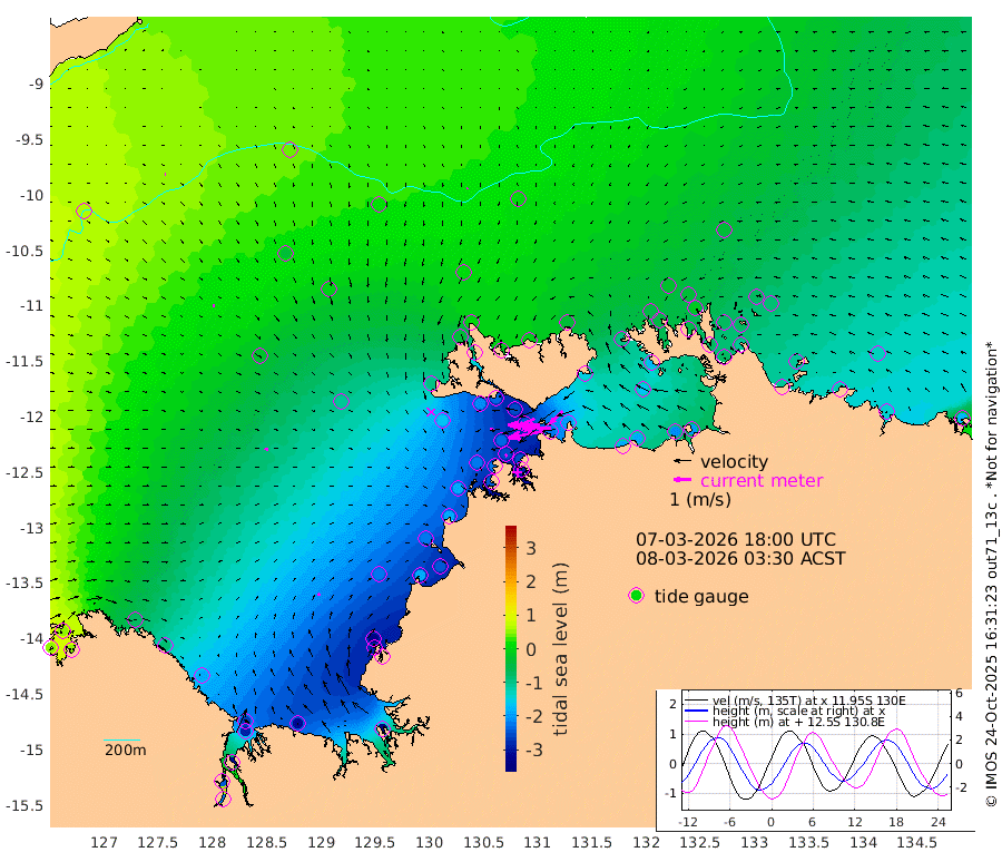 204cm/s -101T +4cm/s rms + 6cm/s 51T. Darwin_C1 52m 165cm/s -91T +4cm/s rms + 7cm/s -161T. Darwin_CW1 22m 106cm/s -105T +4cm/s rms + 8cm/s 61T. Darwin_CW2 34m 102cm/s -136T +3cm/s rms + 9cm/s 98T. Darwin_CW3 22m 186cm/s -91T +5cm/s rms + 7cm/s 88T. Darwin_C3 56m 111cm/s -115T +2cm/s rms + 9cm/s -126T. Darwin_CTbW 22m 8cm/s -175T +9cm/s rms + 2cm/s -110T. NWSLYN 196m 20cm/s -114T +1cm/s rms + 1cm/s -47T. DARBGF 30m 9cm/s 94T +7cm/s rms + 2cm/s -137T. ITFTIS 464m 10cm/s 103T +9cm/s rms + 1cm/s 74T. ITFMHB 146m 15cm/s 65T +4cm/s rms + 1cm/s -134T. ITFJBG 61m 21cm/s 105T +6cm/s rms + 4cm/s 121T. ITFFTB 108m 12cm/s -125T +4cm/s rms + 3cm/s 80T. NRSDAR 19m 51cm Carronade Island 51cm Guy Point 51cm Napier Broome Bay -78cm Lesueur Island -189cm Reveley Island -90cm Rocky Island -292cm Cape Domett -264cm Lacrosse Island -312cm Adolphus Island -238cm Pender Point -225cm Wyndham -26cm The Boxers -42cm Unnamed Shoal 38cm Loxton Shoal -314cm Pelican Island -11cm Calder Shoal 19cm Evans Shoal -387cm Quoin Island -296cm Port Keats -283cm Jones Point -333cm Catfish Island -214cm Cape Scott Offshore -184cm Cape Ford -237cm Anson Bay 4cm Goodrich Bank -217cm Peron Island North -190cm Point Jenny -186cm Native Point -216cm Fish Reef -222cm Tapa Bay -98cm Point Fawcett (Offshore) -244cm Burge Point -208cm Munkunuwa -160cm Beagle A -249cm Parsons Bank -229cm Fenton Patches 9cm Lynedoch Bank -246cm Hancox Shoal Area -257cm Nightcliff -282cm Darwin -249cm Charles Point Patches -216cm Glyde Point -189cm Chambers Bay -190cm Point Stuart -196cm Cape Hotham -169cm Christine Reef -204cm West Alligator Head -193cm East Field Island -171cm Two Hills Bay -105cm Newby Shoal -157cm Camp Point -228cm Medina Inlet South -79cm South Barlow Point -44cm St. Asaph Bay 1cm Cape Van Dieman -13cm Snake Bay -9cm Cache Point 63cm Echo Shoal -34cm Point Jahleel (Off) -96cm Cape Don -47cm Port Essington -47cm Smith Point - West -44cm NW Peacock Island -30cm North Of Jones Shoal -13cm Peacock Island -70cm Point David -51cm D'urville Point -38cm Money Shoal -74cm Copeland Island -104cm Cape Cockburn -73cm One Tree Point -89cm Hogmany Shoal -71cm New Year Island - West -77cm Grant Island -102cm Aurari Bay -121cm Cuthbert Point -102cm North Goulburn Island -131cm Paxie Shoal -146cm Entrance Island -174cm Yabooma Island