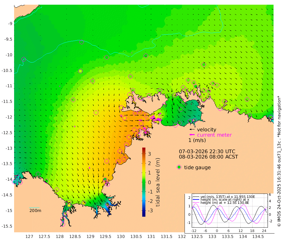 164cm/s 78T +4cm/s rms + 6cm/s 51T. Darwin_C1 52m 127cm/s 90T +4cm/s rms + 7cm/s -161T. Darwin_CW1 22m 111cm/s 74T +4cm/s rms + 8cm/s 61T. Darwin_CW2 34m 70cm/s 50T +3cm/s rms + 9cm/s 98T. Darwin_CW3 22m 160cm/s 88T +5cm/s rms + 7cm/s 88T. Darwin_C3 56m 86cm/s 65T +2cm/s rms + 9cm/s -126T. Darwin_CTbW 22m 5cm/s 133T +9cm/s rms + 2cm/s -110T. NWSLYN 196m 67cm/s 88T +1cm/s rms + 1cm/s -47T. DARBGF 30m 0cm/s -143T +7cm/s rms + 2cm/s -137T. ITFTIS 464m 14cm/s -174T +9cm/s rms + 1cm/s 74T. ITFMHB 146m 37cm/s 170T +4cm/s rms + 1cm/s -134T. ITFJBG 61m 26cm/s 150T +6cm/s rms + 4cm/s 121T. ITFFTB 108m 65cm/s 114T +4cm/s rms + 3cm/s 80T. NRSDAR 19m -130cm Carronade Island -127cm Guy Point -137cm Napier Broome Bay -22cm Lesueur Island 76cm Reveley Island 15cm Rocky Island 99cm Cape Domett 90cm Lacrosse Island 59cm Adolphus Island -49cm Pender Point -102cm Wyndham 34cm The Boxers 59cm Unnamed Shoal -11cm Loxton Shoal 144cm Pelican Island 37cm Calder Shoal 13cm Evans Shoal 69cm Quoin Island 180cm Port Keats 171cm Jones Point -21cm Catfish Island 178cm Cape Scott Offshore 206cm Cape Ford 209cm Anson Bay 35cm Goodrich Bank 183cm Peron Island North 182cm Point Jenny 183cm Native Point 189cm Fish Reef 208cm Tapa Bay 126cm Point Fawcett (Offshore) 199cm Burge Point 214cm Munkunuwa 155cm Beagle A 208cm Parsons Bank 189cm Fenton Patches 16cm Lynedoch Bank 195cm Hancox Shoal Area 210cm Nightcliff 218cm Darwin 211cm Charles Point Patches 109cm Glyde Point 22cm Chambers Bay -4cm Point Stuart 70cm Cape Hotham 14cm Christine Reef -13cm West Alligator Head -58cm East Field Island 29cm Two Hills Bay 84cm Newby Shoal 31cm Camp Point 206cm Medina Inlet South 117cm South Barlow Point 89cm St. Asaph Bay 44cm Cape Van Dieman 52cm Snake Bay 37cm Cache Point -41cm Echo Shoal 44cm Point Jahleel (Off) 57cm Cape Don 49cm Port Essington 52cm Smith Point - West 43cm NW Peacock Island 39cm North Of Jones Shoal 15cm Peacock Island 49cm Point David 51cm D'urville Point 31cm Money Shoal 47cm Copeland Island 55cm Cape Cockburn 47cm One Tree Point 49cm Hogmany Shoal 40cm New Year Island - West 44cm Grant Island 46cm Aurari Bay 37cm Cuthbert Point 47cm North Goulburn Island 39cm Paxie Shoal 33cm Entrance Island 24cm Yabooma Island