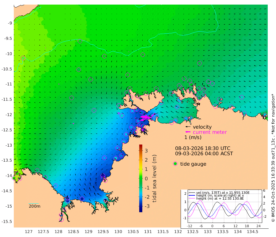 193cm/s -101T +4cm/s rms + 6cm/s 51T. Darwin_C1 52m 156cm/s -91T +4cm/s rms + 7cm/s -161T. Darwin_CW1 22m 100cm/s -105T +4cm/s rms + 8cm/s 61T. Darwin_CW2 34m 95cm/s -136T +3cm/s rms + 9cm/s 98T. Darwin_CW3 22m 176cm/s -91T +5cm/s rms + 7cm/s 88T. Darwin_C3 56m 108cm/s -115T +2cm/s rms + 9cm/s -126T. Darwin_CTbW 22m 7cm/s -166T +9cm/s rms + 2cm/s -110T. NWSLYN 196m 18cm/s -114T +1cm/s rms + 1cm/s -47T. DARBGF 30m 8cm/s 97T +7cm/s rms + 2cm/s -137T. ITFTIS 464m 9cm/s 105T +9cm/s rms + 1cm/s 74T. ITFMHB 146m 13cm/s 76T +4cm/s rms + 1cm/s -134T. ITFJBG 61m 19cm/s 107T +6cm/s rms + 4cm/s 121T. ITFFTB 108m 11cm/s -132T +4cm/s rms + 3cm/s 80T. NRSDAR 19m 29cm Carronade Island 27cm Guy Point 27cm Napier Broome Bay -86cm Lesueur Island -179cm Reveley Island -84cm Rocky Island -272cm Cape Domett -248cm Lacrosse Island -291cm Adolphus Island -229cm Pender Point -221cm Wyndham -34cm The Boxers -49cm Unnamed Shoal 22cm Loxton Shoal -290cm Pelican Island -20cm Calder Shoal 8cm Evans Shoal -364cm Quoin Island -270cm Port Keats -256cm Jones Point -323cm Catfish Island -200cm Cape Scott Offshore -151cm Cape Ford -220cm Anson Bay -4cm Goodrich Bank -199cm Peron Island North -173cm Point Jenny -169cm Native Point -194cm Fish Reef -203cm Tapa Bay -94cm Point Fawcett (Offshore) -217cm Burge Point -187cm Munkunuwa -143cm Beagle A -224cm Parsons Bank -204cm Fenton Patches 0cm Lynedoch Bank -224cm Hancox Shoal Area -235cm Nightcliff -255cm Darwin -226cm Charles Point Patches -198cm Glyde Point -176cm Chambers Bay -176cm Point Stuart -181cm Cape Hotham -158cm Christine Reef -190cm West Alligator Head -180cm East Field Island -160cm Two Hills Bay -101cm Newby Shoal -147cm Camp Point -207cm Medina Inlet South -76cm South Barlow Point -45cm St. Asaph Bay -6cm Cape Van Dieman -20cm Snake Bay -16cm Cache Point 44cm Echo Shoal -38cm Point Jahleel (Off) -93cm Cape Don -49cm Port Essington -49cm Smith Point - West -46cm NW Peacock Island -36cm North Of Jones Shoal -15cm Peacock Island -70cm Point David -52cm D'urville Point -41cm Money Shoal -73cm Copeland Island -101cm Cape Cockburn -73cm One Tree Point -89cm Hogmany Shoal -72cm New Year Island - West -77cm Grant Island -98cm Aurari Bay -114cm Cuthbert Point -98cm North Goulburn Island -125cm Paxie Shoal -135cm Entrance Island -159cm Yabooma Island