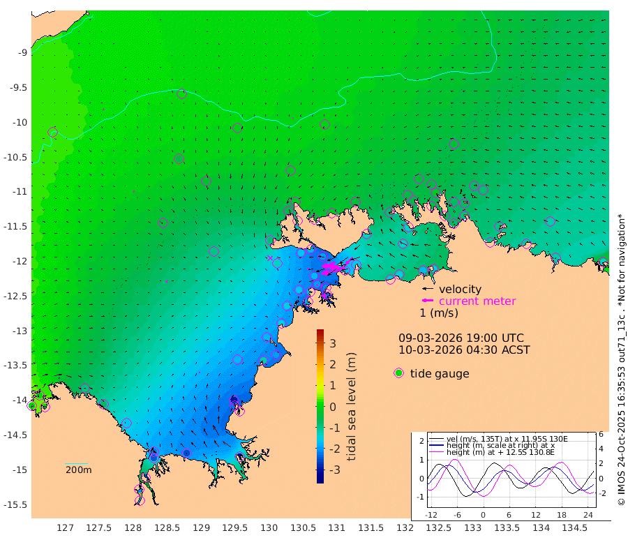 178cm/s -101T +4cm/s rms + 6cm/s 51T. Darwin_C1 52m 141cm/s -91T +4cm/s rms + 7cm/s -161T. Darwin_CW1 22m 89cm/s -105T +4cm/s rms + 8cm/s 61T. Darwin_CW2 34m 87cm/s -135T +3cm/s rms + 9cm/s 98T. Darwin_CW3 22m 157cm/s -90T +5cm/s rms + 7cm/s 88T. Darwin_C3 56m 103cm/s -115T +2cm/s rms + 9cm/s -126T. Darwin_CTbW 22m 6cm/s -155T +9cm/s rms + 2cm/s -110T. NWSLYN 196m 16cm/s -114T +1cm/s rms + 1cm/s -47T. DARBGF 30m 6cm/s 102T +7cm/s rms + 2cm/s -137T. ITFTIS 464m 7cm/s 104T +9cm/s rms + 1cm/s 74T. ITFMHB 146m 11cm/s 86T +4cm/s rms + 1cm/s -134T. ITFJBG 61m 17cm/s 109T +6cm/s rms + 4cm/s 121T. ITFFTB 108m 10cm/s -137T +4cm/s rms + 3cm/s 80T. NRSDAR 19m 7cm Carronade Island 3cm Guy Point 2cm Napier Broome Bay -91cm Lesueur Island -164cm Reveley Island -77cm Rocky Island -243cm Cape Domett -224cm Lacrosse Island -260cm Adolphus Island -212cm Pender Point -208cm Wyndham -41cm The Boxers -55cm Unnamed Shoal 7cm Loxton Shoal -257cm Pelican Island -28cm Calder Shoal -2cm Evans Shoal -326cm Quoin Island -236cm Port Keats -221cm Jones Point -296cm Catfish Island -179cm Cape Scott Offshore -117cm Cape Ford -196cm Anson Bay -11cm Goodrich Bank -175cm Peron Island North -152cm Point Jenny -149cm Native Point -166cm Fish Reef -179cm Tapa Bay -87cm Point Fawcett (Offshore) -186cm Burge Point -160cm Munkunuwa -125cm Beagle A -193cm Parsons Bank -175cm Fenton Patches -9cm Lynedoch Bank -197cm Hancox Shoal Area -206cm Nightcliff -221cm Darwin -197cm Charles Point Patches -174cm Glyde Point -158cm Chambers Bay -157cm Point Stuart -159cm Cape Hotham -143cm Christine Reef -169cm West Alligator Head -161cm East Field Island -144cm Two Hills Bay -94cm Newby Shoal -132cm Camp Point -180cm Medina Inlet South -71cm South Barlow Point -46cm St. Asaph Bay -13cm Cape Van Dieman -27cm Snake Bay -21cm Cache Point 25cm Echo Shoal -41cm Point Jahleel (Off) -86cm Cape Don -48cm Port Essington -49cm Smith Point - West -47cm NW Peacock Island -39cm North Of Jones Shoal -15cm Peacock Island -68cm Point David -51cm D'urville Point -42cm Money Shoal -69cm Copeland Island -94cm Cape Cockburn -70cm One Tree Point -86cm Hogmany Shoal -70cm New Year Island - West -74cm Grant Island -90cm Aurari Bay -103cm Cuthbert Point -91cm North Goulburn Island -115cm Paxie Shoal -120cm Entrance Island -137cm Yabooma Island