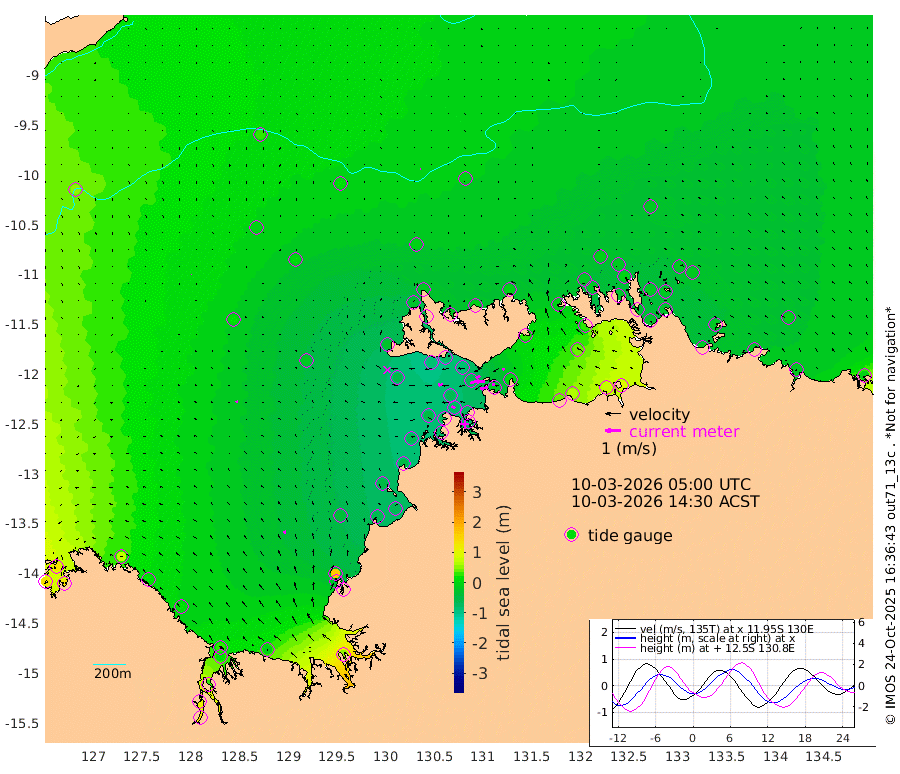 52cm/s -104T +4cm/s rms + 6cm/s 51T. Darwin_C1 52m 20cm/s -90T +4cm/s rms + 7cm/s -161T. Darwin_CW1 22m 54cm/s -110T +4cm/s rms + 8cm/s 61T. Darwin_CW2 34m 16cm/s -104T +3cm/s rms + 9cm/s 98T. Darwin_CW3 22m 55cm/s -93T +5cm/s rms + 7cm/s 88T. Darwin_C3 56m 31cm/s -118T +2cm/s rms + 9cm/s -126T. Darwin_CTbW 22m 1cm/s 93T +9cm/s rms + 2cm/s -110T. NWSLYN 196m 30cm/s -92T +1cm/s rms + 1cm/s -47T. DARBGF 30m 0cm/s 142T +7cm/s rms + 2cm/s -137T. ITFTIS 464m 2cm/s 38T +9cm/s rms + 1cm/s 74T. ITFMHB 146m 21cm/s -17T +4cm/s rms + 1cm/s -134T. ITFJBG 61m 13cm/s -31T +6cm/s rms + 4cm/s 121T. ITFFTB 108m 26cm/s -66T +4cm/s rms + 3cm/s 80T. NRSDAR 19m 126cm Carronade Island 128cm Guy Point 130cm Napier Broome Bay 78cm Lesueur Island 20cm Reveley Island 12cm Rocky Island 19cm Cape Domett 31cm Lacrosse Island 33cm Adolphus Island 104cm Pender Point 140cm Wyndham 13cm The Boxers -7cm Unnamed Shoal 26cm Loxton Shoal -5cm Pelican Island 7cm Calder Shoal 12cm Evans Shoal 54cm Quoin Island -41cm Port Keats -34cm Jones Point 163cm Catfish Island -40cm Cape Scott Offshore -63cm Cape Ford -61cm Anson Bay -8cm Goodrich Bank -51cm Peron Island North -56cm Point Jenny -59cm Native Point -56cm Fish Reef -66cm Tapa Bay -29cm Point Fawcett (Offshore) -69cm Burge Point -81cm Munkunuwa -47cm Beagle A -81cm Parsons Bank -63cm Fenton Patches 0cm Lynedoch Bank -67cm Hancox Shoal Area -71cm Nightcliff -77cm Darwin -72cm Charles Point Patches -15cm Glyde Point 42cm Chambers Bay 60cm Point Stuart 9cm Cape Hotham 37cm Christine Reef 72cm West Alligator Head 99cm East Field Island 32cm Two Hills Bay -15cm Newby Shoal 23cm Camp Point -71cm Medina Inlet South -47cm South Barlow Point -25cm St. Asaph Bay -12cm Cape Van Dieman -19cm Snake Bay -2cm Cache Point 49cm Echo Shoal -6cm Point Jahleel (Off) -9cm Cape Don -17cm Port Essington -18cm Smith Point - West -17cm NW Peacock Island -8cm North Of Jones Shoal -4cm Peacock Island -24cm Point David -23cm D'urville Point -14cm Money Shoal -24cm Copeland Island -25cm Cape Cockburn -20cm One Tree Point -14cm Hogmany Shoal -17cm New Year Island - West -21cm Grant Island -20cm Aurari Bay -18cm Cuthbert Point -21cm North Goulburn Island -10cm Paxie Shoal -17cm Entrance Island -10cm Yabooma Island