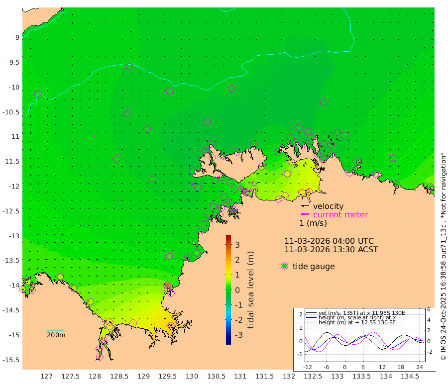 51cm/s 79T +4cm/s rms + 6cm/s 51T. Darwin_C1 52m 53cm/s 90T +4cm/s rms + 7cm/s -161T. Darwin_CW1 22m 10cm/s 73T +4cm/s rms + 8cm/s 61T. Darwin_CW2 34m 30cm/s 47T +3cm/s rms + 9cm/s 98T. Darwin_CW3 22m 30cm/s 92T +5cm/s rms + 7cm/s 88T. Darwin_C3 56m 30cm/s 67T +2cm/s rms + 9cm/s -126T. Darwin_CTbW 22m 1cm/s -13T +9cm/s rms + 2cm/s -110T. NWSLYN 196m 17cm/s -81T +1cm/s rms + 1cm/s -47T. DARBGF 30m 5cm/s -141T +7cm/s rms + 2cm/s -137T. ITFTIS 464m 6cm/s -139T +9cm/s rms + 1cm/s 74T. ITFMHB 146m 14cm/s -34T +4cm/s rms + 1cm/s -134T. ITFJBG 61m 12cm/s -62T +6cm/s rms + 4cm/s 121T. ITFFTB 108m 26cm/s -53T +4cm/s rms + 3cm/s 80T. NRSDAR 19m 74cm Carronade Island 77cm Guy Point 78cm Napier Broome Bay 72cm Lesueur Island 67cm Reveley Island 49cm Rocky Island 96cm Cape Domett 97cm Lacrosse Island 117cm Adolphus Island 148cm Pender Point 173cm Wyndham 10cm The Boxers -6cm Unnamed Shoal -1cm Loxton Shoal 92cm Pelican Island -3cm Calder Shoal -5cm Evans Shoal 164cm Quoin Island 50cm Port Keats 49cm Jones Point 266cm Catfish Island 32cm Cape Scott Offshore -40cm Cape Ford 23cm Anson Bay -17cm Goodrich Bank 16cm Peron Island North 9cm Point Jenny 5cm Native Point 12cm Fish Reef 11cm Tapa Bay -1cm Point Fawcett (Offshore) 3cm Burge Point -8cm Munkunuwa 1cm Beagle A 1cm Parsons Bank 9cm Fenton Patches -13cm Lynedoch Bank 17cm Hancox Shoal Area 17cm Nightcliff 14cm Darwin 8cm Charles Point Patches 45cm Glyde Point 88cm Chambers Bay 99cm Point Stuart 56cm Cape Hotham 78cm Christine Reef 114cm West Alligator Head 131cm East Field Island 70cm Two Hills Bay 5cm Newby Shoal 57cm Camp Point 4cm Medina Inlet South -23cm South Barlow Point -15cm St. Asaph Bay -20cm Cape Van Dieman -23cm Snake Bay -10cm Cache Point 12cm Echo Shoal -4cm Point Jahleel (Off) 14cm Cape Don -10cm Port Essington -8cm Smith Point - West -10cm NW Peacock Island -7cm North Of Jones Shoal -3cm Peacock Island -10cm Point David -12cm D'urville Point -13cm Money Shoal -8cm Copeland Island -7cm Cape Cockburn -6cm One Tree Point 1cm Hogmany Shoal -4cm New Year Island - West -6cm Grant Island 5cm Aurari Bay 14cm Cuthbert Point 1cm North Goulburn Island 20cm Paxie Shoal 19cm Entrance Island 31cm Yabooma Island