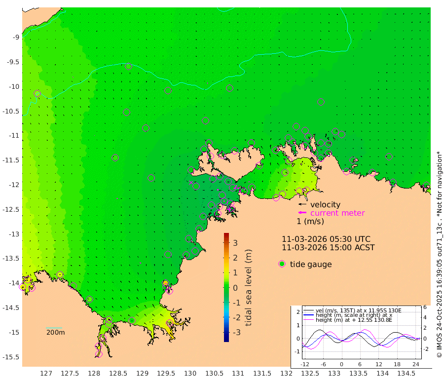 23cm/s -105T +4cm/s rms + 6cm/s 51T. Darwin_C1 52m 9cm/s 94T +4cm/s rms + 7cm/s -161T. Darwin_CW1 22m 31cm/s -112T +4cm/s rms + 8cm/s 61T. Darwin_CW2 34m 7cm/s -57T +3cm/s rms + 9cm/s 98T. Darwin_CW3 22m 24cm/s -96T +5cm/s rms + 7cm/s 88T. Darwin_C3 56m 15cm/s -121T +2cm/s rms + 9cm/s -126T. Darwin_CTbW 22m 2cm/s 101T +9cm/s rms + 2cm/s -110T. NWSLYN 196m 16cm/s -91T +1cm/s rms + 1cm/s -47T. DARBGF 30m 1cm/s 53T +7cm/s rms + 2cm/s -137T. ITFTIS 464m 2cm/s 92T +9cm/s rms + 1cm/s 74T. ITFMHB 146m 13cm/s -13T +4cm/s rms + 1cm/s -134T. ITFJBG 61m 7cm/s -17T +6cm/s rms + 4cm/s 121T. ITFFTB 108m 14cm/s -69T +4cm/s rms + 3cm/s 80T. NRSDAR 19m 112cm Carronade Island 113cm Guy Point 117cm Napier Broome Bay 83cm Lesueur Island 34cm Reveley Island 26cm Rocky Island 40cm Cape Domett 50cm Lacrosse Island 47cm Adolphus Island 98cm Pender Point 124cm Wyndham 29cm The Boxers 12cm Unnamed Shoal 31cm Loxton Shoal 22cm Pelican Island 22cm Calder Shoal 19cm Evans Shoal 65cm Quoin Island -4cm Port Keats 2cm Jones Point 168cm Catfish Island -4cm Cape Scott Offshore -17cm Cape Ford -19cm Anson Bay 5cm Goodrich Bank -15cm Peron Island North -16cm Point Jenny -19cm Native Point -15cm Fish Reef -24cm Tapa Bay 1cm Point Fawcett (Offshore) -28cm Burge Point -40cm Munkunuwa -9cm Beagle A -43cm Parsons Bank -21cm Fenton Patches 8cm Lynedoch Bank -30cm Hancox Shoal Area -30cm Nightcliff -33cm Darwin -27cm Charles Point Patches 8cm Glyde Point 48cm Chambers Bay 59cm Point Stuart 22cm Cape Hotham 41cm Christine Reef 69cm West Alligator Head 89cm East Field Island 37cm Two Hills Bay 12cm Newby Shoal 32cm Camp Point -29cm Medina Inlet South -20cm South Barlow Point -2cm St. Asaph Bay 1cm Cape Van Dieman -5cm Snake Bay 10cm Cache Point 50cm Echo Shoal 6cm Point Jahleel (Off) 4cm Cape Don -5cm Port Essington -6cm Smith Point - West -7cm NW Peacock Island 1cm North Of Jones Shoal -1cm Peacock Island -17cm Point David -12cm D'urville Point -6cm Money Shoal -17cm Copeland Island -18cm Cape Cockburn -12cm One Tree Point -9cm Hogmany Shoal -9cm New Year Island - West -14cm Grant Island -13cm Aurari Bay -14cm Cuthbert Point -15cm North Goulburn Island -8cm Paxie Shoal -17cm Entrance Island -16cm Yabooma Island