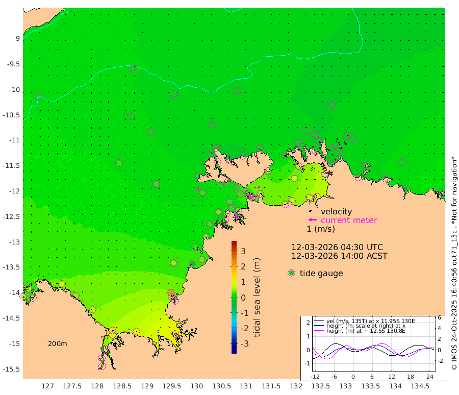 67cm/s 78T +4cm/s rms + 6cm/s 51T. Darwin_C1 52m 62cm/s 91T +4cm/s rms + 7cm/s -161T. Darwin_CW1 22m 20cm/s 73T +4cm/s rms + 8cm/s 61T. Darwin_CW2 34m 35cm/s 48T +3cm/s rms + 9cm/s 98T. Darwin_CW3 22m 37cm/s 91T +5cm/s rms + 7cm/s 88T. Darwin_C3 56m 42cm/s 66T +2cm/s rms + 9cm/s -126T. Darwin_CTbW 22m 0cm/s 23T +9cm/s rms + 2cm/s -110T. NWSLYN 196m 3cm/s -44T +1cm/s rms + 1cm/s -47T. DARBGF 30m 3cm/s -159T +7cm/s rms + 2cm/s -137T. ITFTIS 464m 7cm/s -168T +9cm/s rms + 1cm/s 74T. ITFMHB 146m 4cm/s -37T +4cm/s rms + 1cm/s -134T. ITFJBG 61m 3cm/s -96T +6cm/s rms + 4cm/s 121T. ITFFTB 108m 9cm/s -43T +4cm/s rms + 3cm/s 80T. NRSDAR 19m 67cm Carronade Island 69cm Guy Point 72cm Napier Broome Bay 69cm Lesueur Island 62cm Reveley Island 54cm Rocky Island 86cm Cape Domett 88cm Lacrosse Island 98cm Adolphus Island 111cm Pender Point 128cm Wyndham 26cm The Boxers 10cm Unnamed Shoal 10cm Loxton Shoal 85cm Pelican Island 14cm Calder Shoal 6cm Evans Shoal 129cm Quoin Island 59cm Port Keats 54cm Jones Point 223cm Catfish Island 48cm Cape Scott Offshore -12cm Cape Ford 44cm Anson Bay -2cm Goodrich Bank 33cm Peron Island North 34cm Point Jenny 31cm Native Point 34cm Fish Reef 34cm Tapa Bay 21cm Point Fawcett (Offshore) 26cm Burge Point 15cm Munkunuwa 29cm Beagle A 20cm Parsons Bank 34cm Fenton Patches -1cm Lynedoch Bank 33cm Hancox Shoal Area 39cm Nightcliff 31cm Darwin 30cm Charles Point Patches 47cm Glyde Point 74cm Chambers Bay 76cm Point Stuart 50cm Cape Hotham 68cm Christine Reef 87cm West Alligator Head 97cm East Field Island 58cm Two Hills Bay 30cm Newby Shoal 50cm Camp Point 27cm Medina Inlet South 1cm South Barlow Point 7cm St. Asaph Bay -4cm Cape Van Dieman -7cm Snake Bay 5cm Cache Point 20cm Echo Shoal 8cm Point Jahleel (Off) 20cm Cape Don 0cm Port Essington 4cm Smith Point - West -1cm NW Peacock Island 3cm North Of Jones Shoal 0cm Peacock Island -7cm Point David -2cm D'urville Point -5cm Money Shoal -6cm Copeland Island -5cm Cape Cockburn -3cm One Tree Point -1cm Hogmany Shoal 0cm New Year Island - West -4cm Grant Island 5cm Aurari Bay 9cm Cuthbert Point 0cm North Goulburn Island 11cm Paxie Shoal 7cm Entrance Island 10cm Yabooma Island