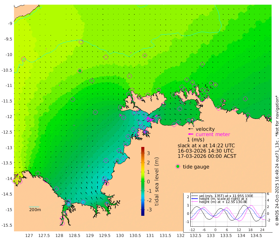 97cm/s -101T +4cm/s rms + 6cm/s 51T. Darwin_C1 52m 89cm/s -91T +4cm/s rms + 7cm/s -161T. Darwin_CW1 22m 60cm/s -107T +4cm/s rms + 8cm/s 61T. Darwin_CW2 34m 51cm/s -137T +3cm/s rms + 9cm/s 98T. Darwin_CW3 22m 86cm/s -91T +5cm/s rms + 7cm/s 88T. Darwin_C3 56m 54cm/s -115T +2cm/s rms + 9cm/s -126T. Darwin_CTbW 22m 9cm/s 155T +9cm/s rms + 2cm/s -110T. NWSLYN 196m 18cm/s -101T +1cm/s rms + 1cm/s -47T. DARBGF 30m 4cm/s 56T +7cm/s rms + 2cm/s -137T. ITFTIS 464m 6cm/s 53T +9cm/s rms + 1cm/s 74T. ITFMHB 146m 14cm/s 8T +4cm/s rms + 1cm/s -134T. ITFJBG 61m 7cm/s 53T +6cm/s rms + 4cm/s 121T. ITFFTB 108m 16cm/s -77T +4cm/s rms + 3cm/s 80T. NRSDAR 19m 72cm Carronade Island 75cm Guy Point 78cm Napier Broome Bay -5cm Lesueur Island -79cm Reveley Island -36cm Rocky Island -135cm Cape Domett -127cm Lacrosse Island -140cm Adolphus Island -85cm Pender Point -71cm Wyndham 19cm The Boxers 10cm Unnamed Shoal 60cm Loxton Shoal -151cm Pelican Island 24cm Calder Shoal 48cm Evans Shoal -178cm Quoin Island -155cm Port Keats -145cm Jones Point -132cm Catfish Island -106cm Cape Scott Offshore -79cm Cape Ford -124cm Anson Bay 36cm Goodrich Bank -99cm Peron Island North -97cm Point Jenny -96cm Native Point -112cm Fish Reef -115cm Tapa Bay -31cm Point Fawcett (Offshore) -131cm Burge Point -114cm Munkunuwa -86cm Beagle A -122cm Parsons Bank -130cm Fenton Patches 41cm Lynedoch Bank -123cm Hancox Shoal Area -144cm Nightcliff -141cm Darwin -119cm Charles Point Patches -98cm Glyde Point -80cm Chambers Bay -72cm Point Stuart -83cm Cape Hotham -68cm Christine Reef -80cm West Alligator Head -75cm East Field Island -59cm Two Hills Bay -34cm Newby Shoal -63cm Camp Point -116cm Medina Inlet South -21cm South Barlow Point -1cm St. Asaph Bay 34cm Cape Van Dieman 30cm Snake Bay 33cm Cache Point 67cm Echo Shoal 17cm Point Jahleel (Off) -15cm Cape Don 18cm Port Essington 17cm Smith Point - West 23cm NW Peacock Island 25cm North Of Jones Shoal 8cm Peacock Island 14cm Point David 19cm D'urville Point 26cm Money Shoal 10cm Copeland Island 10cm Cape Cockburn 12cm One Tree Point 26cm Hogmany Shoal 12cm New Year Island - West 14cm Grant Island -9cm Aurari Bay -6cm Cuthbert Point -1cm North Goulburn Island -16cm Paxie Shoal -25cm Entrance Island -43cm Yabooma Island