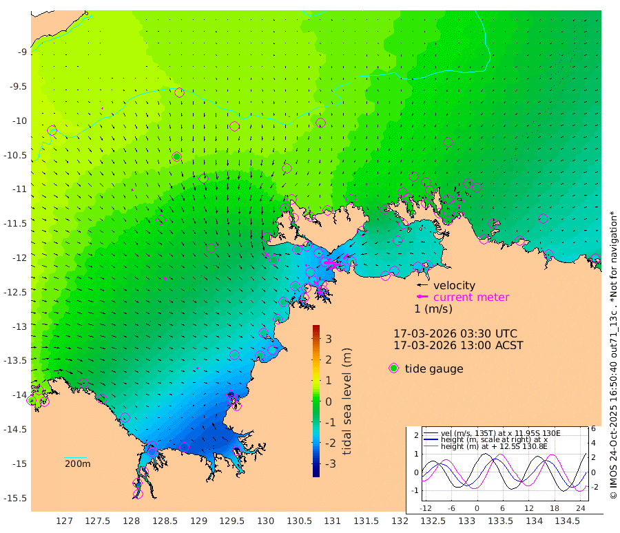 73cm/s -101T +4cm/s rms + 6cm/s 51T. Darwin_C1 52m 78cm/s -93T +4cm/s rms + 7cm/s -161T. Darwin_CW1 22m 50cm/s -105T +4cm/s rms + 8cm/s 61T. Darwin_CW2 34m 62cm/s -139T +3cm/s rms + 9cm/s 98T. Darwin_CW3 22m 96cm/s -91T +5cm/s rms + 7cm/s 88T. Darwin_C3 56m 33cm/s -116T +2cm/s rms + 9cm/s -126T. Darwin_CTbW 22m 5cm/s -164T +9cm/s rms + 2cm/s -110T. NWSLYN 196m 18cm/s 114T +1cm/s rms + 1cm/s -47T. DARBGF 30m 10cm/s 129T +7cm/s rms + 2cm/s -137T. ITFTIS 464m 18cm/s 155T +9cm/s rms + 1cm/s 74T. ITFMHB 146m 19cm/s 120T +4cm/s rms + 1cm/s -134T. ITFJBG 61m 30cm/s 126T +6cm/s rms + 4cm/s 121T. ITFFTB 108m 24cm/s 139T +4cm/s rms + 3cm/s 80T. NRSDAR 19m 39cm Carronade Island 35cm Guy Point 39cm Napier Broome Bay -51cm Lesueur Island -133cm Reveley Island -33cm Rocky Island -220cm Cape Domett -194cm Lacrosse Island -249cm Adolphus Island -234cm Pender Point -231cm Wyndham 12cm The Boxers 2cm Unnamed Shoal 59cm Loxton Shoal -239cm Pelican Island 34cm Calder Shoal 52cm Evans Shoal -319cm Quoin Island -197cm Port Keats -202cm Jones Point -279cm Catfish Island -121cm Cape Scott Offshore -93cm Cape Ford -138cm Anson Bay 36cm Goodrich Bank -105cm Peron Island North -95cm Point Jenny -94cm Native Point -107cm Fish Reef -125cm Tapa Bay -19cm Point Fawcett (Offshore) -135cm Burge Point -101cm Munkunuwa -67cm Beagle A -136cm Parsons Bank -127cm Fenton Patches 35cm Lynedoch Bank -149cm Hancox Shoal Area -147cm Nightcliff -171cm Darwin -149cm Charles Point Patches -145cm Glyde Point -156cm Chambers Bay -152cm Point Stuart -132cm Cape Hotham -130cm Christine Reef -165cm West Alligator Head -174cm East Field Island -117cm Two Hills Bay -21cm Newby Shoal -128cm Camp Point -120cm Medina Inlet South -5cm South Barlow Point 15cm St. Asaph Bay 37cm Cape Van Dieman 31cm Snake Bay 31cm Cache Point 67cm Echo Shoal 10cm Point Jahleel (Off) -42cm Cape Don -3cm Port Essington 4cm Smith Point - West 2cm NW Peacock Island 16cm North Of Jones Shoal 4cm Peacock Island -31cm Point David -1cm D'urville Point -7cm Money Shoal -35cm Copeland Island -39cm Cape Cockburn -27cm One Tree Point -49cm Hogmany Shoal -31cm New Year Island - West -34cm Grant Island -59cm Aurari Bay -80cm Cuthbert Point -57cm North Goulburn Island -105cm Paxie Shoal -119cm Entrance Island -155cm Yabooma Island