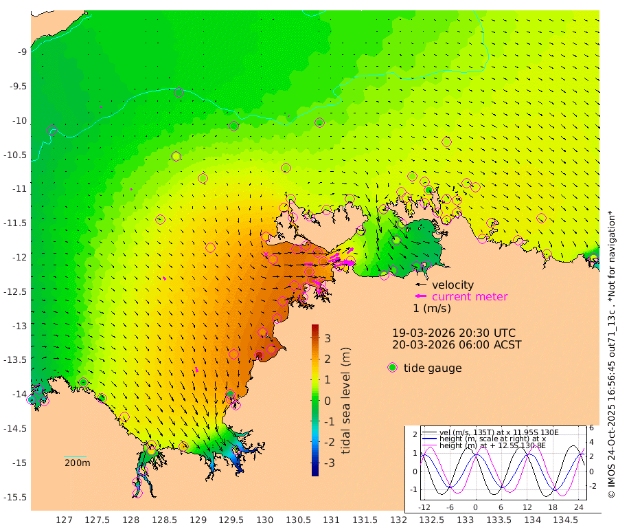 181cm/s 78T +4cm/s rms + 6cm/s 51T. Darwin_C1 52m 132cm/s 88T +4cm/s rms + 7cm/s -161T. Darwin_CW1 22m 111cm/s 74T +4cm/s rms + 8cm/s 61T. Darwin_CW2 34m 77cm/s 49T +3cm/s rms + 9cm/s 98T. Darwin_CW3 22m 147cm/s 88T +5cm/s rms + 7cm/s 88T. Darwin_C3 56m 98cm/s 64T +2cm/s rms + 9cm/s -126T. Darwin_CTbW 22m 7cm/s 128T +9cm/s rms + 2cm/s -110T. NWSLYN 196m 77cm/s 88T +1cm/s rms + 1cm/s -47T. DARBGF 30m 4cm/s 3T +7cm/s rms + 2cm/s -137T. ITFTIS 464m 11cm/s 174T +9cm/s rms + 1cm/s 74T. ITFMHB 146m 45cm/s 164T +4cm/s rms + 1cm/s -134T. ITFJBG 61m 32cm/s 141T +6cm/s rms + 4cm/s 121T. ITFFTB 108m 76cm/s 116T +4cm/s rms + 3cm/s 80T. NRSDAR 19m -111cm Carronade Island -110cm Guy Point -122cm Napier Broome Bay 3cm Lesueur Island 105cm Reveley Island 13cm Rocky Island 129cm Cape Domett 120cm Lacrosse Island 79cm Adolphus Island -50cm Pender Point -106cm Wyndham 59cm The Boxers 87cm Unnamed Shoal -13cm Loxton Shoal 179cm Pelican Island 56cm Calder Shoal 18cm Evans Shoal 55cm Quoin Island 232cm Port Keats 225cm Jones Point -45cm Catfish Island 215cm Cape Scott Offshore 326cm Cape Ford 254cm Anson Bay 53cm Goodrich Bank 228cm Peron Island North 250cm Point Jenny 250cm Native Point 250cm Fish Reef 271cm Tapa Bay 163cm Point Fawcett (Offshore) 274cm Burge Point 263cm Munkunuwa 223cm Beagle A 268cm Parsons Bank 265cm Fenton Patches 25cm Lynedoch Bank 255cm Hancox Shoal Area 271cm Nightcliff 276cm Darwin 271cm Charles Point Patches 157cm Glyde Point 56cm Chambers Bay 25cm Point Stuart 109cm Cape Hotham 56cm Christine Reef 13cm West Alligator Head -34cm East Field Island 57cm Two Hills Bay 142cm Newby Shoal 68cm Camp Point 258cm Medina Inlet South 149cm South Barlow Point 115cm St. Asaph Bay 64cm Cape Van Dieman 67cm Snake Bay 60cm Cache Point -47cm Echo Shoal 66cm Point Jahleel (Off) 89cm Cape Don 75cm Port Essington 80cm Smith Point - West 72cm NW Peacock Island 54cm North Of Jones Shoal 21cm Peacock Island 81cm Point David 82cm D'urville Point 60cm Money Shoal 81cm Copeland Island 99cm Cape Cockburn 74cm One Tree Point 95cm Hogmany Shoal 73cm New Year Island - West 79cm Grant Island 80cm Aurari Bay 84cm Cuthbert Point 86cm North Goulburn Island 79cm Paxie Shoal 87cm Entrance Island 80cm Yabooma Island