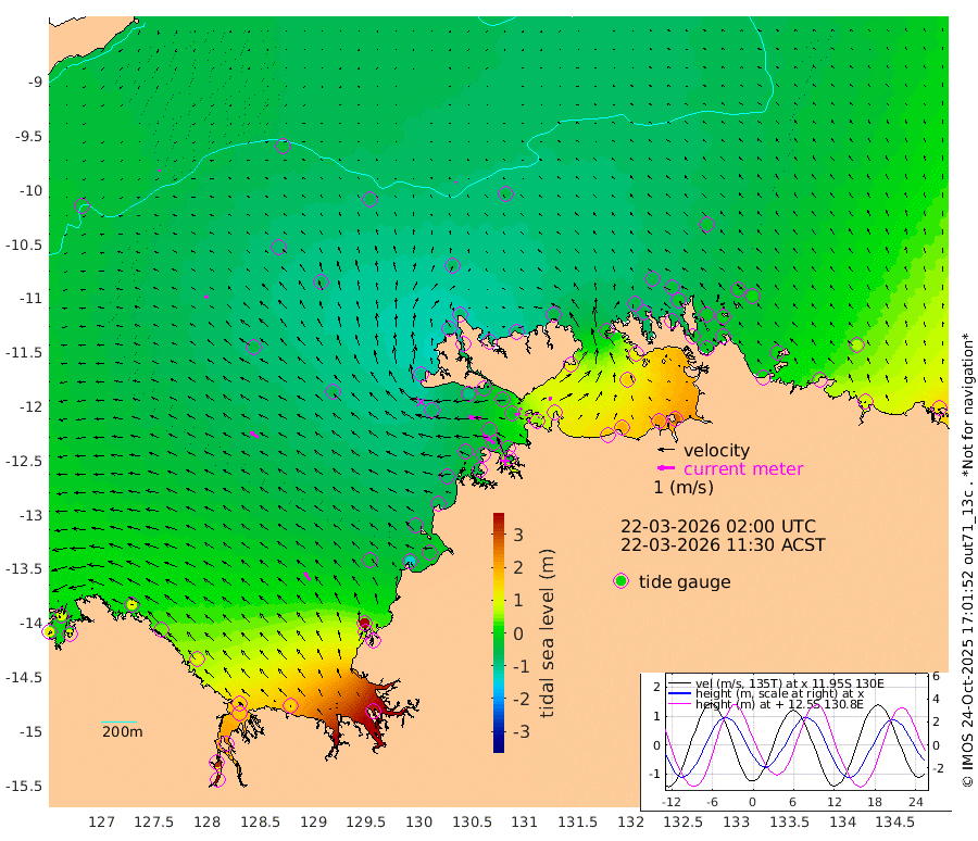11cm/s -110T +4cm/s rms + 6cm/s 51T. Darwin_C1 52m 4cm/s 51T +4cm/s rms + 7cm/s -161T. Darwin_CW1 22m 31cm/s -108T +4cm/s rms + 8cm/s 61T. Darwin_CW2 34m 25cm/s 30T +3cm/s rms + 9cm/s 98T. Darwin_CW3 22m 13cm/s -109T +5cm/s rms + 7cm/s 88T. Darwin_C3 56m 10cm/s -124T +2cm/s rms + 9cm/s -126T. Darwin_CTbW 22m 7cm/s -20T +9cm/s rms + 2cm/s -110T. NWSLYN 196m 77cm/s -86T +1cm/s rms + 1cm/s -47T. DARBGF 30m 11cm/s -108T +7cm/s rms + 2cm/s -137T. ITFTIS 464m 18cm/s -40T +9cm/s rms + 1cm/s 74T. ITFMHB 146m 54cm/s -33T +4cm/s rms + 1cm/s -134T. ITFJBG 61m 54cm/s -52T +6cm/s rms + 4cm/s 121T. ITFFTB 108m 89cm/s -55T +4cm/s rms + 3cm/s 80T. NRSDAR 19m 100cm Carronade Island 112cm Guy Point 100cm Napier Broome Bay 91cm Lesueur Island 98cm Reveley Island 39cm Rocky Island 168cm Cape Domett 152cm Lacrosse Island 251cm Adolphus Island 325cm Pender Point 381cm Wyndham -48cm The Boxers -79cm Unnamed Shoal -45cm Loxton Shoal 149cm Pelican Island -69cm Calder Shoal -57cm Evans Shoal 336cm Quoin Island 58cm Port Keats 48cm Jones Point 389cm Catfish Island -19cm Cape Scott Offshore -141cm Cape Ford -37cm Anson Bay -74cm Goodrich Bank -49cm Peron Island North -65cm Point Jenny -70cm Native Point -67cm Fish Reef -57cm Tapa Bay -95cm Point Fawcett (Offshore) -51cm Burge Point -90cm Munkunuwa -78cm Beagle A -46cm Parsons Bank -47cm Fenton Patches -56cm Lynedoch Bank -11cm Hancox Shoal Area -26cm Nightcliff -24cm Darwin -44cm Charles Point Patches 54cm Glyde Point 161cm Chambers Bay 182cm Point Stuart 85cm Cape Hotham 150cm Christine Reef 211cm West Alligator Head 260cm East Field Island 114cm Two Hills Bay -58cm Newby Shoal 108cm Camp Point -66cm Medina Inlet South -106cm South Barlow Point -96cm St. Asaph Bay -85cm Cape Van Dieman -86cm Snake Bay -68cm Cache Point -23cm Echo Shoal -48cm Point Jahleel (Off) -6cm Cape Don -47cm Port Essington -48cm Smith Point - West -41cm NW Peacock Island -48cm North Of Jones Shoal -17cm Peacock Island -19cm Point David -45cm D'urville Point -31cm Money Shoal -12cm Copeland Island -15cm Cape Cockburn -19cm One Tree Point 6cm Hogmany Shoal -12cm New Year Island - West -10cm Grant Island 15cm Aurari Bay 46cm Cuthbert Point 10cm North Goulburn Island 66cm Paxie Shoal 84cm Entrance Island 134cm Yabooma Island