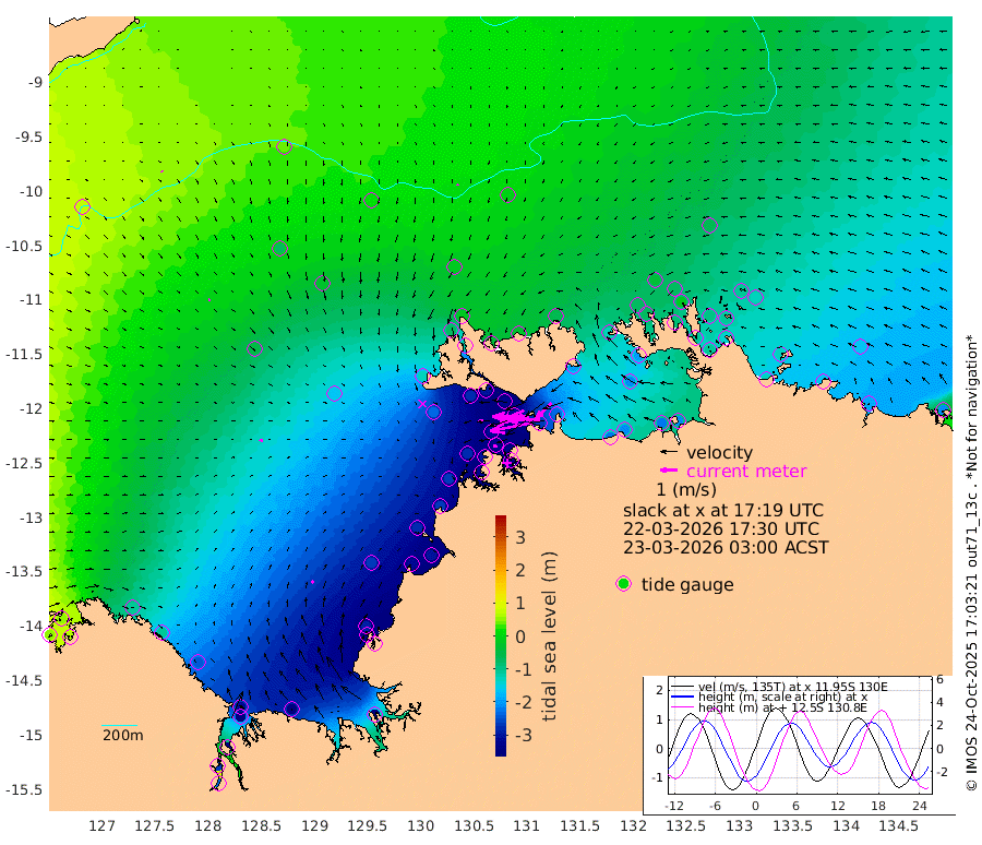 253cm/s -101T +4cm/s rms + 6cm/s 51T. Darwin_C1 52m 198cm/s -90T +4cm/s rms + 7cm/s -161T. Darwin_CW1 22m 135cm/s -106T +4cm/s rms + 8cm/s 61T. Darwin_CW2 34m 124cm/s -135T +3cm/s rms + 9cm/s 98T. Darwin_CW3 22m 217cm/s -91T +5cm/s rms + 7cm/s 88T. Darwin_C3 56m 141cm/s -115T +2cm/s rms + 9cm/s -126T. Darwin_CTbW 22m 9cm/s -165T +9cm/s rms + 2cm/s -110T. NWSLYN 196m 31cm/s -106T +1cm/s rms + 1cm/s -47T. DARBGF 30m 10cm/s 112T +7cm/s rms + 2cm/s -137T. ITFTIS 464m 11cm/s 113T +9cm/s rms + 1cm/s 74T. ITFMHB 146m 17cm/s 46T +4cm/s rms + 1cm/s -134T. ITFJBG 61m 19cm/s 102T +6cm/s rms + 4cm/s 121T. ITFFTB 108m 19cm/s -101T +4cm/s rms + 3cm/s 80T. NRSDAR 19m 54cm Carronade Island 52cm Guy Point 57cm Napier Broome Bay -103cm Lesueur Island -237cm Reveley Island -110cm Rocky Island -347cm Cape Domett -312cm Lacrosse Island -359cm Adolphus Island -259cm Pender Point -234cm Wyndham -51cm The Boxers -77cm Unnamed Shoal 36cm Loxton Shoal -377cm Pelican Island -29cm Calder Shoal 13cm Evans Shoal -408cm Quoin Island -371cm Port Keats -355cm Jones Point -288cm Catfish Island -266cm Cape Scott Offshore -309cm Cape Ford -297cm Anson Bay -17cm Goodrich Bank -272cm Peron Island North -264cm Point Jenny -262cm Native Point -280cm Fish Reef -302cm Tapa Bay -135cm Point Fawcett (Offshore) -326cm Burge Point -277cm Munkunuwa -228cm Beagle A -326cm Parsons Bank -313cm Fenton Patches -2cm Lynedoch Bank -324cm Hancox Shoal Area -332cm Nightcliff -360cm Darwin -325cm Charles Point Patches -270cm Glyde Point -216cm Chambers Bay -211cm Point Stuart -234cm Cape Hotham -206cm Christine Reef -223cm West Alligator Head -205cm East Field Island -196cm Two Hills Bay -160cm Newby Shoal -193cm Camp Point -295cm Medina Inlet South -118cm South Barlow Point -73cm St. Asaph Bay -22cm Cape Van Dieman -34cm Snake Bay -30cm Cache Point 74cm Echo Shoal -57cm Point Jahleel (Off) -125cm Cape Don -71cm Port Essington -73cm Smith Point - West -70cm NW Peacock Island -41cm North Of Jones Shoal -17cm Peacock Island -102cm Point David -80cm D'urville Point -60cm Money Shoal -105cm Copeland Island -138cm Cape Cockburn -96cm One Tree Point -135cm Hogmany Shoal -101cm New Year Island - West -112cm Grant Island -130cm Aurari Bay -159cm Cuthbert Point -134cm North Goulburn Island -163cm Paxie Shoal -188cm Entrance Island -209cm Yabooma Island