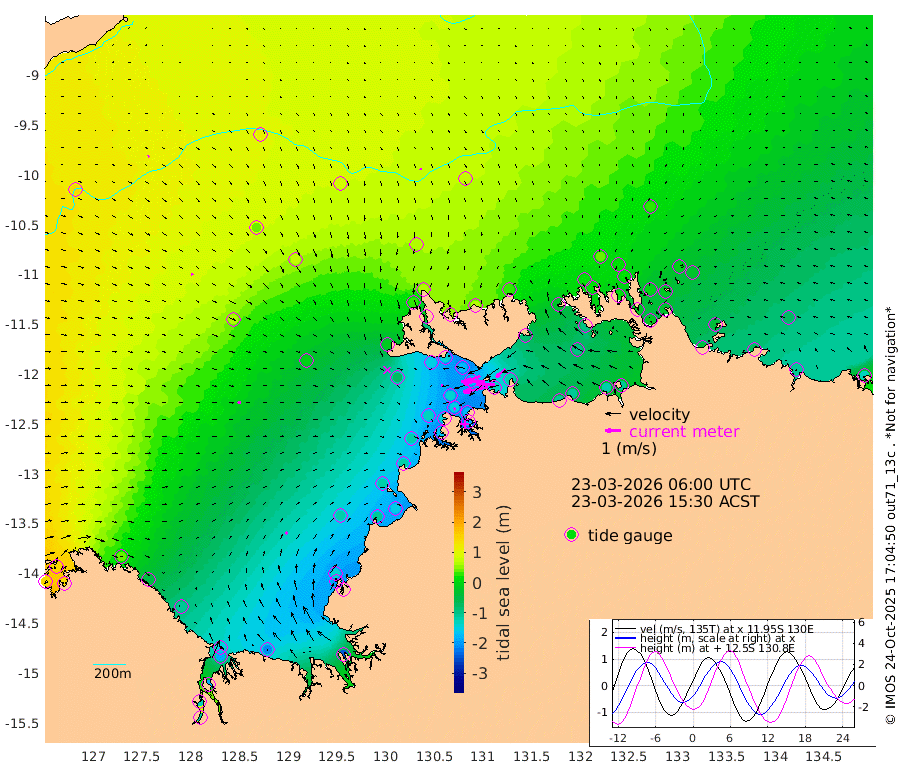 162cm/s -101T +4cm/s rms + 6cm/s 51T. Darwin_C1 52m 119cm/s -90T +4cm/s rms + 7cm/s -161T. Darwin_CW1 22m 97cm/s -107T +4cm/s rms + 8cm/s 61T. Darwin_CW2 34m 77cm/s -133T +3cm/s rms + 9cm/s 98T. Darwin_CW3 22m 153cm/s -91T +5cm/s rms + 7cm/s 88T. Darwin_C3 56m 87cm/s -115T +2cm/s rms + 9cm/s -126T. Darwin_CTbW 22m 8cm/s 144T +9cm/s rms + 2cm/s -110T. NWSLYN 196m 14cm/s -118T +1cm/s rms + 1cm/s -47T. DARBGF 30m 11cm/s 60T +7cm/s rms + 2cm/s -137T. ITFTIS 464m 14cm/s 76T +9cm/s rms + 1cm/s 74T. ITFMHB 146m 16cm/s 47T +4cm/s rms + 1cm/s -134T. ITFJBG 61m 23cm/s 86T +6cm/s rms + 4cm/s 121T. ITFFTB 108m 12cm/s -126T +4cm/s rms + 3cm/s 80T. NRSDAR 19m 142cm Carronade Island 140cm Guy Point 145cm Napier Broome Bay 44cm Lesueur Island -110cm Reveley Island -54cm Rocky Island -183cm Cape Domett -151cm Lacrosse Island -189cm Adolphus Island -134cm Pender Point -102cm Wyndham 58cm The Boxers 34cm Unnamed Shoal 111cm Loxton Shoal -212cm Pelican Island 69cm Calder Shoal 84cm Evans Shoal -242cm Quoin Island -195cm Port Keats -196cm Jones Point -142cm Catfish Island -123cm Cape Scott Offshore -103cm Cape Ford -147cm Anson Bay 66cm Goodrich Bank -123cm Peron Island North -115cm Point Jenny -114cm Native Point -127cm Fish Reef -145cm Tapa Bay -14cm Point Fawcett (Offshore) -163cm Burge Point -153cm Munkunuwa -76cm Beagle A -180cm Parsons Bank -145cm Fenton Patches 71cm Lynedoch Bank -172cm Hancox Shoal Area -173cm Nightcliff -189cm Darwin -150cm Charles Point Patches -133cm Glyde Point -110cm Chambers Bay -112cm Point Stuart -115cm Cape Hotham -100cm Christine Reef -124cm West Alligator Head -106cm East Field Island -93cm Two Hills Bay -2cm Newby Shoal -82cm Camp Point -144cm Medina Inlet South -9cm South Barlow Point 27cm St. Asaph Bay 61cm Cape Van Dieman 52cm Snake Bay 60cm Cache Point 138cm Echo Shoal 32cm Point Jahleel (Off) -27cm Cape Don 18cm Port Essington 17cm Smith Point - West 19cm NW Peacock Island 43cm North Of Jones Shoal 12cm Peacock Island -16cm Point David 11cm D'urville Point 27cm Money Shoal -21cm Copeland Island -24cm Cape Cockburn -9cm One Tree Point -23cm Hogmany Shoal -5cm New Year Island - West -17cm Grant Island -40cm Aurari Bay -64cm Cuthbert Point -41cm North Goulburn Island -75cm Paxie Shoal -102cm Entrance Island -130cm Yabooma Island