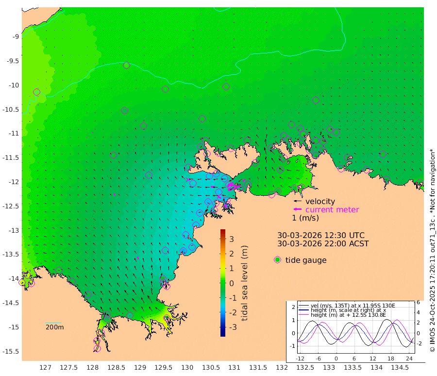 122cm/s -102T +4cm/s rms + 6cm/s 51T. Darwin_C1 52m 78cm/s -89T +4cm/s rms + 7cm/s -161T. Darwin_CW1 22m 70cm/s -108T +4cm/s rms + 8cm/s 61T. Darwin_CW2 34m 44cm/s -131T +3cm/s rms + 9cm/s 98T. Darwin_CW3 22m 75cm/s -92T +5cm/s rms + 7cm/s 88T. Darwin_C3 56m 75cm/s -115T +2cm/s rms + 9cm/s -126T. Darwin_CTbW 22m 2cm/s 140T +9cm/s rms + 2cm/s -110T. NWSLYN 196m 56cm/s -90T +1cm/s rms + 1cm/s -47T. DARBGF 30m 2cm/s -7T +7cm/s rms + 2cm/s -137T. ITFTIS 464m 13cm/s -2T +9cm/s rms + 1cm/s 74T. ITFMHB 146m 38cm/s -22T +4cm/s rms + 1cm/s -134T. ITFJBG 61m 29cm/s -38T +6cm/s rms + 4cm/s 121T. ITFFTB 108m 53cm/s -60T +4cm/s rms + 3cm/s 80T. NRSDAR 19m 74cm Carronade Island 84cm Guy Point 85cm Napier Broome Bay 5cm Lesueur Island -49cm Reveley Island -26cm Rocky Island -61cm Cape Domett -64cm Lacrosse Island -29cm Adolphus Island 65cm Pender Point 92cm Wyndham -26cm The Boxers -48cm Unnamed Shoal 28cm Loxton Shoal -92cm Pelican Island -23cm Calder Shoal 3cm Evans Shoal -12cm Quoin Island -130cm Port Keats -132cm Jones Point -24cm Catfish Island -123cm Cape Scott Offshore -183cm Cape Ford -145cm Anson Bay -18cm Goodrich Bank -139cm Peron Island North -148cm Point Jenny -146cm Native Point -162cm Fish Reef -155cm Tapa Bay -97cm Point Fawcett (Offshore) -163cm Burge Point -153cm Munkunuwa -145cm Beagle A -154cm Parsons Bank -167cm Fenton Patches -1cm Lynedoch Bank -142cm Hancox Shoal Area -159cm Nightcliff -157cm Darwin -150cm Charles Point Patches -96cm Glyde Point -38cm Chambers Bay -29cm Point Stuart -72cm Cape Hotham -34cm Christine Reef -25cm West Alligator Head 1cm East Field Island -43cm Two Hills Bay -90cm Newby Shoal -37cm Camp Point -151cm Medina Inlet South -82cm South Barlow Point -61cm St. Asaph Bay -26cm Cape Van Dieman -26cm Snake Bay -28cm Cache Point 41cm Echo Shoal -32cm Point Jahleel (Off) -49cm Cape Don -36cm Port Essington -42cm Smith Point - West -34cm NW Peacock Island -23cm North Of Jones Shoal -10cm Peacock Island -34cm Point David -42cm D'urville Point -21cm Money Shoal -36cm Copeland Island -51cm Cape Cockburn -33cm One Tree Point -35cm Hogmany Shoal -33cm New Year Island - West -34cm Grant Island -46cm Aurari Bay -43cm Cuthbert Point -42cm North Goulburn Island -27cm Paxie Shoal -41cm Entrance Island -37cm Yabooma Island