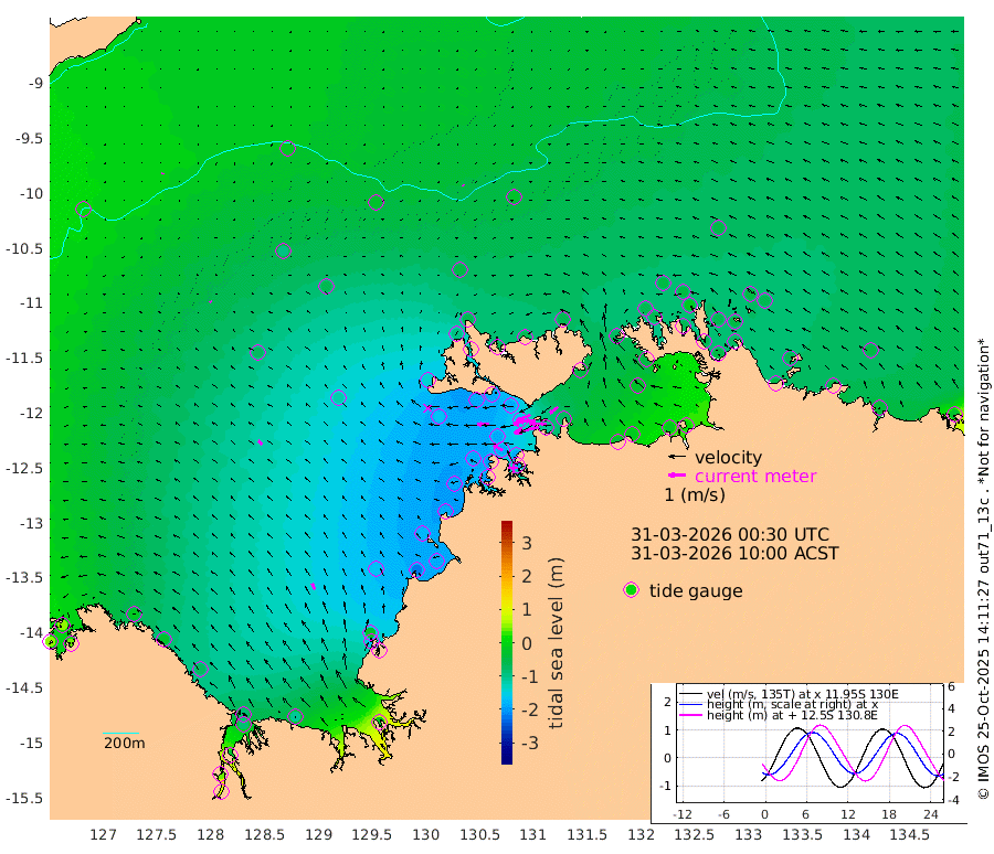 149cm/s -102T +4cm/s rms + 6cm/s 51T. Darwin_C1 52m 100cm/s -88T +4cm/s rms + 7cm/s -161T. Darwin_CW1 22m 90cm/s -107T +4cm/s rms + 8cm/s 61T. Darwin_CW2 34m 58cm/s -127T +3cm/s rms + 9cm/s 98T. Darwin_CW3 22m 111cm/s -91T +5cm/s rms + 7cm/s 88T. Darwin_C3 56m 90cm/s -115T +2cm/s rms + 9cm/s -126T. Darwin_CTbW 22m 7cm/s -47T +9cm/s rms + 2cm/s -110T. NWSLYN 196m 68cm/s -91T +1cm/s rms + 1cm/s -47T. DARBGF 30m 6cm/s -147T +7cm/s rms + 2cm/s -137T. ITFTIS 464m 9cm/s -26T +9cm/s rms + 1cm/s 74T. ITFMHB 146m 37cm/s -26T +4cm/s rms + 1cm/s -134T. ITFJBG 61m 31cm/s -46T +6cm/s rms + 4cm/s 121T. ITFFTB 108m 61cm/s -61T +4cm/s rms + 3cm/s 80T. NRSDAR 19m 48cm Carronade Island 54cm Guy Point 42cm Napier Broome Bay -22cm Lesueur Island -70cm Reveley Island -30cm Rocky Island -85cm Cape Domett -84cm Lacrosse Island -27cm Adolphus Island 40cm Pender Point 81cm Wyndham -69cm The Boxers -99cm Unnamed Shoal -12cm Loxton Shoal -112cm Pelican Island -64cm Calder Shoal -30cm Evans Shoal -18cm Quoin Island -153cm Port Keats -159cm Jones Point -24cm Catfish Island -163cm Cape Scott Offshore -219cm Cape Ford -189cm Anson Bay -51cm Goodrich Bank -171cm Peron Island North -182cm Point Jenny -182cm Native Point -189cm Fish Reef -193cm Tapa Bay -139cm Point Fawcett (Offshore) -192cm Burge Point -191cm Munkunuwa -164cm Beagle A -183cm Parsons Bank -182cm Fenton Patches -32cm Lynedoch Bank -167cm Hancox Shoal Area -184cm Nightcliff -191cm Darwin -190cm Charles Point Patches -110cm Glyde Point -39cm Chambers Bay -21cm Point Stuart -78cm Cape Hotham -28cm Christine Reef -13cm West Alligator Head 22cm East Field Island -46cm Two Hills Bay -116cm Newby Shoal -46cm Camp Point -190cm Medina Inlet South -118cm South Barlow Point -97cm St. Asaph Bay -60cm Cape Van Dieman -64cm Snake Bay -58cm Cache Point 11cm Echo Shoal -58cm Point Jahleel (Off) -72cm Cape Don -63cm Port Essington -61cm Smith Point - West -54cm NW Peacock Island -51cm North Of Jones Shoal -19cm Peacock Island -57cm Point David -60cm D'urville Point -46cm Money Shoal -54cm Copeland Island -71cm Cape Cockburn -57cm One Tree Point -61cm Hogmany Shoal -55cm New Year Island - West -55cm Grant Island -55cm Aurari Bay -51cm Cuthbert Point -60cm North Goulburn Island -53cm Paxie Shoal -43cm Entrance Island -27cm Yabooma Island