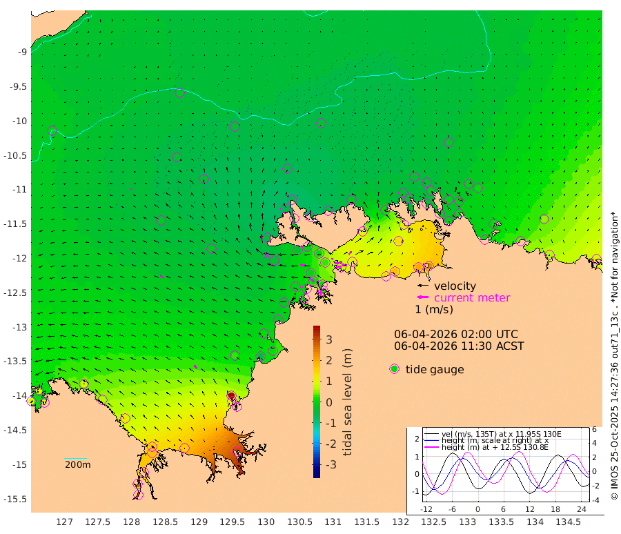 39cm/s 81T +4cm/s rms + 6cm/s 51T. Darwin_C1 52m 47cm/s 89T +4cm/s rms + 7cm/s -161T. Darwin_CW1 22m 1cm/s 88T +4cm/s rms + 8cm/s 61T. Darwin_CW2 34m 37cm/s 42T +3cm/s rms + 9cm/s 98T. Darwin_CW3 22m 32cm/s 95T +5cm/s rms + 7cm/s 88T. Darwin_C3 56m 16cm/s 70T +2cm/s rms + 9cm/s -126T. Darwin_CTbW 22m 5cm/s -14T +9cm/s rms + 2cm/s -110T. NWSLYN 196m 48cm/s -83T +1cm/s rms + 1cm/s -47T. DARBGF 30m 8cm/s -112T +7cm/s rms + 2cm/s -137T. ITFTIS 464m 11cm/s -60T +9cm/s rms + 1cm/s 74T. ITFMHB 146m 37cm/s -35T +4cm/s rms + 1cm/s -134T. ITFJBG 61m 37cm/s -55T +6cm/s rms + 4cm/s 121T. ITFFTB 108m 62cm/s -54T +4cm/s rms + 3cm/s 80T. NRSDAR 19m 89cm Carronade Island 95cm Guy Point 92cm Napier Broome Bay 95cm Lesueur Island 113cm Reveley Island 63cm Rocky Island 171cm Cape Domett 160cm Lacrosse Island 217cm Adolphus Island 277cm Pender Point 313cm Wyndham -14cm The Boxers -32cm Unnamed Shoal -22cm Loxton Shoal 155cm Pelican Island -31cm Calder Shoal -28cm Evans Shoal 297cm Quoin Island 85cm Port Keats 85cm Jones Point 370cm Catfish Island 28cm Cape Scott Offshore -49cm Cape Ford 13cm Anson Bay -45cm Goodrich Bank 11cm Peron Island North -13cm Point Jenny -17cm Native Point -2cm Fish Reef -3cm Tapa Bay -35cm Point Fawcett (Offshore) 3cm Burge Point -23cm Munkunuwa -26cm Beagle A 5cm Parsons Bank 0cm Fenton Patches -34cm Lynedoch Bank 24cm Hancox Shoal Area 14cm Nightcliff 25cm Darwin 6cm Charles Point Patches 74cm Glyde Point 144cm Chambers Bay 170cm Point Stuart 97cm Cape Hotham 129cm Christine Reef 196cm West Alligator Head 226cm East Field Island 118cm Two Hills Bay -17cm Newby Shoal 100cm Camp Point -5cm Medina Inlet South -56cm South Barlow Point -51cm St. Asaph Bay -51cm Cape Van Dieman -50cm Snake Bay -36cm Cache Point -8cm Echo Shoal -20cm Point Jahleel (Off) 16cm Cape Don -23cm Port Essington -25cm Smith Point - West -23cm NW Peacock Island -25cm North Of Jones Shoal -9cm Peacock Island -7cm Point David -26cm D'urville Point -21cm Money Shoal -4cm Copeland Island 0cm Cape Cockburn -5cm One Tree Point 15cm Hogmany Shoal -3cm New Year Island - West -1cm Grant Island 16cm Aurari Bay 37cm Cuthbert Point 15cm North Goulburn Island 54cm Paxie Shoal 62cm Entrance Island 93cm Yabooma Island