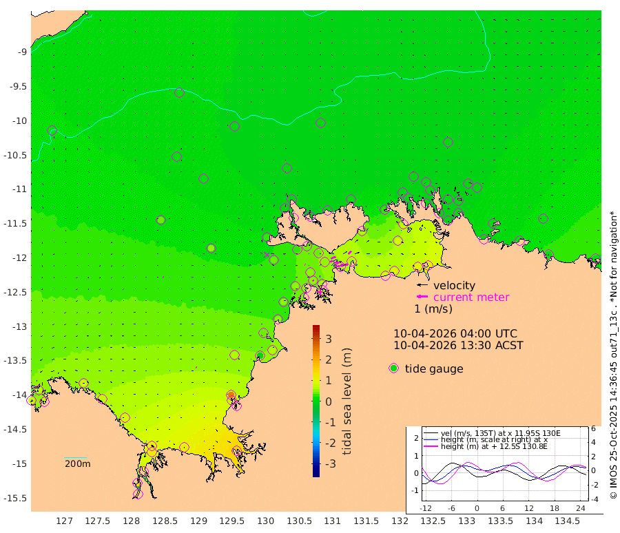 71cm/s 78T +4cm/s rms + 6cm/s 51T. Darwin_C1 52m 59cm/s 91T +4cm/s rms + 7cm/s -161T. Darwin_CW1 22m 26cm/s 71T +4cm/s rms + 8cm/s 61T. Darwin_CW2 34m 41cm/s 48T +3cm/s rms + 9cm/s 98T. Darwin_CW3 22m 42cm/s 91T +5cm/s rms + 7cm/s 88T. Darwin_C3 56m 46cm/s 66T +2cm/s rms + 9cm/s -126T. Darwin_CTbW 22m 1cm/s 39T +9cm/s rms + 2cm/s -110T. NWSLYN 196m 5cm/s -56T +1cm/s rms + 1cm/s -47T. DARBGF 30m 1cm/s -107T +7cm/s rms + 2cm/s -137T. ITFTIS 464m 4cm/s -155T +9cm/s rms + 1cm/s 74T. ITFMHB 146m 7cm/s -37T +4cm/s rms + 1cm/s -134T. ITFJBG 61m 5cm/s -59T +6cm/s rms + 4cm/s 121T. ITFFTB 108m 13cm/s -45T +4cm/s rms + 3cm/s 80T. NRSDAR 19m 78cm Carronade Island 80cm Guy Point 86cm Napier Broome Bay 82cm Lesueur Island 79cm Reveley Island 75cm Rocky Island 114cm Cape Domett 111cm Lacrosse Island 132cm Adolphus Island 145cm Pender Point 163cm Wyndham 36cm The Boxers 17cm Unnamed Shoal 16cm Loxton Shoal 108cm Pelican Island 20cm Calder Shoal 8cm Evans Shoal 164cm Quoin Island 87cm Port Keats 74cm Jones Point 246cm Catfish Island 61cm Cape Scott Offshore -2cm Cape Ford 59cm Anson Bay 2cm Goodrich Bank 44cm Peron Island North 48cm Point Jenny 46cm Native Point 48cm Fish Reef 49cm Tapa Bay 27cm Point Fawcett (Offshore) 47cm Burge Point 28cm Munkunuwa 43cm Beagle A 37cm Parsons Bank 53cm Fenton Patches 4cm Lynedoch Bank 50cm Hancox Shoal Area 58cm Nightcliff 52cm Darwin 49cm Charles Point Patches 64cm Glyde Point 92cm Chambers Bay 90cm Point Stuart 63cm Cape Hotham 86cm Christine Reef 102cm West Alligator Head 114cm East Field Island 70cm Two Hills Bay 48cm Newby Shoal 66cm Camp Point 43cm Medina Inlet South 9cm South Barlow Point 11cm St. Asaph Bay -1cm Cape Van Dieman -3cm Snake Bay 8cm Cache Point 22cm Echo Shoal 12cm Point Jahleel (Off) 30cm Cape Don 6cm Port Essington 8cm Smith Point - West 4cm NW Peacock Island 6cm North Of Jones Shoal 1cm Peacock Island -3cm Point David 3cm D'urville Point 1cm Money Shoal -3cm Copeland Island 1cm Cape Cockburn 3cm One Tree Point 3cm Hogmany Shoal 6cm New Year Island - West 3cm Grant Island 10cm Aurari Bay 18cm Cuthbert Point 8cm North Goulburn Island 20cm Paxie Shoal 18cm Entrance Island 21cm Yabooma Island