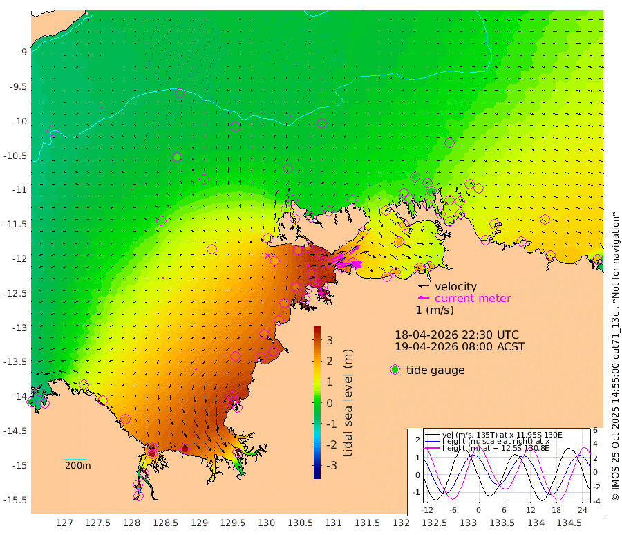 230cm/s 78T +4cm/s rms + 6cm/s 51T. Darwin_C1 52m 180cm/s 92T +4cm/s rms + 7cm/s -161T. Darwin_CW1 22m 138cm/s 72T +4cm/s rms + 8cm/s 61T. Darwin_CW2 34m 129cm/s 45T +3cm/s rms + 9cm/s 98T. Darwin_CW3 22m 223cm/s 89T +5cm/s rms + 7cm/s 88T. Darwin_C3 56m 113cm/s 66T +2cm/s rms + 9cm/s -126T. Darwin_CTbW 22m 6cm/s 9T +9cm/s rms + 2cm/s -110T. NWSLYN 196m 26cm/s 65T +1cm/s rms + 1cm/s -47T. DARBGF 30m 9cm/s -93T +7cm/s rms + 2cm/s -137T. ITFTIS 464m 12cm/s -112T +9cm/s rms + 1cm/s 74T. ITFMHB 146m 19cm/s -122T +4cm/s rms + 1cm/s -134T. ITFJBG 61m 20cm/s -87T +6cm/s rms + 4cm/s 121T. ITFFTB 108m 14cm/s 65T +4cm/s rms + 3cm/s 80T. NRSDAR 19m -53cm Carronade Island -44cm Guy Point -60cm Napier Broome Bay 81cm Lesueur Island 233cm Reveley Island 101cm Rocky Island 338cm Cape Domett 305cm Lacrosse Island 353cm Adolphus Island 270cm Pender Point 246cm Wyndham 25cm The Boxers 26cm Unnamed Shoal -53cm Loxton Shoal 369cm Pelican Island 7cm Calder Shoal -31cm Evans Shoal 416cm Quoin Island 351cm Port Keats 332cm Jones Point 305cm Catfish Island 251cm Cape Scott Offshore 271cm Cape Ford 278cm Anson Bay -11cm Goodrich Bank 243cm Peron Island North 244cm Point Jenny 241cm Native Point 253cm Fish Reef 279cm Tapa Bay 111cm Point Fawcett (Offshore) 300cm Burge Point 257cm Munkunuwa 201cm Beagle A 296cm Parsons Bank 285cm Fenton Patches -25cm Lynedoch Bank 300cm Hancox Shoal Area 312cm Nightcliff 328cm Darwin 294cm Charles Point Patches 244cm Glyde Point 209cm Chambers Bay 198cm Point Stuart 211cm Cape Hotham 200cm Christine Reef 213cm West Alligator Head 198cm East Field Island 175cm Two Hills Bay 125cm Newby Shoal 176cm Camp Point 269cm Medina Inlet South 87cm South Barlow Point 50cm St. Asaph Bay -7cm Cape Van Dieman -1cm Snake Bay 1cm Cache Point -80cm Echo Shoal 28cm Point Jahleel (Off) 96cm Cape Don 36cm Port Essington 39cm Smith Point - West 33cm NW Peacock Island 11cm North Of Jones Shoal 6cm Peacock Island 56cm Point David 41cm D'urville Point 24cm Money Shoal 61cm Copeland Island 80cm Cape Cockburn 54cm One Tree Point 83cm Hogmany Shoal 54cm New Year Island - West 64cm Grant Island 82cm Aurari Bay 112cm Cuthbert Point 86cm North Goulburn Island 124cm Paxie Shoal 146cm Entrance Island 174cm Yabooma Island