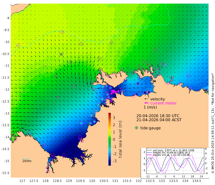 180cm/s -101T +4cm/s rms + 6cm/s 51T. Darwin_C1 52m 150cm/s -92T +4cm/s rms + 7cm/s -161T. Darwin_CW1 22m 59cm/s -105T +4cm/s rms + 8cm/s 61T. Darwin_CW2 34m 118cm/s -138T +3cm/s rms + 9cm/s 98T. Darwin_CW3 22m 133cm/s -90T +5cm/s rms + 7cm/s 88T. Darwin_C3 56m 94cm/s -116T +2cm/s rms + 9cm/s -126T. Darwin_CTbW 22m 10cm/s -177T +9cm/s rms + 2cm/s -110T. NWSLYN 196m 42cm/s 104T +1cm/s rms + 1cm/s -47T. DARBGF 30m 15cm/s 111T +7cm/s rms + 2cm/s -137T. ITFTIS 464m 25cm/s 147T +9cm/s rms + 1cm/s 74T. ITFMHB 146m 38cm/s 128T +4cm/s rms + 1cm/s -134T. ITFJBG 61m 53cm/s 125T +6cm/s rms + 4cm/s 121T. ITFFTB 108m 56cm/s 133T +4cm/s rms + 3cm/s 80T. NRSDAR 19m -26cm Carronade Island -31cm Guy Point -31cm Napier Broome Bay -129cm Lesueur Island -223cm Reveley Island -103cm Rocky Island -349cm Cape Domett -311cm Lacrosse Island -408cm Adolphus Island -400cm Pender Point -419cm Wyndham -4cm The Boxers -16cm Unnamed Shoal 62cm Loxton Shoal -354cm Pelican Island 32cm Calder Shoal 55cm Evans Shoal -497cm Quoin Island -296cm Port Keats -282cm Jones Point -454cm Catfish Island -164cm Cape Scott Offshore -118cm Cape Ford -176cm Anson Bay 40cm Goodrich Bank -151cm Peron Island North -136cm Point Jenny -133cm Native Point -148cm Fish Reef -168cm Tapa Bay -24cm Point Fawcett (Offshore) -195cm Burge Point -128cm Munkunuwa -102cm Beagle A -198cm Parsons Bank -184cm Fenton Patches 36cm Lynedoch Bank -215cm Hancox Shoal Area -208cm Nightcliff -236cm Darwin -196cm Charles Point Patches -229cm Glyde Point -260cm Chambers Bay -278cm Point Stuart -225cm Cape Hotham -245cm Christine Reef -304cm West Alligator Head -326cm East Field Island -219cm Two Hills Bay -74cm Newby Shoal -215cm Camp Point -159cm Medina Inlet South -9cm South Barlow Point 21cm St. Asaph Bay 42cm Cape Van Dieman 32cm Snake Bay 26cm Cache Point 79cm Echo Shoal -7cm Point Jahleel (Off) -89cm Cape Don -23cm Port Essington -20cm Smith Point - West -26cm NW Peacock Island 4cm North Of Jones Shoal -2cm Peacock Island -73cm Point David -30cm D'urville Point -30cm Money Shoal -79cm Copeland Island -103cm Cape Cockburn -67cm One Tree Point -113cm Hogmany Shoal -77cm New Year Island - West -86cm Grant Island -118cm Aurari Bay -162cm Cuthbert Point -118cm North Goulburn Island -182cm Paxie Shoal -209cm Entrance Island -257cm Yabooma Island