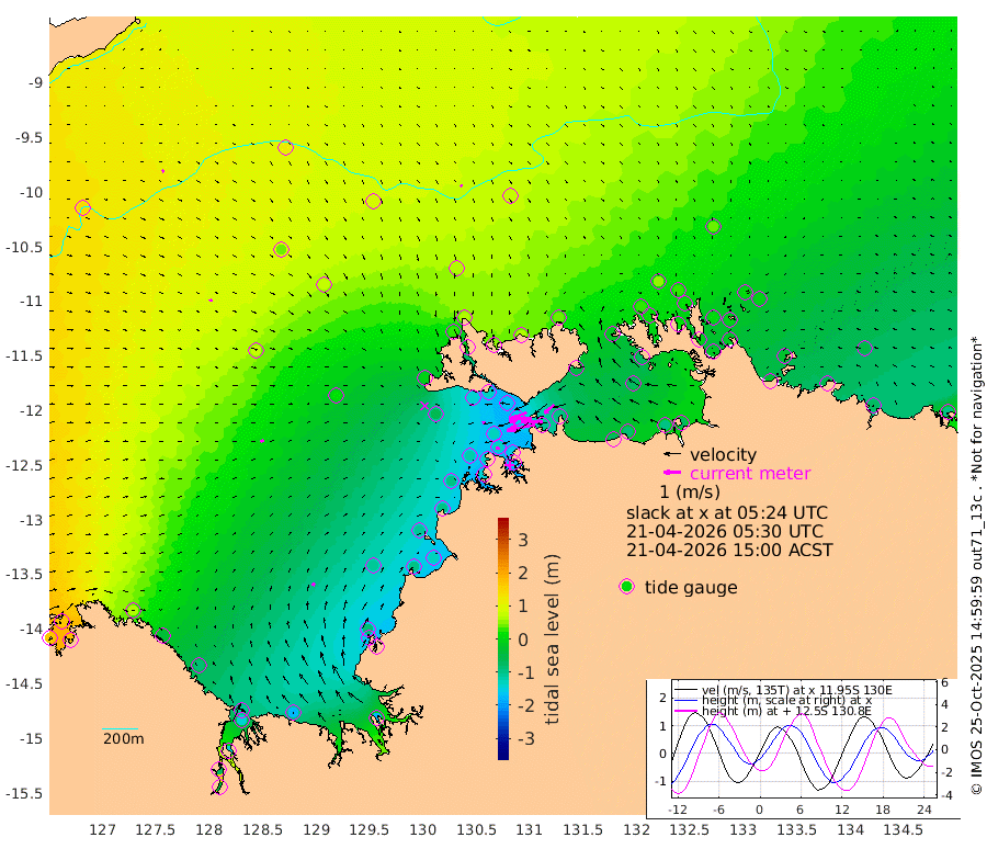 170cm/s -101T +4cm/s rms + 6cm/s 51T. Darwin_C1 52m 125cm/s -90T +4cm/s rms + 7cm/s -161T. Darwin_CW1 22m 92cm/s -107T +4cm/s rms + 8cm/s 61T. Darwin_CW2 34m 76cm/s -133T +3cm/s rms + 9cm/s 98T. Darwin_CW3 22m 137cm/s -91T +5cm/s rms + 7cm/s 88T. Darwin_C3 56m 93cm/s -115T +2cm/s rms + 9cm/s -126T. Darwin_CTbW 22m 10cm/s 140T +9cm/s rms + 2cm/s -110T. NWSLYN 196m 20cm/s -103T +1cm/s rms + 1cm/s -47T. DARBGF 30m 12cm/s 46T +7cm/s rms + 2cm/s -137T. ITFTIS 464m 15cm/s 56T +9cm/s rms + 1cm/s 74T. ITFMHB 146m 19cm/s 21T +4cm/s rms + 1cm/s -134T. ITFJBG 61m 19cm/s 64T +6cm/s rms + 4cm/s 121T. ITFFTB 108m 18cm/s -94T +4cm/s rms + 3cm/s 80T. NRSDAR 19m 161cm Carronade Island 163cm Guy Point 169cm Napier Broome Bay 66cm Lesueur Island -81cm Reveley Island -38cm Rocky Island -137cm Cape Domett -112cm Lacrosse Island -137cm Adolphus Island -70cm Pender Point -35cm Wyndham 68cm The Boxers 40cm Unnamed Shoal 117cm Loxton Shoal -172cm Pelican Island 74cm Calder Shoal 86cm Evans Shoal -178cm Quoin Island -161cm Port Keats -168cm Jones Point -90cm Catfish Island -104cm Cape Scott Offshore -94cm Cape Ford -127cm Anson Bay 67cm Goodrich Bank -109cm Peron Island North -101cm Point Jenny -99cm Native Point -114cm Fish Reef -127cm Tapa Bay -9cm Point Fawcett (Offshore) -142cm Burge Point -140cm Munkunuwa -67cm Beagle A -160cm Parsons Bank -129cm Fenton Patches 75cm Lynedoch Bank -150cm Hancox Shoal Area -151cm Nightcliff -164cm Darwin -127cm Charles Point Patches -109cm Glyde Point -78cm Chambers Bay -82cm Point Stuart -93cm Cape Hotham -70cm Christine Reef -91cm West Alligator Head -71cm East Field Island -69cm Two Hills Bay 11cm Newby Shoal -55cm Camp Point -127cm Medina Inlet South -5cm South Barlow Point 29cm St. Asaph Bay 62cm Cape Van Dieman 54cm Snake Bay 62cm Cache Point 141cm Echo Shoal 35cm Point Jahleel (Off) -14cm Cape Don 24cm Port Essington 21cm Smith Point - West 24cm NW Peacock Island 47cm North Of Jones Shoal 14cm Peacock Island -7cm Point David 15cm D'urville Point 35cm Money Shoal -13cm Copeland Island -13cm Cape Cockburn 1cm One Tree Point -10cm Hogmany Shoal 5cm New Year Island - West -7cm Grant Island -31cm Aurari Bay -48cm Cuthbert Point -27cm North Goulburn Island -52cm Paxie Shoal -78cm Entrance Island -101cm Yabooma Island