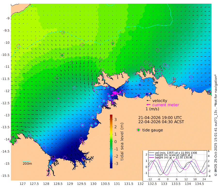 192cm/s -101T +4cm/s rms + 6cm/s 51T. Darwin_C1 52m 154cm/s -92T +4cm/s rms + 7cm/s -161T. Darwin_CW1 22m 65cm/s -105T +4cm/s rms + 8cm/s 61T. Darwin_CW2 34m 117cm/s -137T +3cm/s rms + 9cm/s 98T. Darwin_CW3 22m 135cm/s -90T +5cm/s rms + 7cm/s 88T. Darwin_C3 56m 104cm/s -116T +2cm/s rms + 9cm/s -126T. Darwin_CTbW 22m 8cm/s -162T +9cm/s rms + 2cm/s -110T. NWSLYN 196m 29cm/s 109T +1cm/s rms + 1cm/s -47T. DARBGF 30m 13cm/s 115T +7cm/s rms + 2cm/s -137T. ITFTIS 464m 21cm/s 146T +9cm/s rms + 1cm/s 74T. ITFMHB 146m 31cm/s 126T +4cm/s rms + 1cm/s -134T. ITFJBG 61m 44cm/s 124T +6cm/s rms + 4cm/s 121T. ITFFTB 108m 43cm/s 136T +4cm/s rms + 3cm/s 80T. NRSDAR 19m -34cm Carronade Island -38cm Guy Point -40cm Napier Broome Bay -128cm Lesueur Island -215cm Reveley Island -101cm Rocky Island -330cm Cape Domett -294cm Lacrosse Island -376cm Adolphus Island -364cm Pender Point -378cm Wyndham -21cm The Boxers -32cm Unnamed Shoal 45cm Loxton Shoal -335cm Pelican Island 13cm Calder Shoal 36cm Evans Shoal -454cm Quoin Island -289cm Port Keats -275cm Jones Point -427cm Catfish Island -172cm Cape Scott Offshore -140cm Cape Ford -185cm Anson Bay 23cm Goodrich Bank -163cm Peron Island North -150cm Point Jenny -146cm Native Point -161cm Fish Reef -178cm Tapa Bay -46cm Point Fawcett (Offshore) -203cm Burge Point -141cm Munkunuwa -116cm Beagle A -205cm Parsons Bank -190cm Fenton Patches 21cm Lynedoch Bank -217cm Hancox Shoal Area -211cm Nightcliff -239cm Darwin -204cm Charles Point Patches -225cm Glyde Point -246cm Chambers Bay -261cm Point Stuart -217cm Cape Hotham -233cm Christine Reef -284cm West Alligator Head -298cm East Field Island -211cm Two Hills Bay -91cm Newby Shoal -204cm Camp Point -170cm Medina Inlet South -28cm South Barlow Point 0cm St. Asaph Bay 23cm Cape Van Dieman 14cm Snake Bay 7cm Cache Point 64cm Echo Shoal -21cm Point Jahleel (Off) -98cm Cape Don -38cm Port Essington -35cm Smith Point - West -40cm NW Peacock Island -12cm North Of Jones Shoal -7cm Peacock Island -82cm Point David -44cm D'urville Point -43cm Money Shoal -86cm Copeland Island -115cm Cape Cockburn -77cm One Tree Point -123cm Hogmany Shoal -85cm New Year Island - West -94cm Grant Island -120cm Aurari Bay -164cm Cuthbert Point -124cm North Goulburn Island -181cm Paxie Shoal -203cm Entrance Island -244cm Yabooma Island