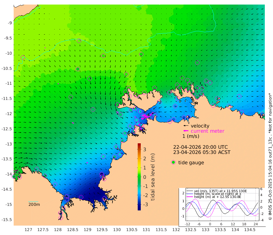 152cm/s -101T +4cm/s rms + 6cm/s 51T. Darwin_C1 52m 119cm/s -92T +4cm/s rms + 7cm/s -161T. Darwin_CW1 22m 42cm/s -104T +4cm/s rms + 8cm/s 61T. Darwin_CW2 34m 101cm/s -137T +3cm/s rms + 9cm/s 98T. Darwin_CW3 22m 97cm/s -89T +5cm/s rms + 7cm/s 88T. Darwin_C3 56m 83cm/s -116T +2cm/s rms + 9cm/s -126T. Darwin_CTbW 22m 6cm/s -149T +9cm/s rms + 2cm/s -110T. NWSLYN 196m 33cm/s 104T +1cm/s rms + 1cm/s -47T. DARBGF 30m 12cm/s 119T +7cm/s rms + 2cm/s -137T. ITFTIS 464m 19cm/s 149T +9cm/s rms + 1cm/s 74T. ITFMHB 146m 29cm/s 131T +4cm/s rms + 1cm/s -134T. ITFJBG 61m 39cm/s 126T +6cm/s rms + 4cm/s 121T. ITFFTB 108m 44cm/s 133T +4cm/s rms + 3cm/s 80T. NRSDAR 19m -54cm Carronade Island -57cm Guy Point -62cm Napier Broome Bay -116cm Lesueur Island -176cm Reveley Island -80cm Rocky Island -273cm Cape Domett -243cm Lacrosse Island -312cm Adolphus Island -322cm Pender Point -341cm Wyndham -17cm The Boxers -24cm Unnamed Shoal 37cm Loxton Shoal -272cm Pelican Island 15cm Calder Shoal 32cm Evans Shoal -380cm Quoin Island -227cm Port Keats -217cm Jones Point -394cm Catfish Island -129cm Cape Scott Offshore -90cm Cape Ford -138cm Anson Bay 24cm Goodrich Bank -120cm Peron Island North -110cm Point Jenny -106cm Native Point -117cm Fish Reef -130cm Tapa Bay -28cm Point Fawcett (Offshore) -150cm Burge Point -94cm Munkunuwa -81cm Beagle A -151cm Parsons Bank -139cm Fenton Patches 20cm Lynedoch Bank -164cm Hancox Shoal Area -157cm Nightcliff -178cm Darwin -150cm Charles Point Patches -182cm Glyde Point -217cm Chambers Bay -232cm Point Stuart -183cm Cape Hotham -204cm Christine Reef -254cm West Alligator Head -271cm East Field Island -185cm Two Hills Bay -68cm Newby Shoal -176cm Camp Point -122cm Medina Inlet South -10cm South Barlow Point 11cm St. Asaph Bay 25cm Cape Van Dieman 18cm Snake Bay 9cm Cache Point 50cm Echo Shoal -14cm Point Jahleel (Off) -83cm Cape Don -30cm Port Essington -27cm Smith Point - West -32cm NW Peacock Island -9cm North Of Jones Shoal -6cm Peacock Island -70cm Point David -35cm D'urville Point -37cm Money Shoal -74cm Copeland Island -100cm Cape Cockburn -67cm One Tree Point -108cm Hogmany Shoal -74cm New Year Island - West -81cm Grant Island -105cm Aurari Bay -146cm Cuthbert Point -110cm North Goulburn Island -163cm Paxie Shoal -181cm Entrance Island -220cm Yabooma Island