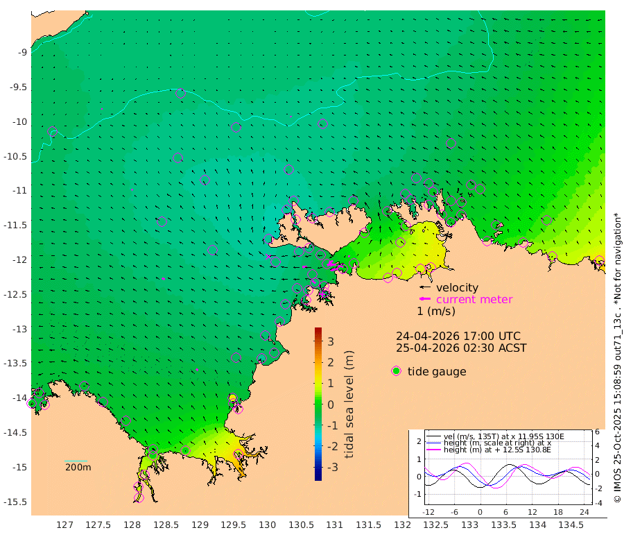 75cm/s -103T +4cm/s rms + 6cm/s 51T. Darwin_C1 52m 49cm/s -87T +4cm/s rms + 7cm/s -161T. Darwin_CW1 22m 44cm/s -108T +4cm/s rms + 8cm/s 61T. Darwin_CW2 34m 17cm/s -99T +3cm/s rms + 9cm/s 98T. Darwin_CW3 22m 57cm/s -92T +5cm/s rms + 7cm/s 88T. Darwin_C3 56m 42cm/s -115T +2cm/s rms + 9cm/s -126T. Darwin_CTbW 22m 9cm/s -41T +9cm/s rms + 2cm/s -110T. NWSLYN 196m 43cm/s -90T +1cm/s rms + 1cm/s -47T. DARBGF 30m 8cm/s -118T +7cm/s rms + 2cm/s -137T. ITFTIS 464m 12cm/s -36T +9cm/s rms + 1cm/s 74T. ITFMHB 146m 18cm/s -34T +4cm/s rms + 1cm/s -134T. ITFJBG 61m 25cm/s -57T +6cm/s rms + 4cm/s 121T. ITFFTB 108m 39cm/s -60T +4cm/s rms + 3cm/s 80T. NRSDAR 19m -15cm Carronade Island -17cm Guy Point -26cm Napier Broome Bay -28cm Lesueur Island -18cm Reveley Island -46cm Rocky Island 3cm Cape Domett 1cm Lacrosse Island 39cm Adolphus Island 70cm Pender Point 97cm Wyndham -90cm The Boxers -86cm Unnamed Shoal -98cm Loxton Shoal 7cm Pelican Island -100cm Calder Shoal -89cm Evans Shoal 58cm Quoin Island -40cm Port Keats -20cm Jones Point 116cm Catfish Island -73cm Cape Scott Offshore -112cm Cape Ford -78cm Anson Bay -87cm Goodrich Bank -81cm Peron Island North -79cm Point Jenny -82cm Native Point -79cm Fish Reef -79cm Tapa Bay -104cm Point Fawcett (Offshore) -71cm Burge Point -94cm Munkunuwa -81cm Beagle A -67cm Parsons Bank -63cm Fenton Patches -79cm Lynedoch Bank -51cm Hancox Shoal Area -63cm Nightcliff -70cm Darwin -84cm Charles Point Patches -10cm Glyde Point 61cm Chambers Bay 73cm Point Stuart 15cm Cape Hotham 48cm Christine Reef 86cm West Alligator Head 115cm East Field Island 30cm Two Hills Bay -96cm Newby Shoal 26cm Camp Point -91cm Medina Inlet South -107cm South Barlow Point -103cm St. Asaph Bay -90cm Cape Van Dieman -95cm Snake Bay -81cm Cache Point -77cm Echo Shoal -67cm Point Jahleel (Off) -40cm Cape Don -60cm Port Essington -60cm Smith Point - West -53cm NW Peacock Island -69cm North Of Jones Shoal -22cm Peacock Island -24cm Point David -52cm D'urville Point -44cm Money Shoal -16cm Copeland Island -26cm Cape Cockburn -33cm One Tree Point -16cm Hogmany Shoal -26cm New Year Island - West -24cm Grant Island 5cm Aurari Bay 24cm Cuthbert Point -3cm North Goulburn Island 31cm Paxie Shoal 65cm Entrance Island 108cm Yabooma Island