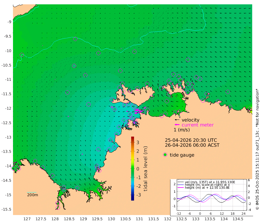 146cm/s -102T +4cm/s rms + 6cm/s 51T. Darwin_C1 52m 83cm/s -89T +4cm/s rms + 7cm/s -161T. Darwin_CW1 22m 55cm/s -106T +4cm/s rms + 8cm/s 61T. Darwin_CW2 34m 59cm/s -129T +3cm/s rms + 9cm/s 98T. Darwin_CW3 22m 76cm/s -91T +5cm/s rms + 7cm/s 88T. Darwin_C3 56m 88cm/s -115T +2cm/s rms + 9cm/s -126T. Darwin_CTbW 22m 9cm/s -42T +9cm/s rms + 2cm/s -110T. NWSLYN 196m 35cm/s -91T +1cm/s rms + 1cm/s -47T. DARBGF 30m 4cm/s -157T +7cm/s rms + 2cm/s -137T. ITFTIS 464m 6cm/s -19T +9cm/s rms + 1cm/s 74T. ITFMHB 146m 16cm/s -24T +4cm/s rms + 1cm/s -134T. ITFJBG 61m 14cm/s -45T +6cm/s rms + 4cm/s 121T. ITFFTB 108m 31cm/s -65T +4cm/s rms + 3cm/s 80T. NRSDAR 19m -13cm Carronade Island -11cm Guy Point -25cm Napier Broome Bay -43cm Lesueur Island -60cm Reveley Island -47cm Rocky Island -73cm Cape Domett -68cm Lacrosse Island -44cm Adolphus Island -21cm Pender Point -4cm Wyndham -65cm The Boxers -79cm Unnamed Shoal -37cm Loxton Shoal -80cm Pelican Island -57cm Calder Shoal -42cm Evans Shoal -51cm Quoin Island -101cm Port Keats -94cm Jones Point -87cm Catfish Island -105cm Cape Scott Offshore -101cm Cape Ford -116cm Anson Bay -48cm Goodrich Bank -110cm Peron Island North -107cm Point Jenny -107cm Native Point -111cm Fish Reef -112cm Tapa Bay -94cm Point Fawcett (Offshore) -108cm Burge Point -109cm Munkunuwa -92cm Beagle A -111cm Parsons Bank -97cm Fenton Patches -41cm Lynedoch Bank -100cm Hancox Shoal Area -105cm Nightcliff -115cm Darwin -114cm Charles Point Patches -75cm Glyde Point -40cm Chambers Bay -38cm Point Stuart -60cm Cape Hotham -37cm Christine Reef -36cm West Alligator Head -14cm East Field Island -53cm Two Hills Bay -86cm Newby Shoal -42cm Camp Point -114cm Medina Inlet South -81cm South Barlow Point -69cm St. Asaph Bay -52cm Cape Van Dieman -58cm Snake Bay -54cm Cache Point -17cm Echo Shoal -53cm Point Jahleel (Off) -66cm Cape Don -59cm Port Essington -59cm Smith Point - West -55cm NW Peacock Island -55cm North Of Jones Shoal -20cm Peacock Island -58cm Point David -59cm D'urville Point -50cm Money Shoal -54cm Copeland Island -74cm Cape Cockburn -61cm One Tree Point -68cm Hogmany Shoal -58cm New Year Island - West -60cm Grant Island -55cm Aurari Bay -59cm Cuthbert Point -63cm North Goulburn Island -60cm Paxie Shoal -44cm Entrance Island -30cm Yabooma Island